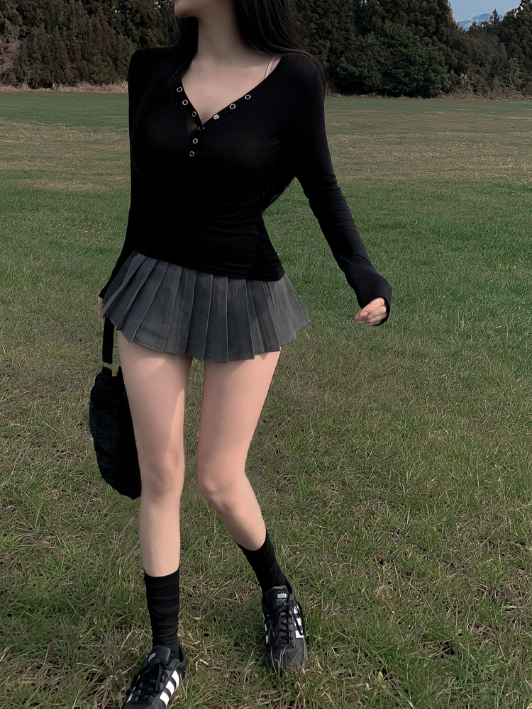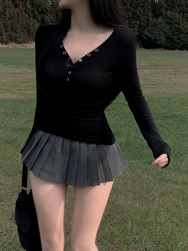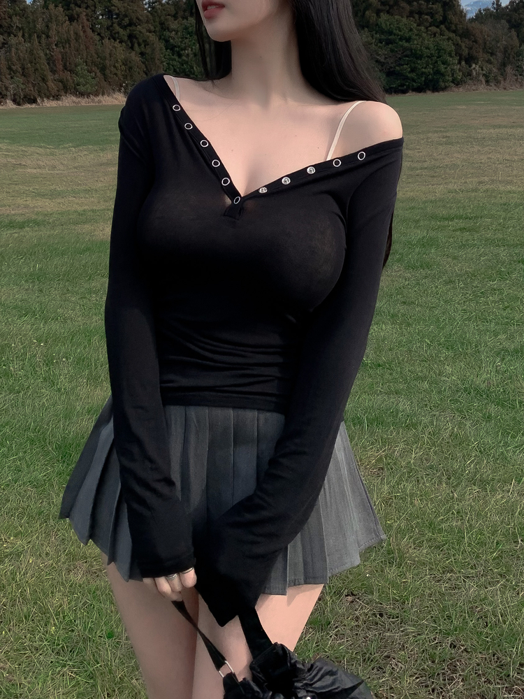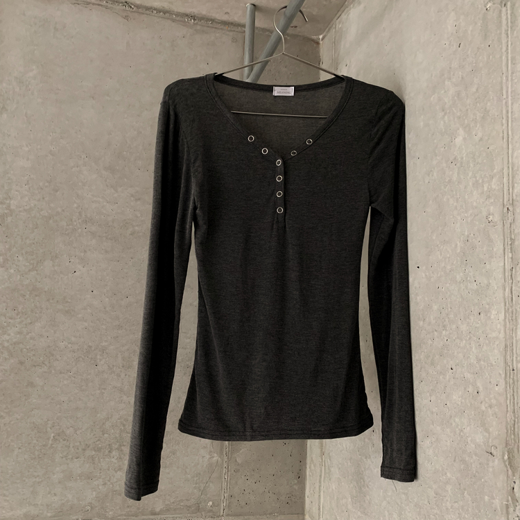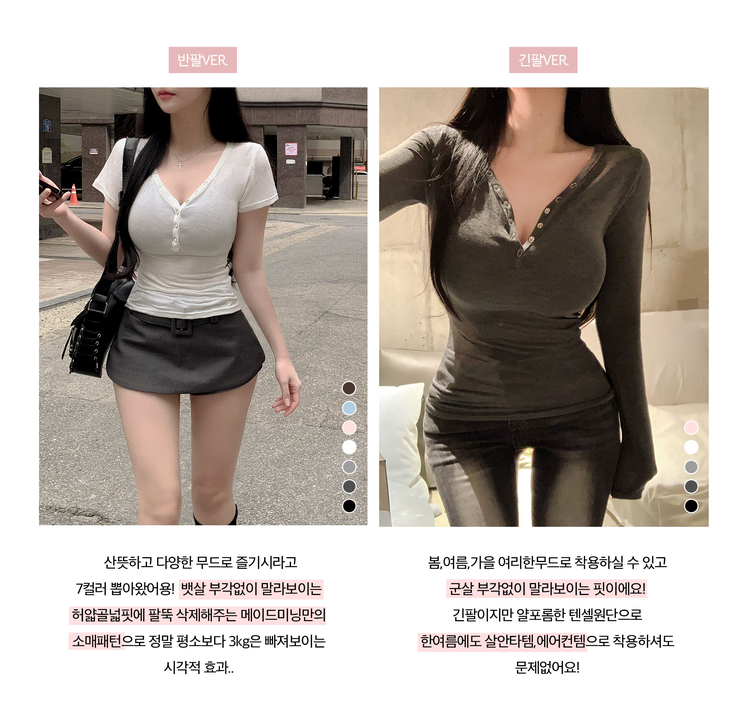 STS75821 누적만장 원조카피주의 3kg 흉곽말라핏자체제작 텐셀 또또 스냅 단추 헨리넥 몸매보정 긴팔 롱슬리브 티셔츠