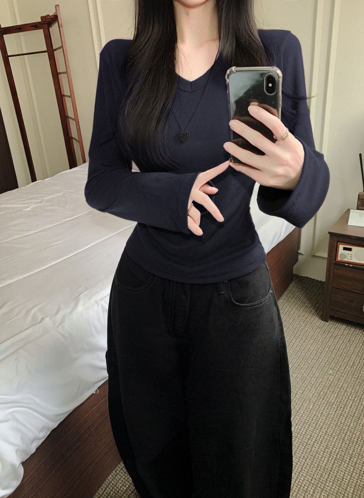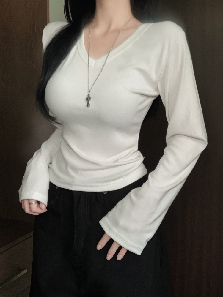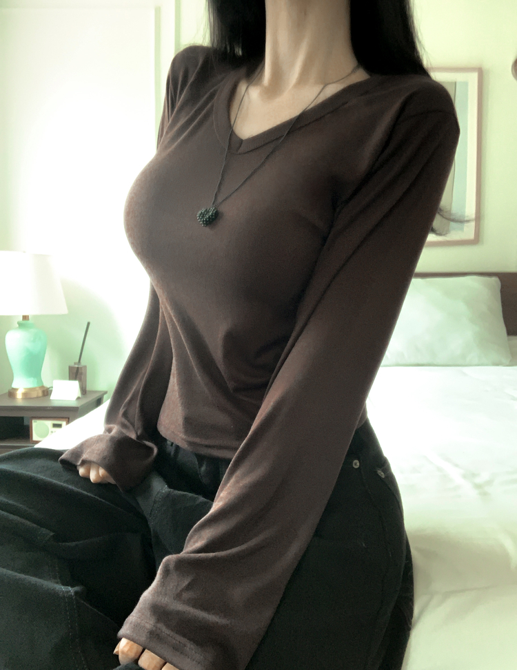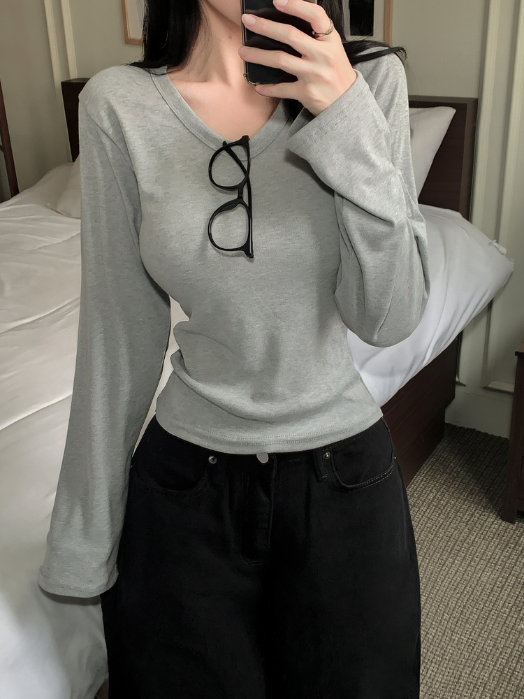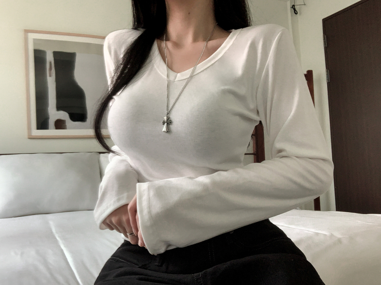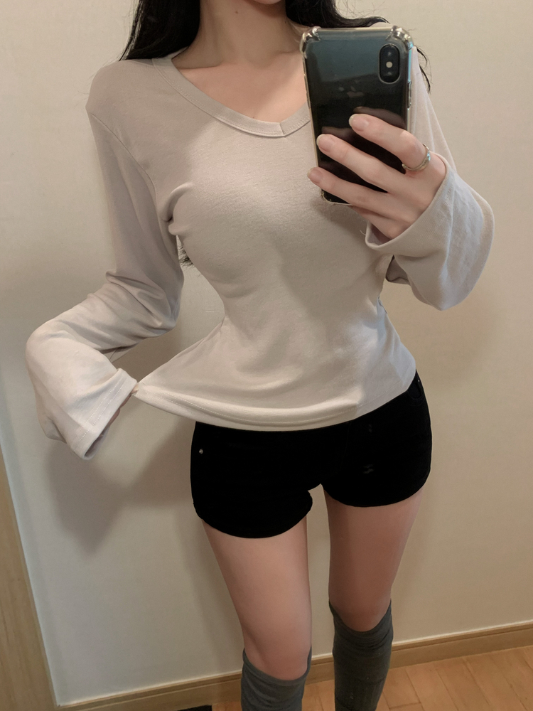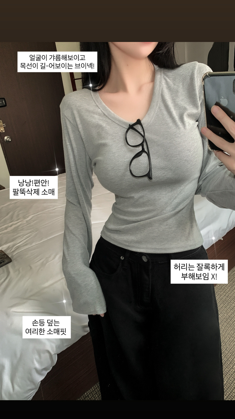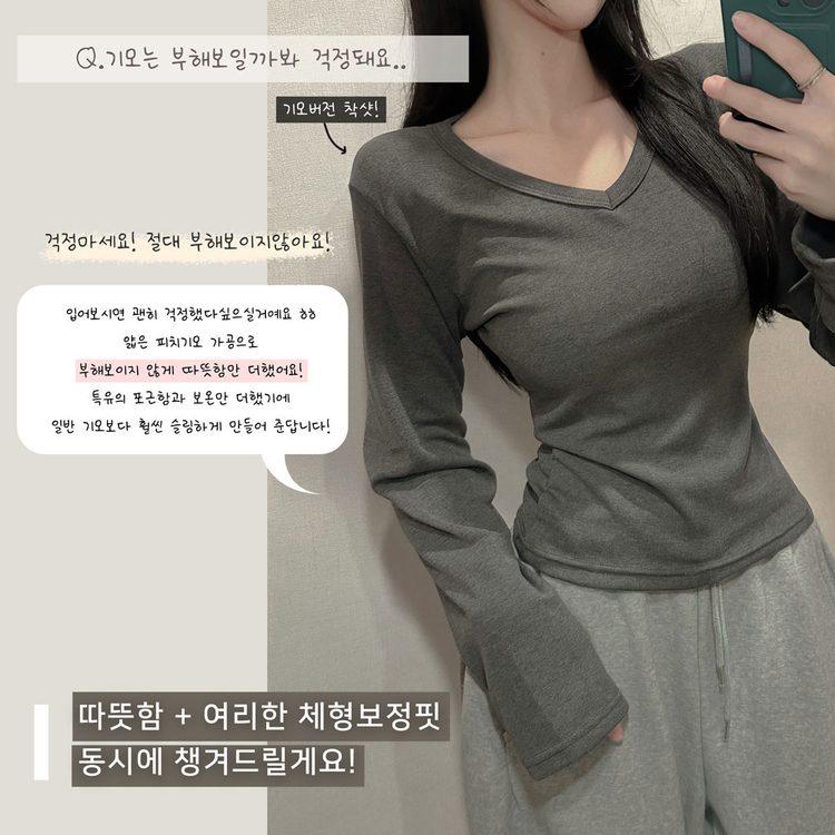 STS75839 단독컬러추가 기본기모 브이넥 모달 루즈 슬림핏 허얇골넓 라인 체형보완 체형커버 기본 데일리 무지 긴팔티셔츠