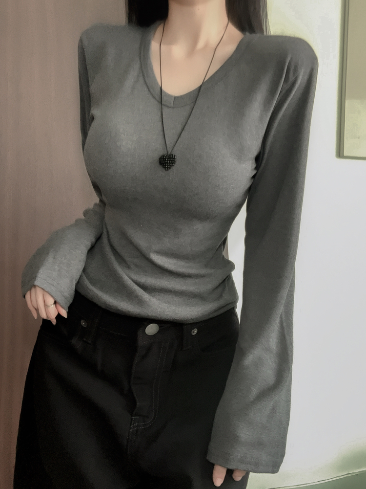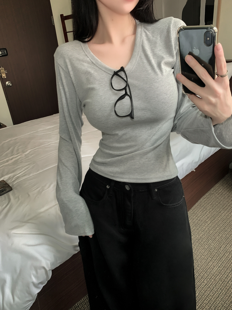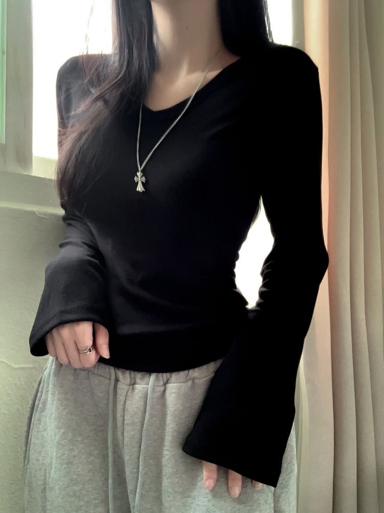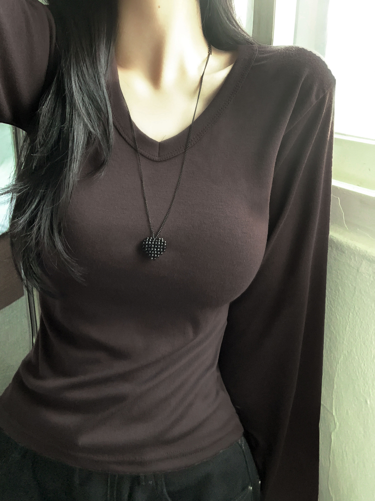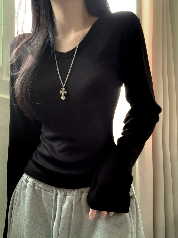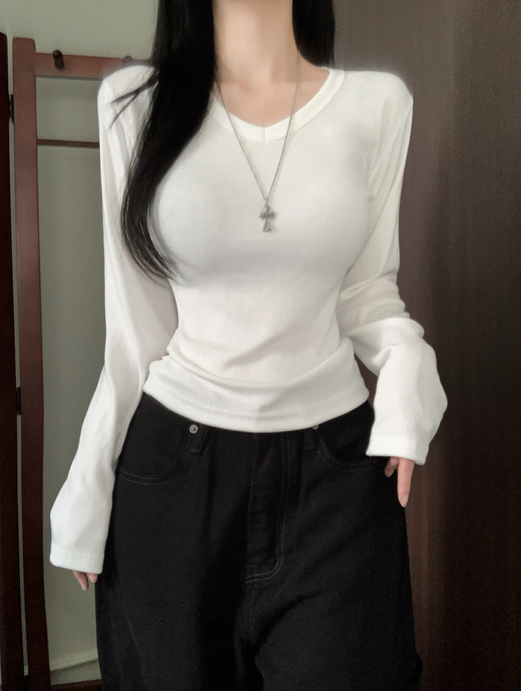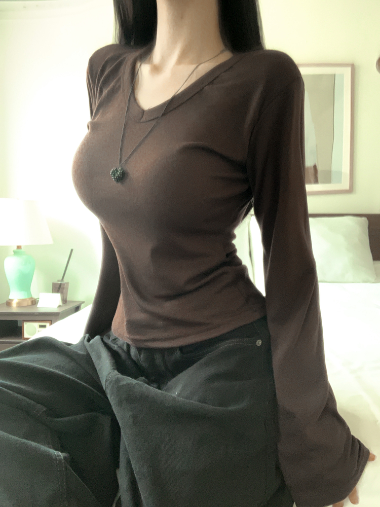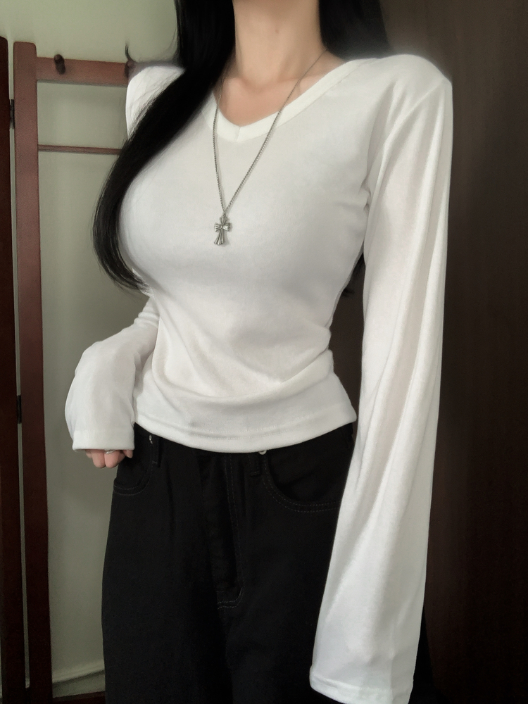 STS75839 단독컬러추가 기본기모 브이넥 모달 루즈 슬림핏 허얇골넓 라인 체형보완 체형커버 기본 데일리 무지 긴팔티셔츠