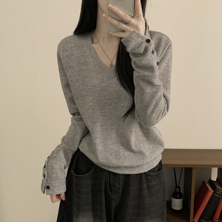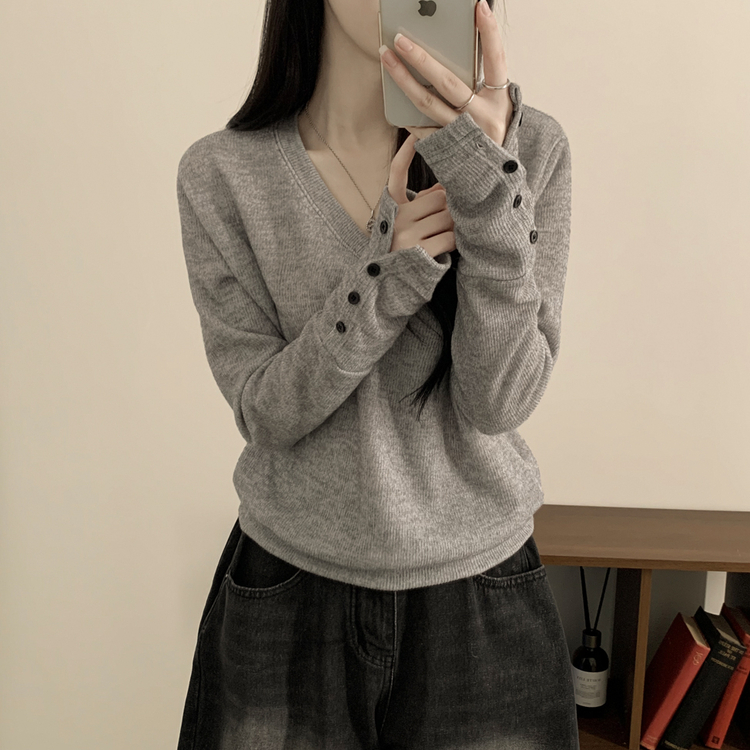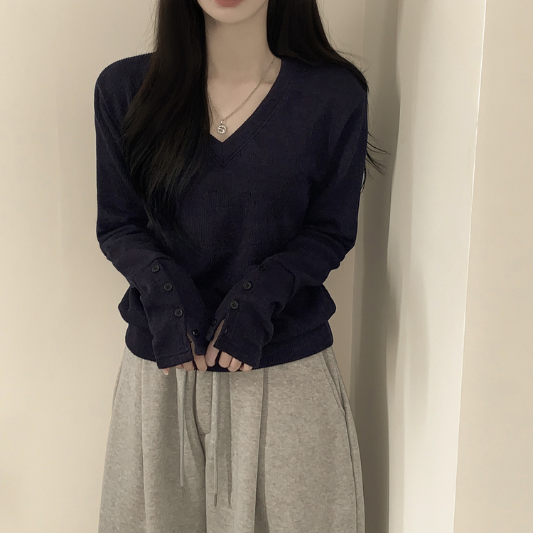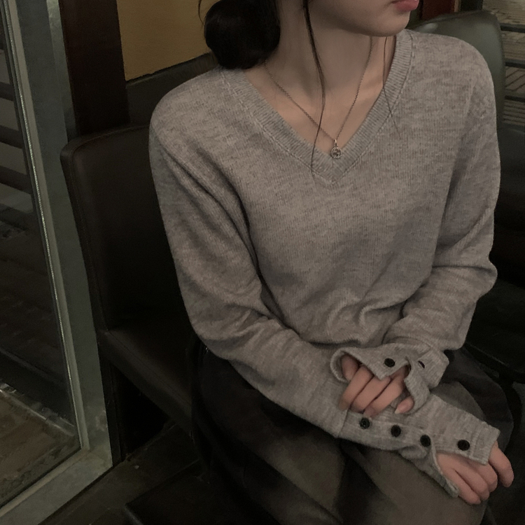 SNT35538 손등덮는 여리여리 브이넥 니트 긴팔티셔츠 봄맨투맨 봄신상