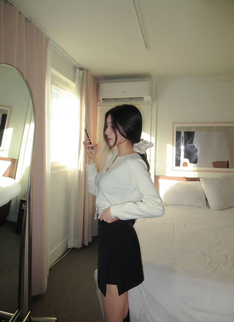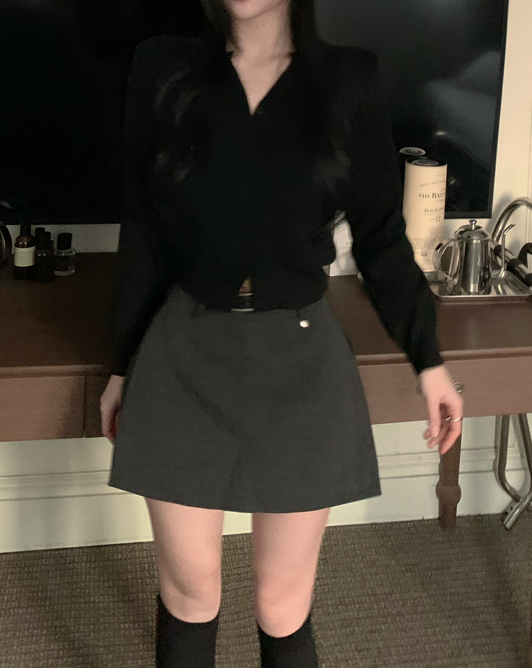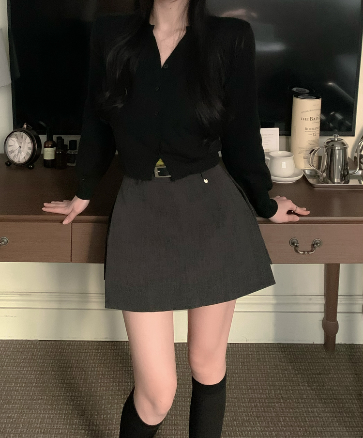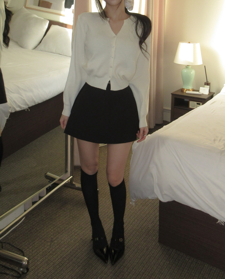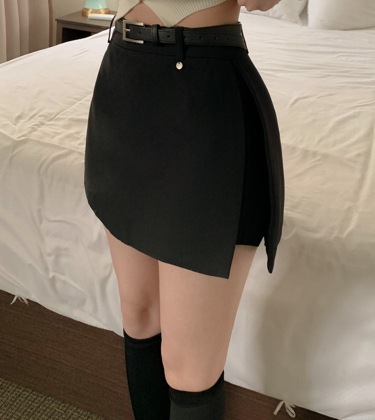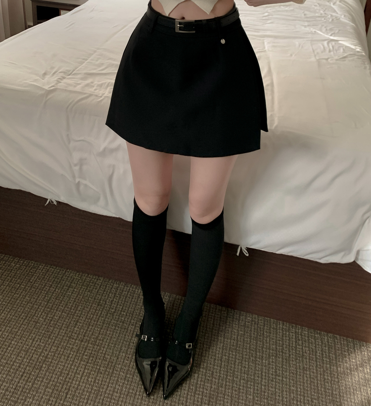 SSK26045 탄탄바지안감 마랑 펜던트 트임 A라인 미니 미디 스커트