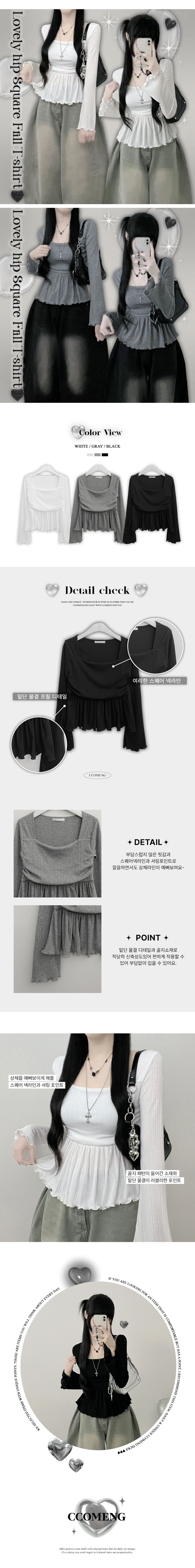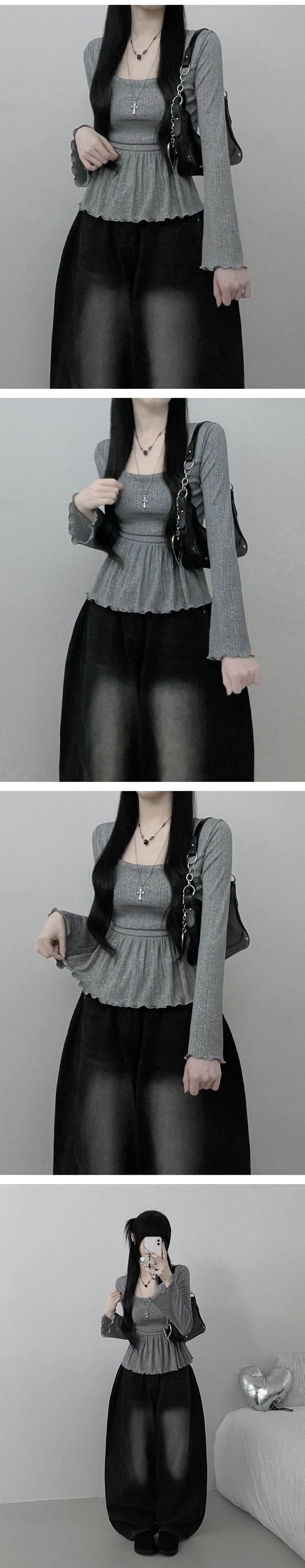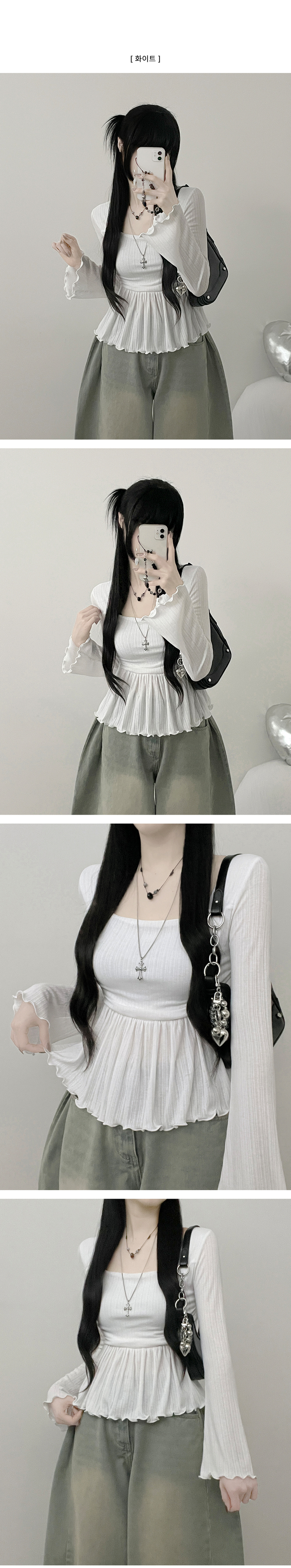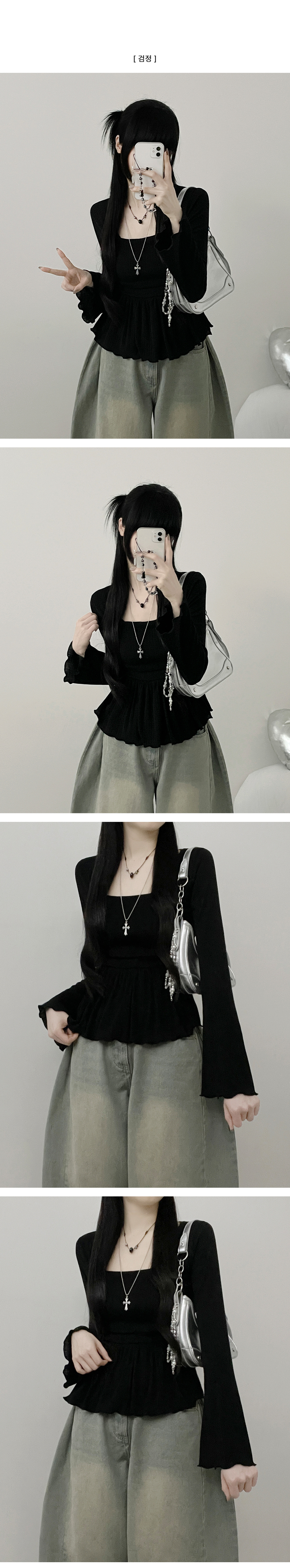 STS242301 물결골지프릴스퀘어셔링긴팔티셔츠