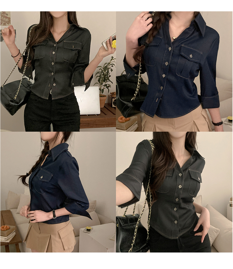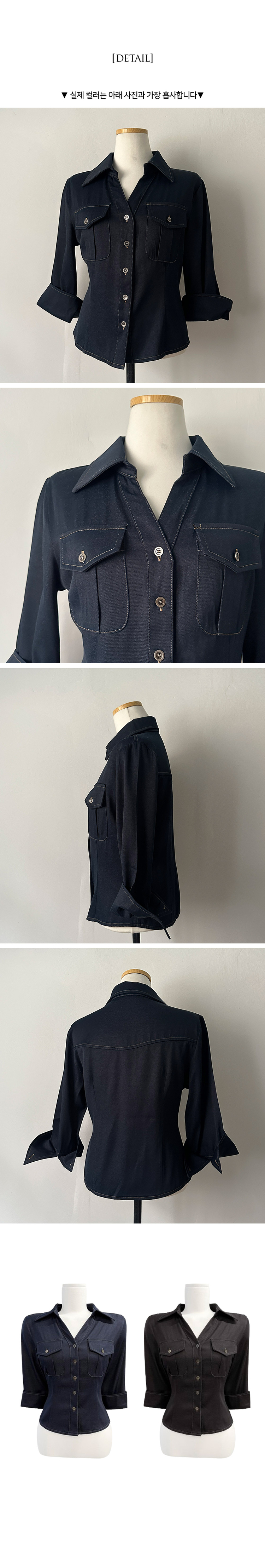 SBS30713 턴업 슬림핏 생지 커프스 7부 셔츠