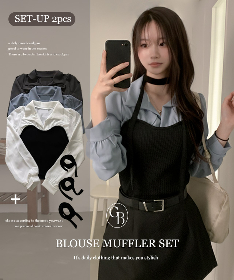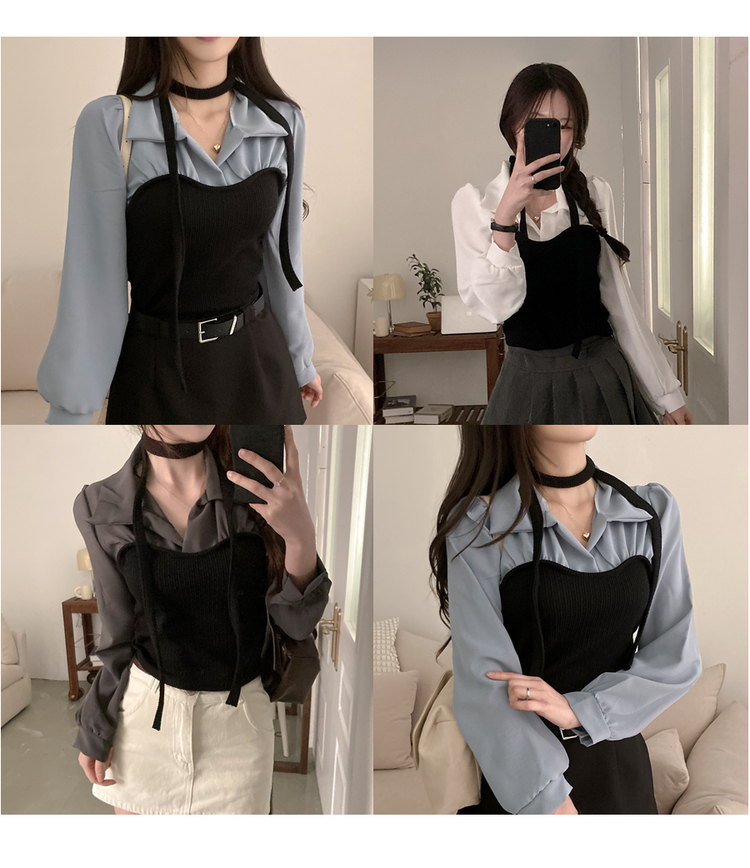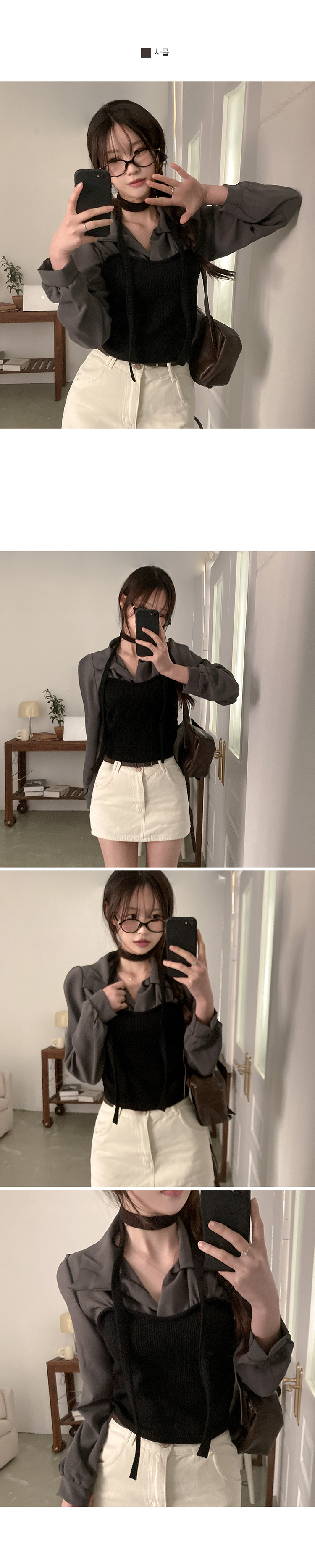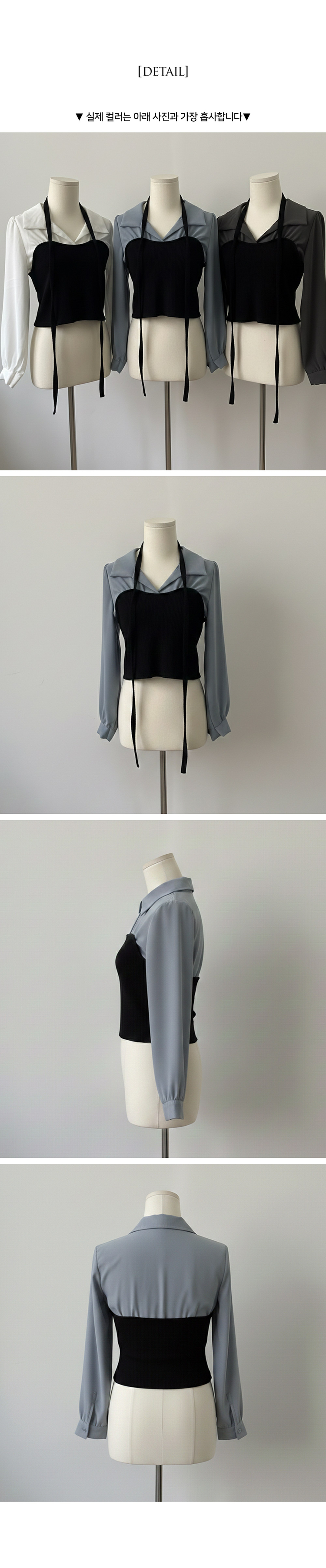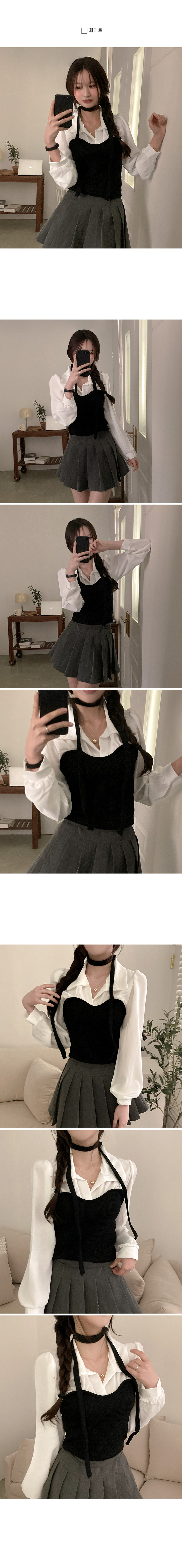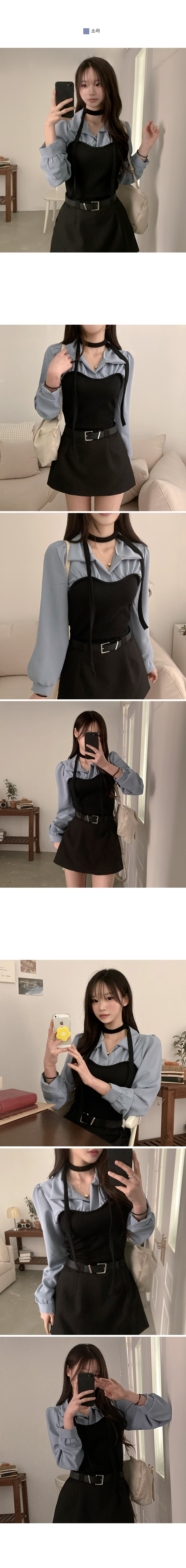 SBS30712 블러쉬 뷔스티에 레이어드 초커set 쉬폰 블라우스