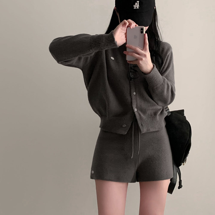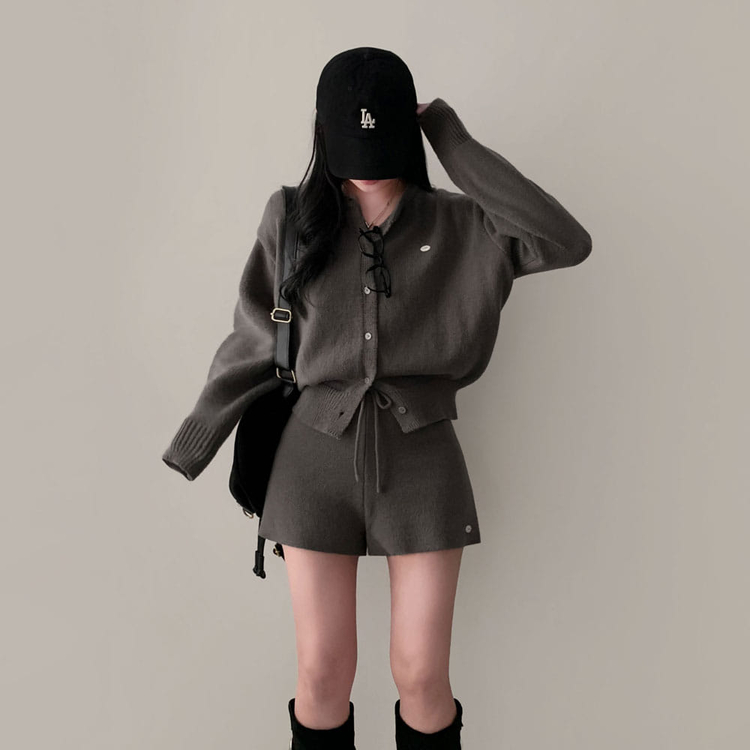 SOP30777 셀레나 팬던트 니트 가디건숏팬츠 투피스 세트