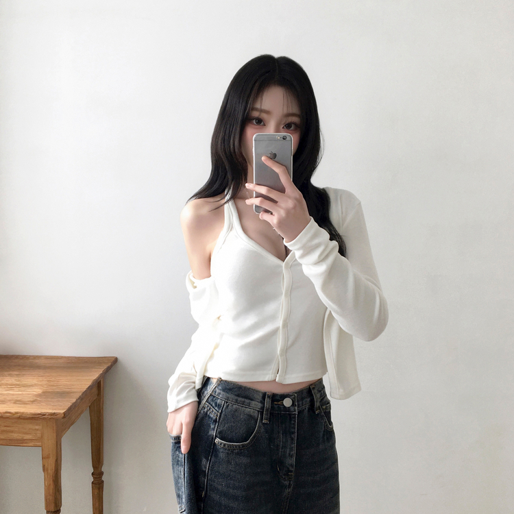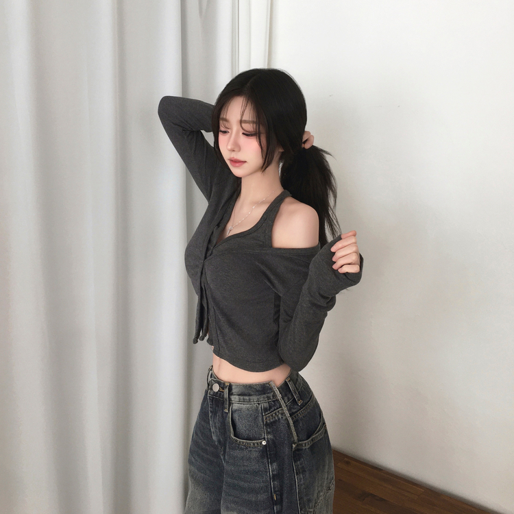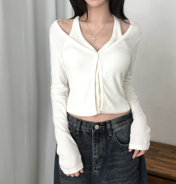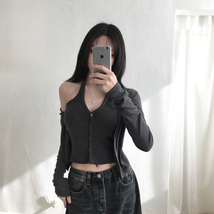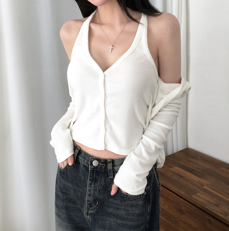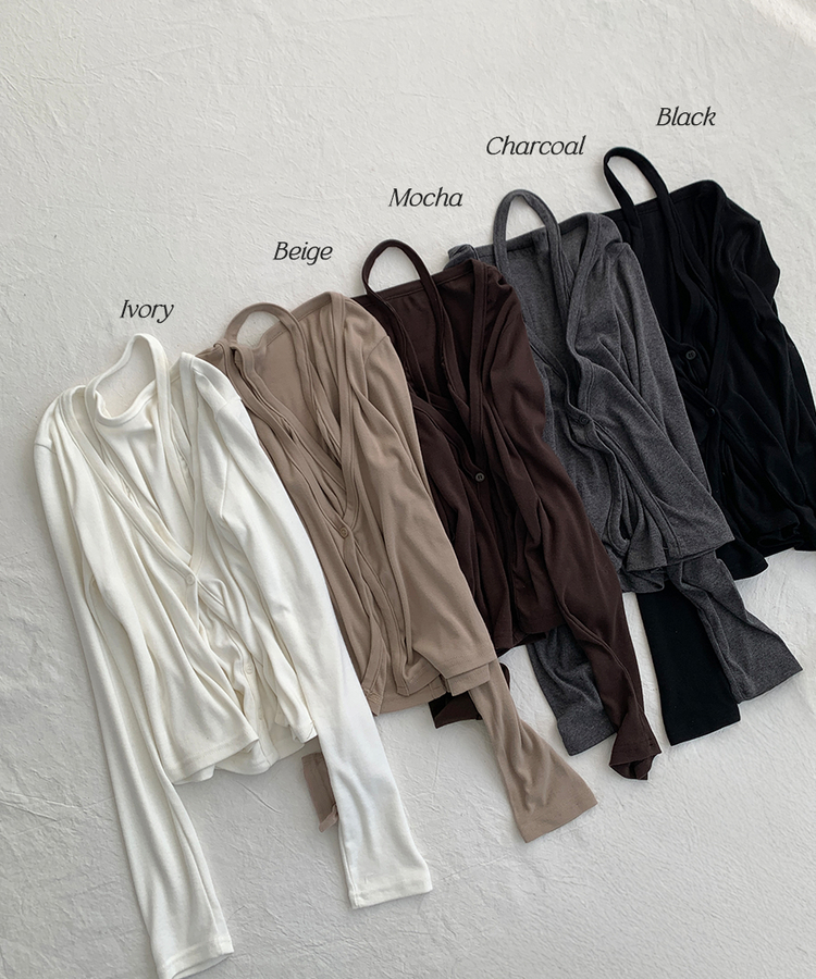 SGD31118 시쥬 홀터넥 나시 일체형 레이어드 슬림 긴팔 가디건