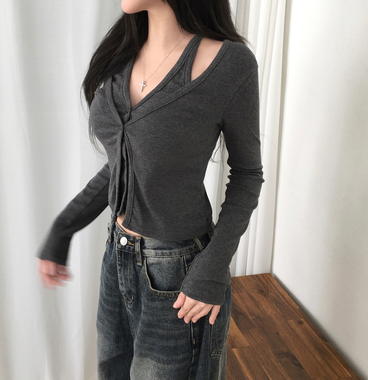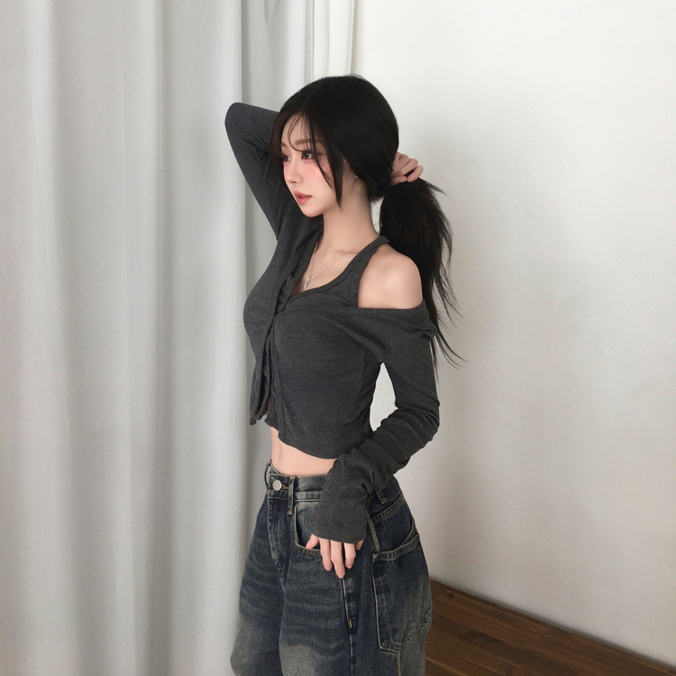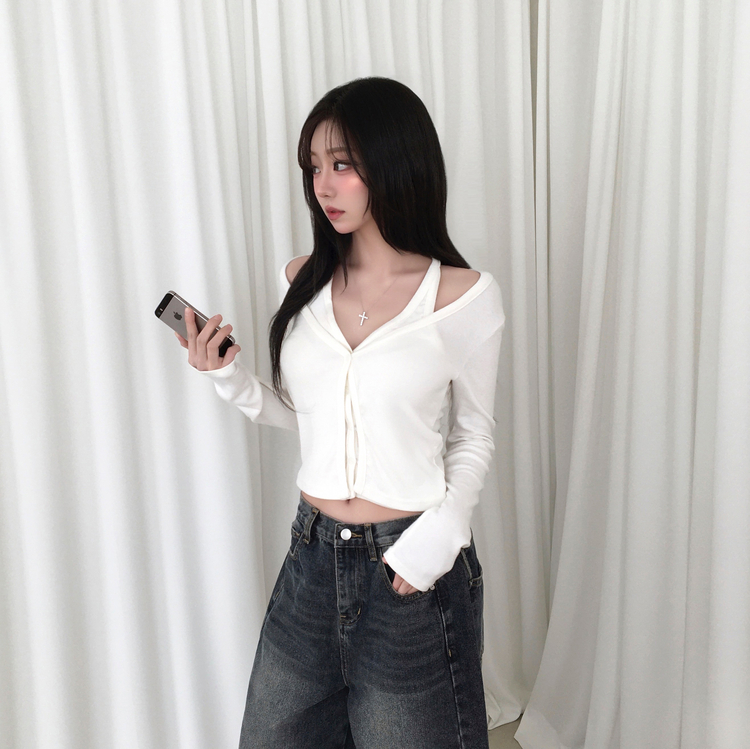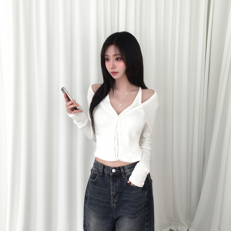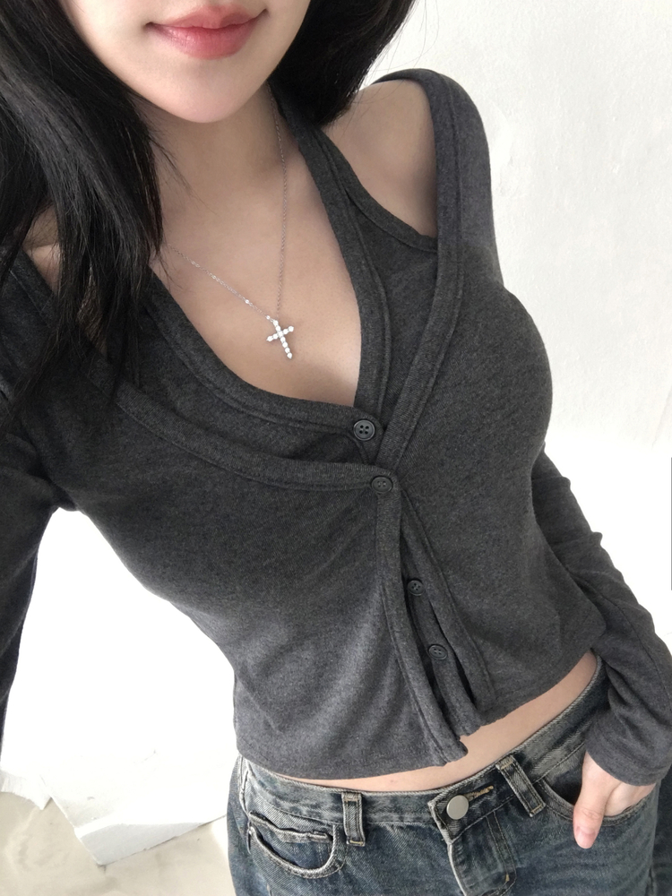 SGD31118 시쥬 홀터넥 나시 일체형 레이어드 슬림 긴팔 가디건