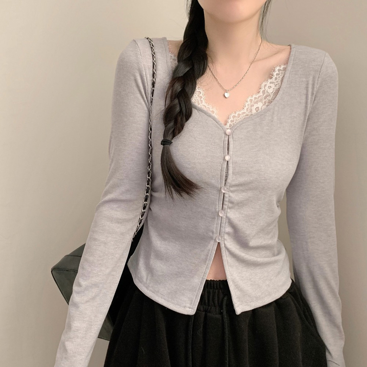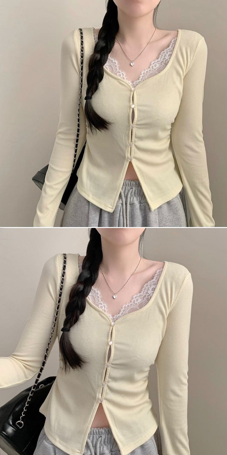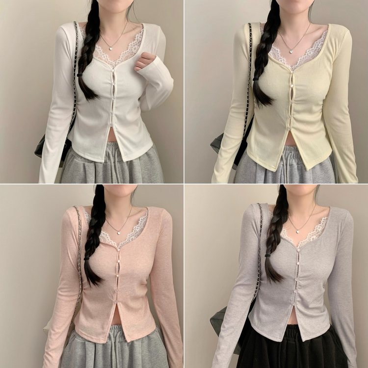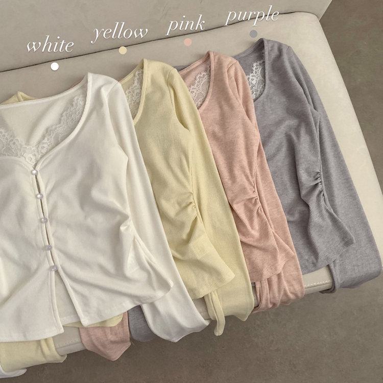 STS242337 로라 콩단추 트임 긴팔티 롱슬리브 레이어드 봄 봄옷 벚꽃 상의 긴팔티셔츠 수학여행 에겐