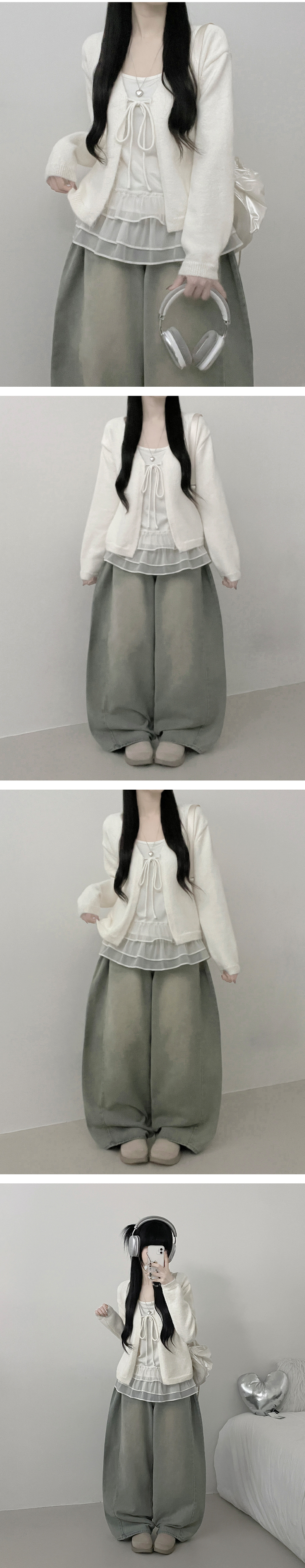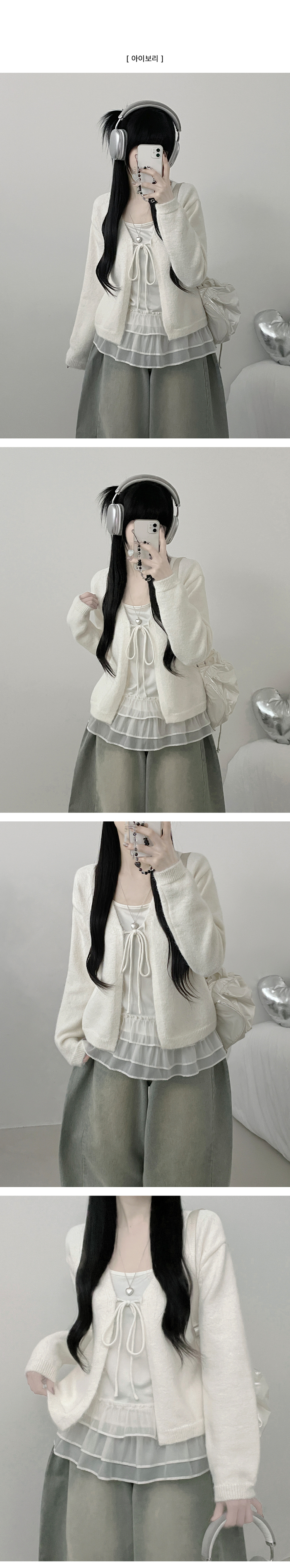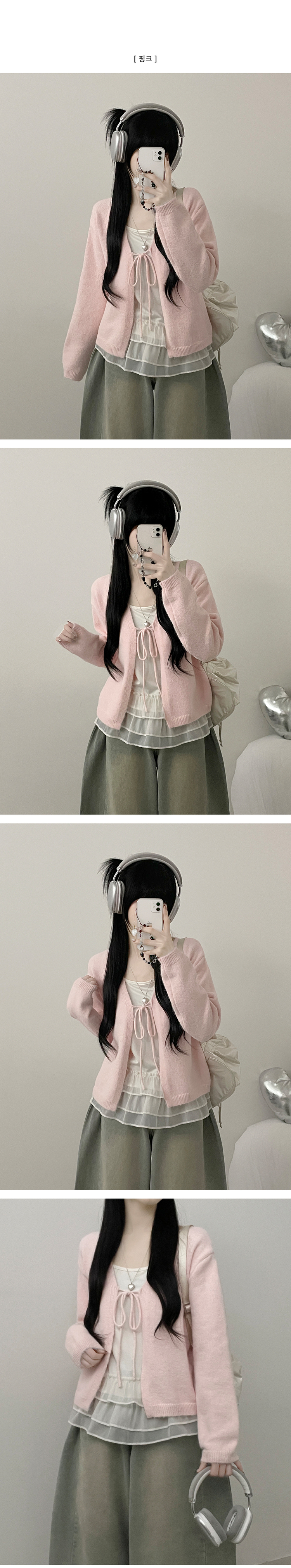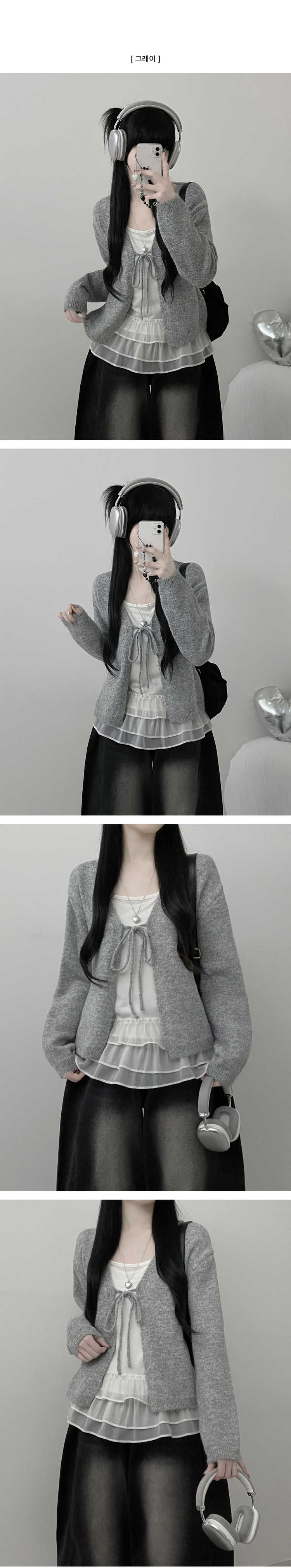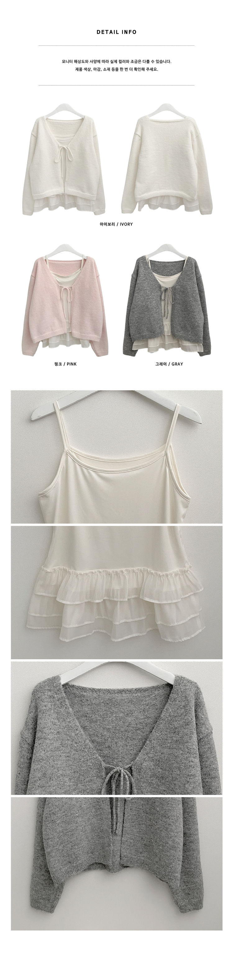 SGD31146 럽유프릴레이어드나시원피스리본끈니트가디건세트