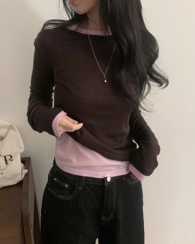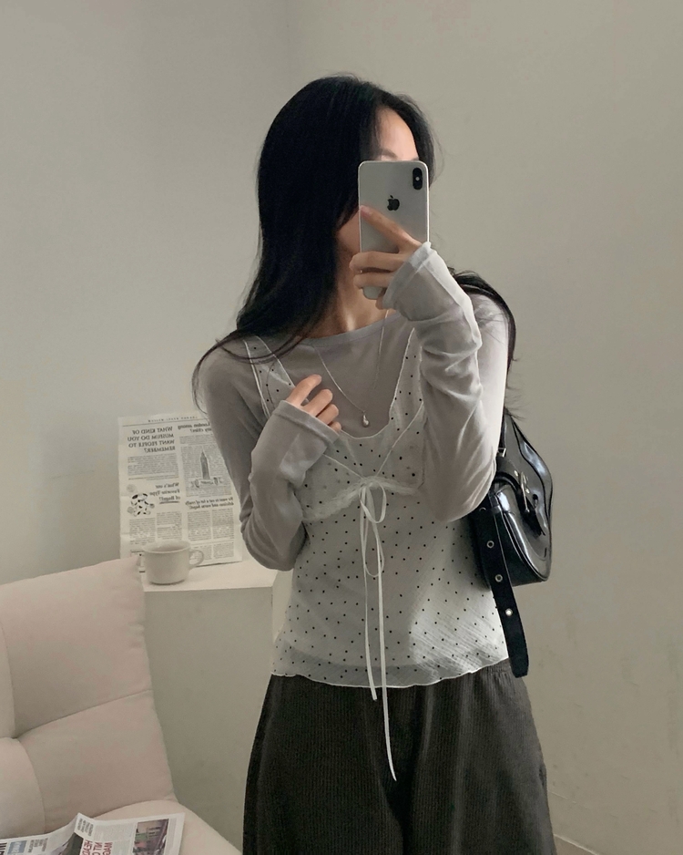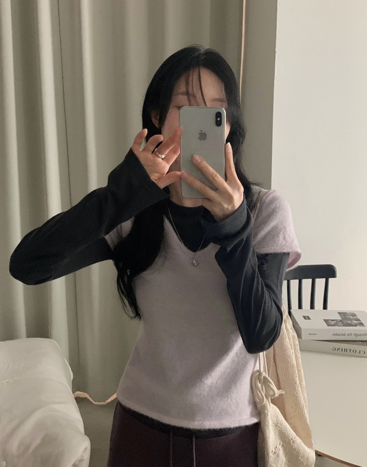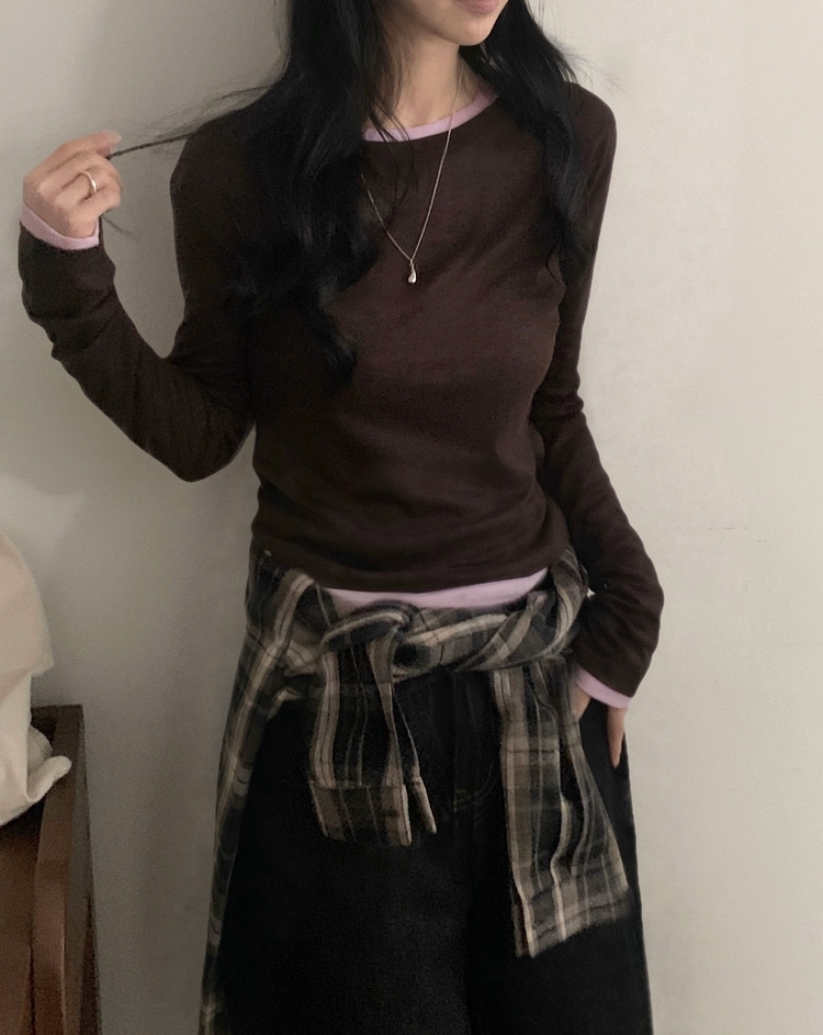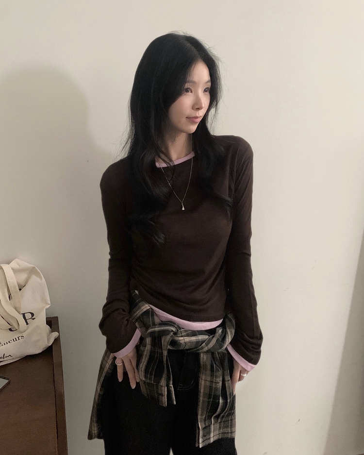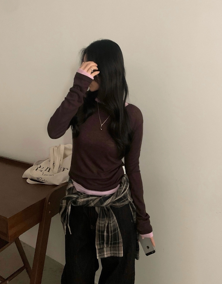 STS242450 라밍 레이어드 텐셀 시스루 롱슬리브 이너 긴팔티셔츠
