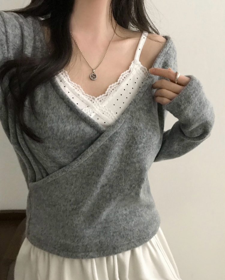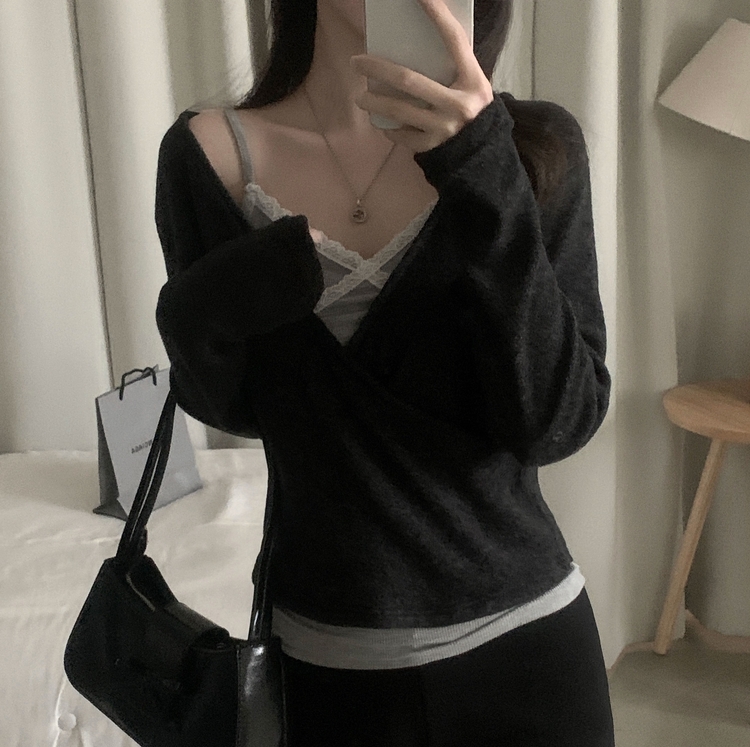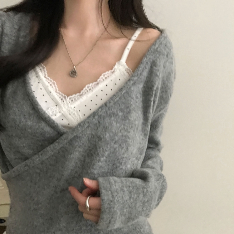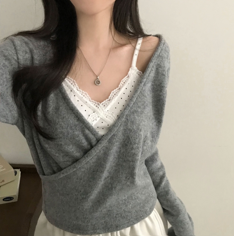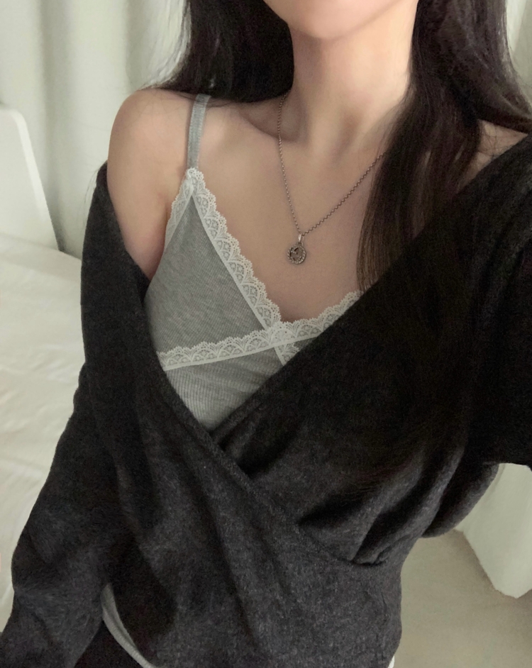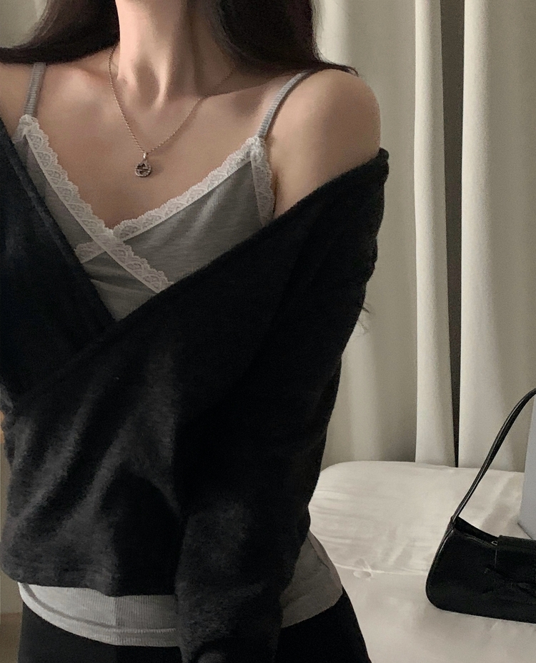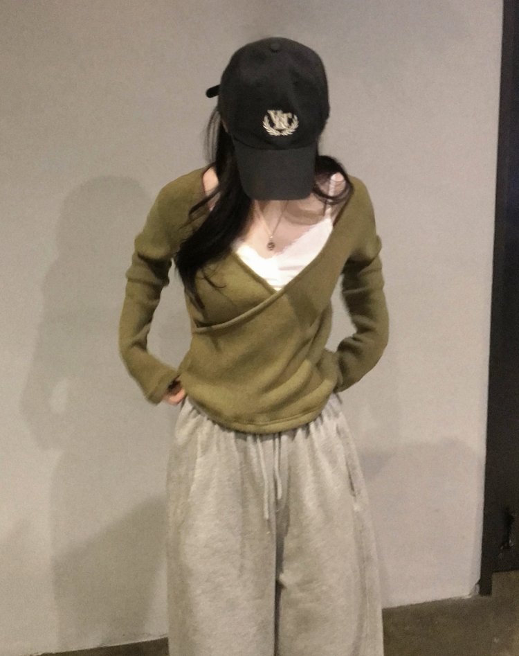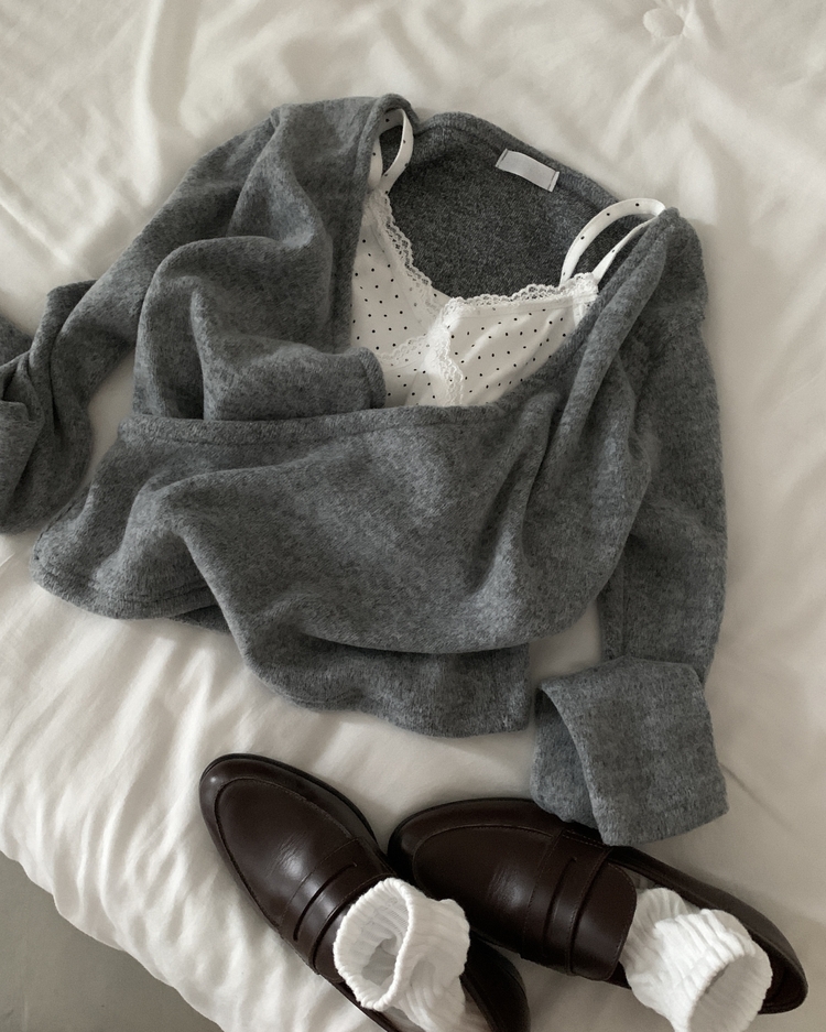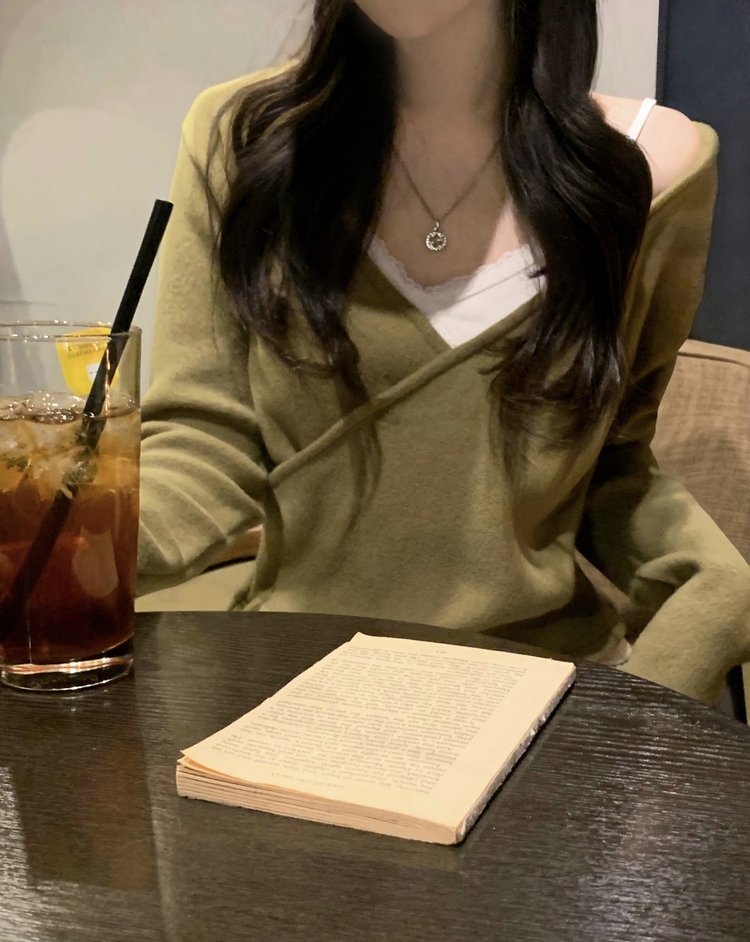 SNT35632 포리나 여리 오프숄더 슬림 랩니트 티셔츠 3color