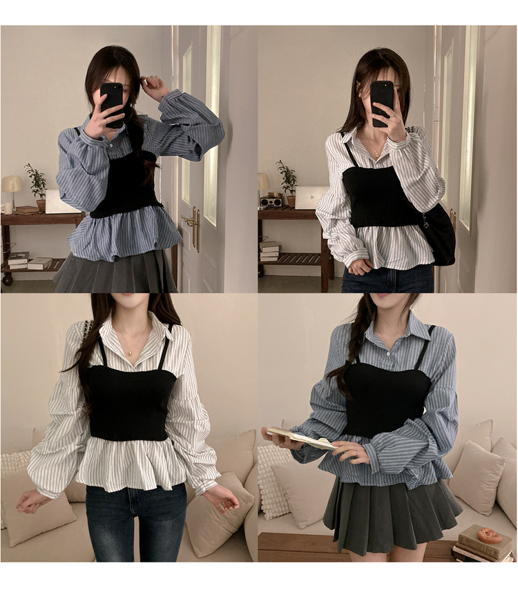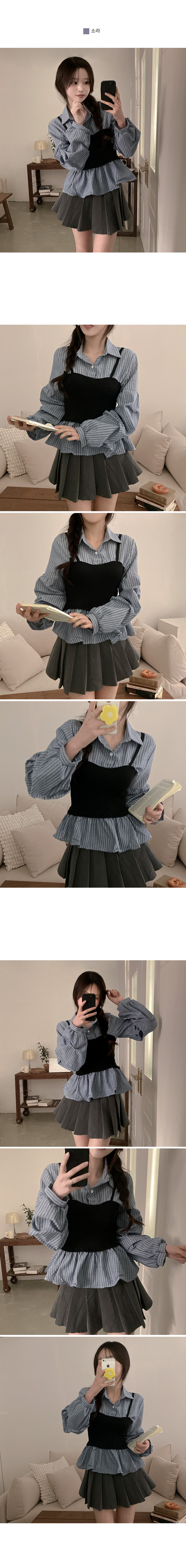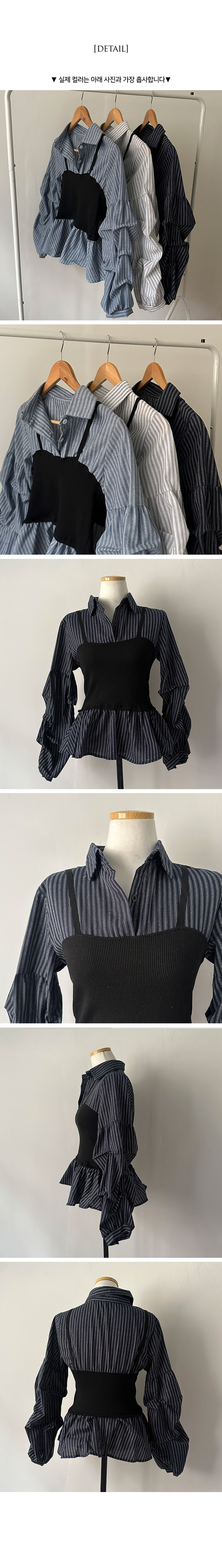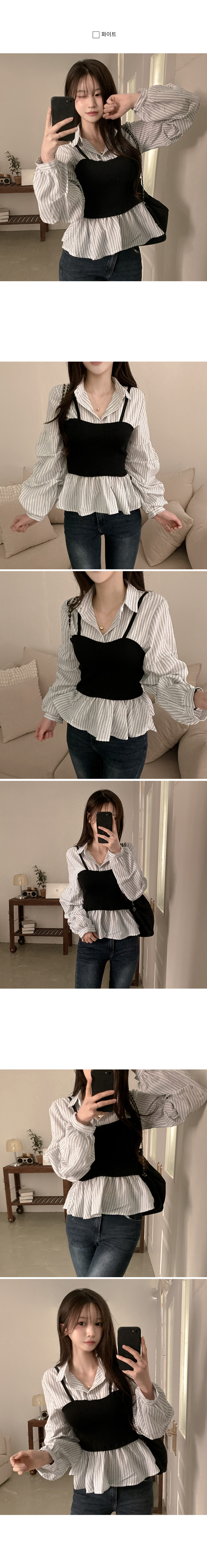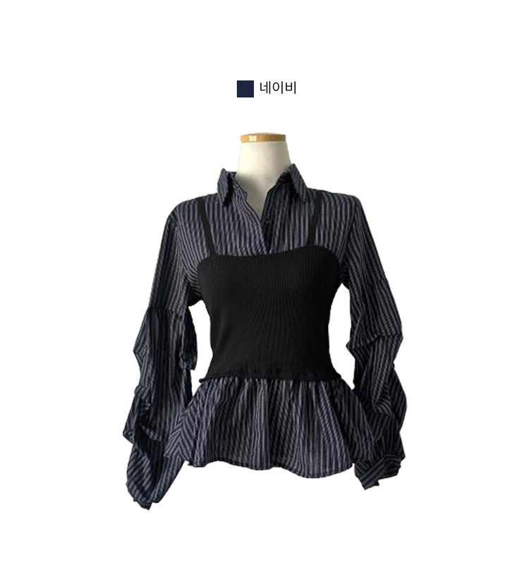 SBS30757 바인드 스트라이프 퍼프 뷔스티에 일체형 블라우스 셔츠