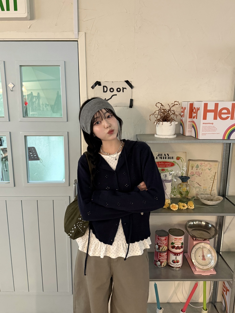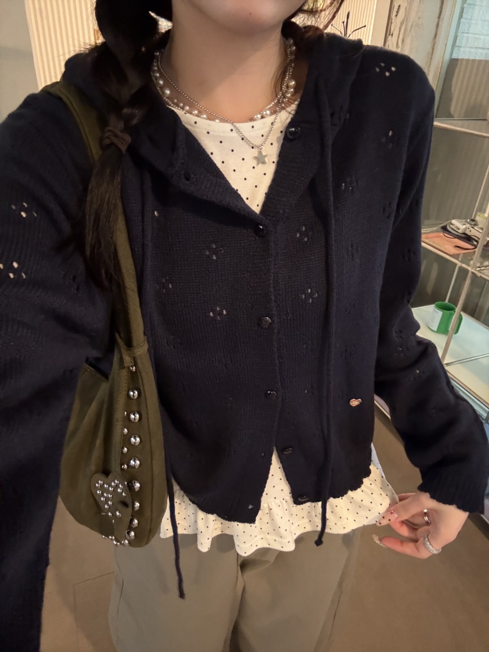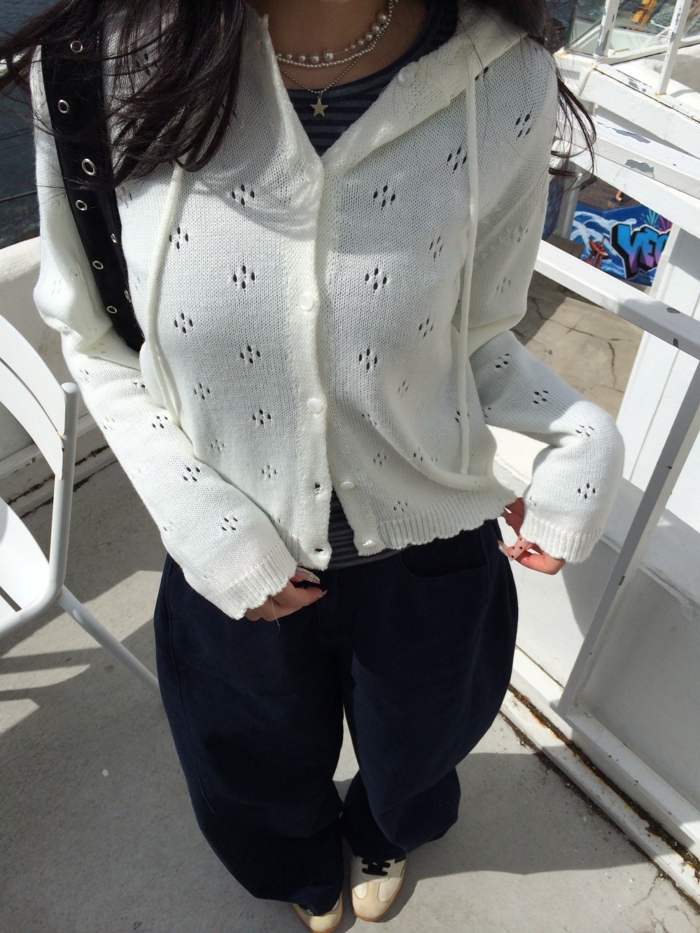 SGD31193 【✔기획】스카시 펀칭 후드 가디건