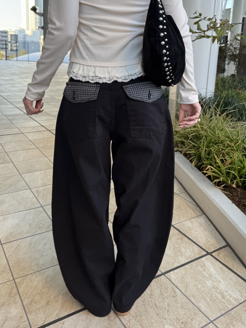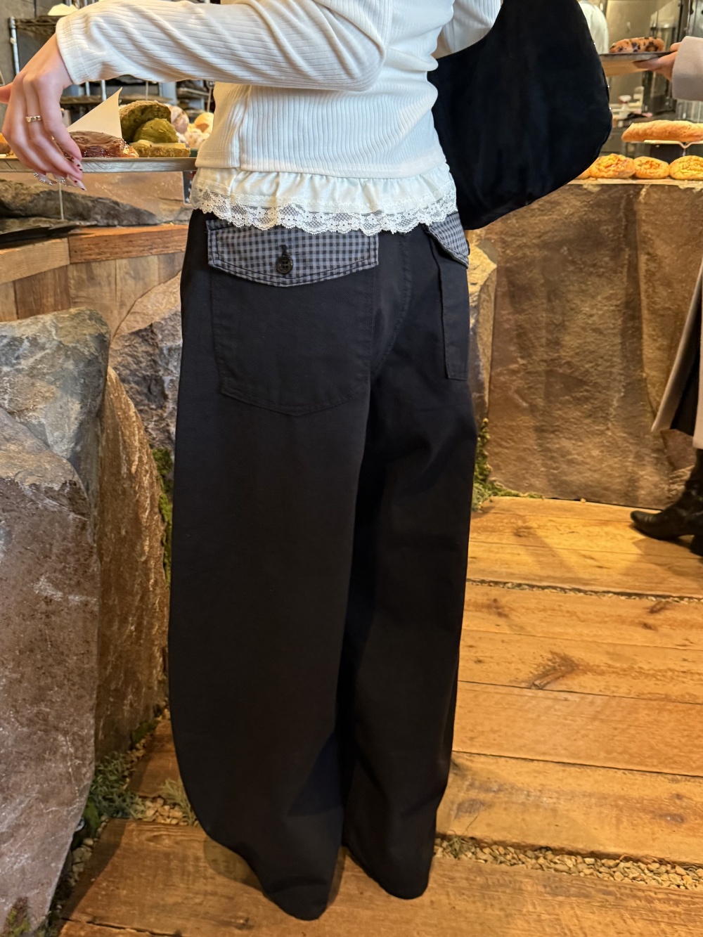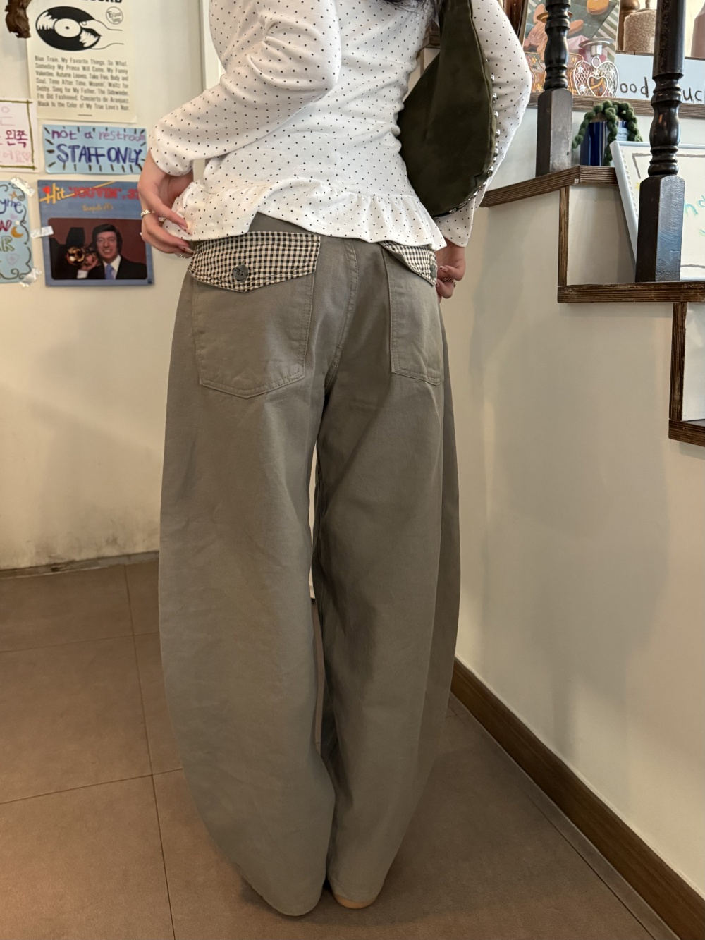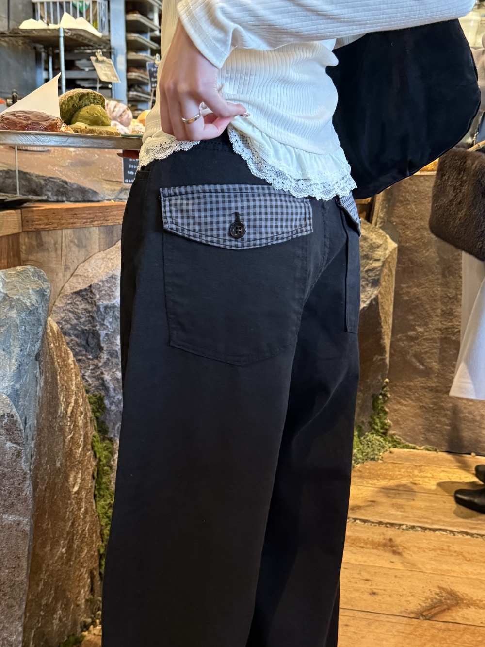 SPS38585 포켓 체크 포인트 와이드 팬츠