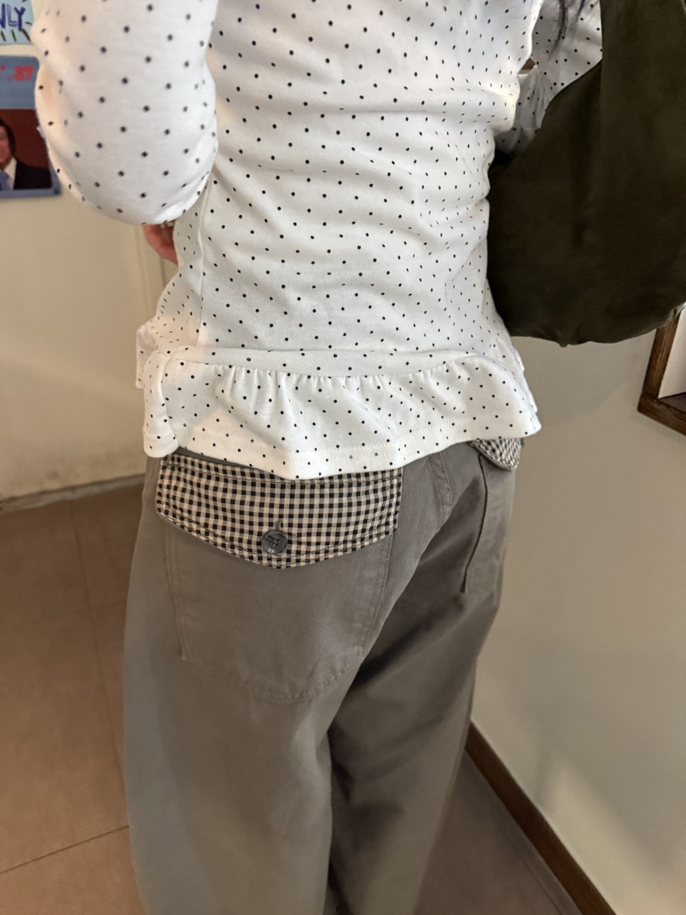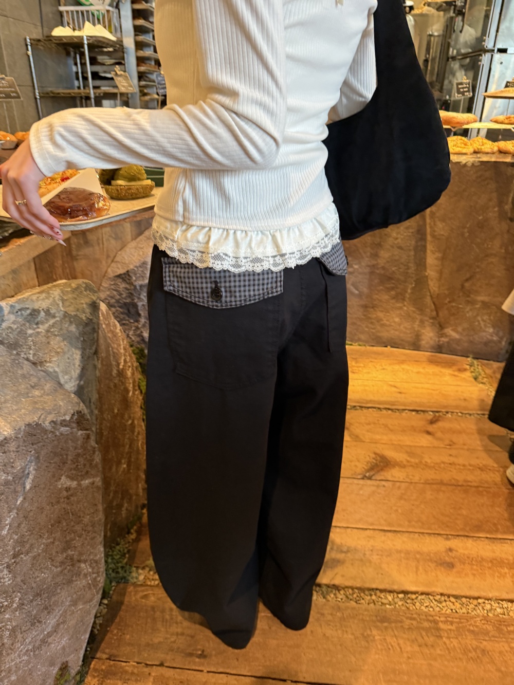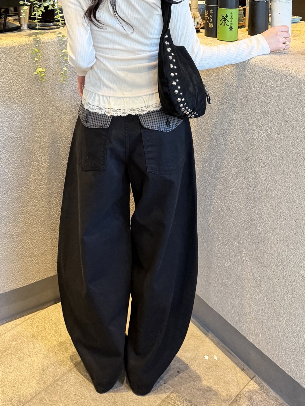SPS38585 포켓 체크 포인트 와이드 팬츠