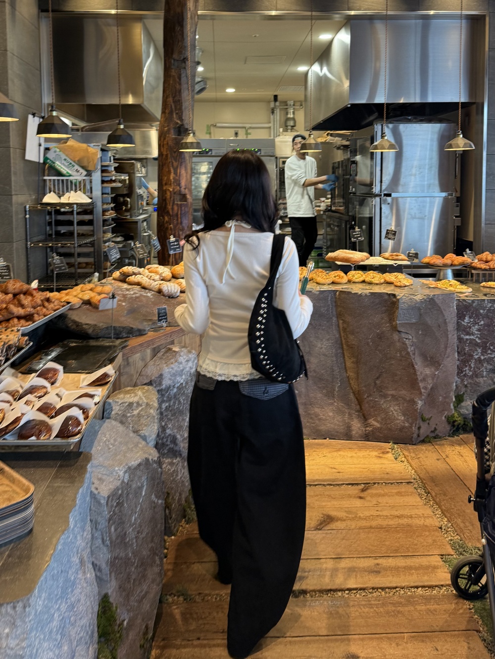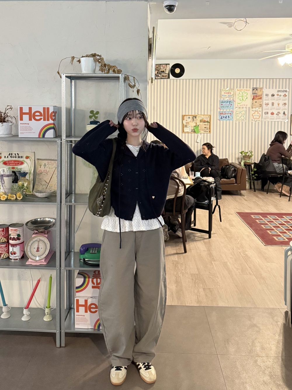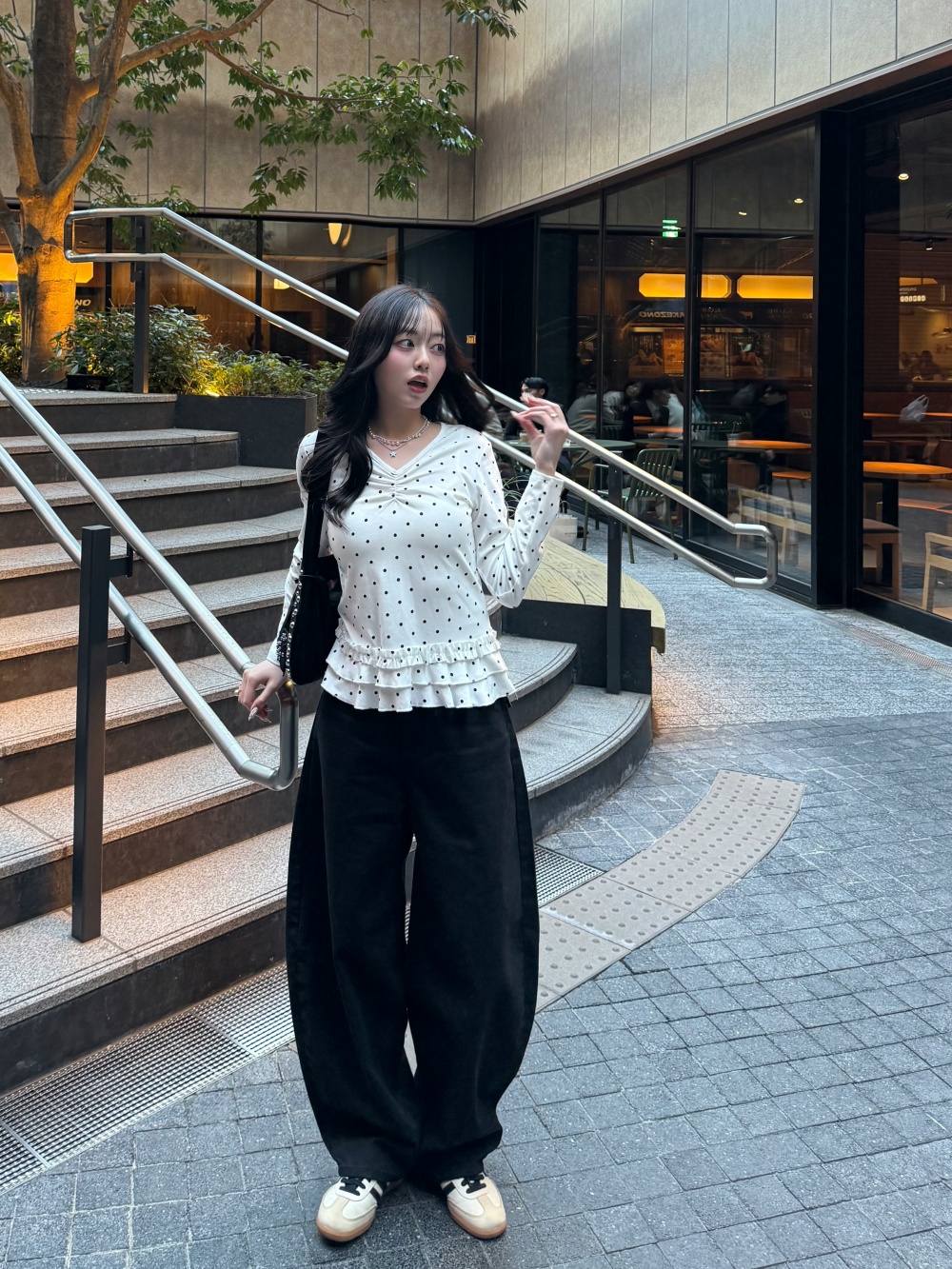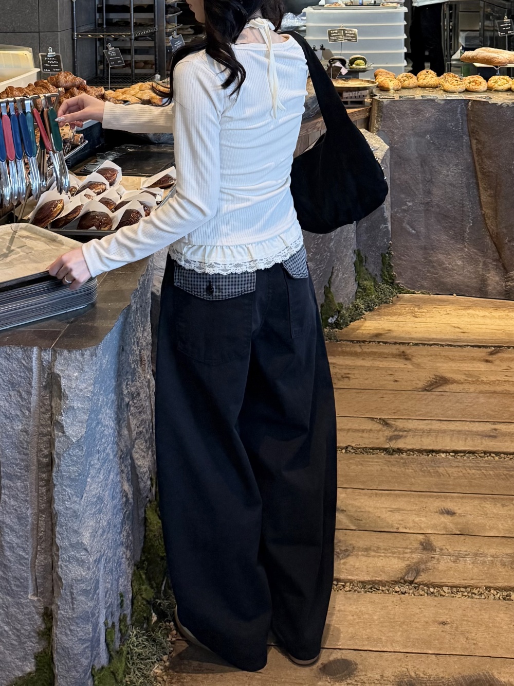 SPS38585 포켓 체크 포인트 와이드 팬츠