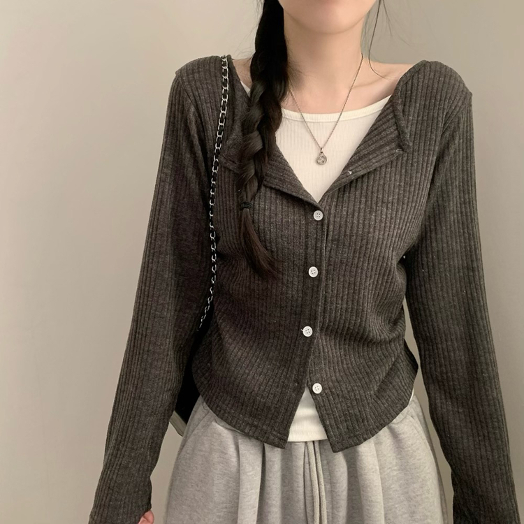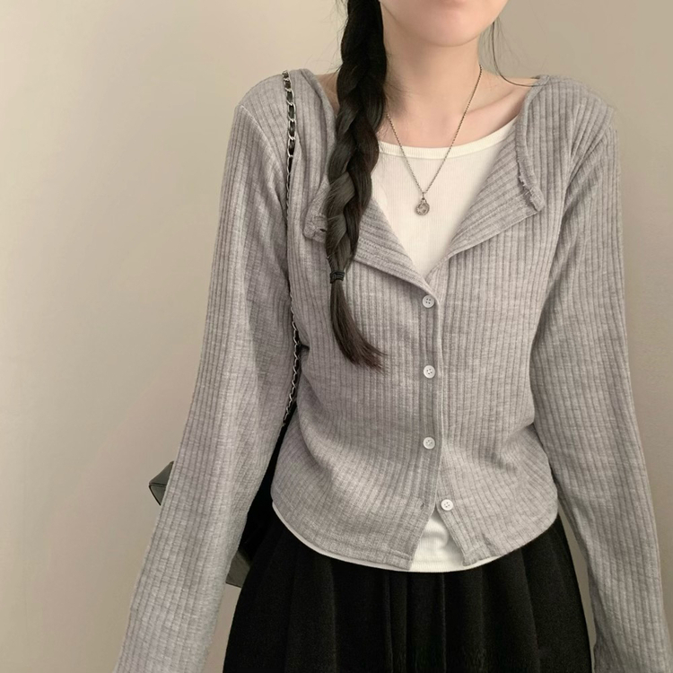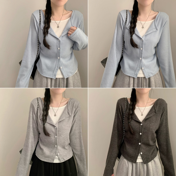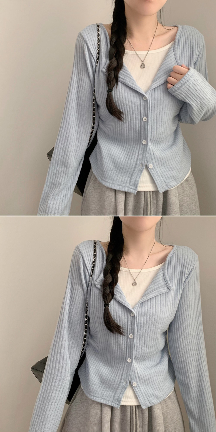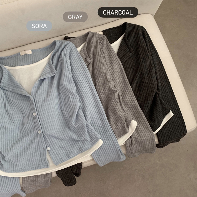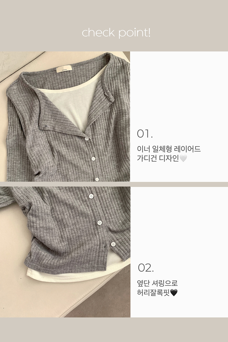 SGD31230 오즈 레이어드 긴팔티 라운드넥 골지 크롭 셔링 긴팔 가디건 티셔츠 긴소매티셔츠 상의 봄 아우터 봄옷 가을 가을옷