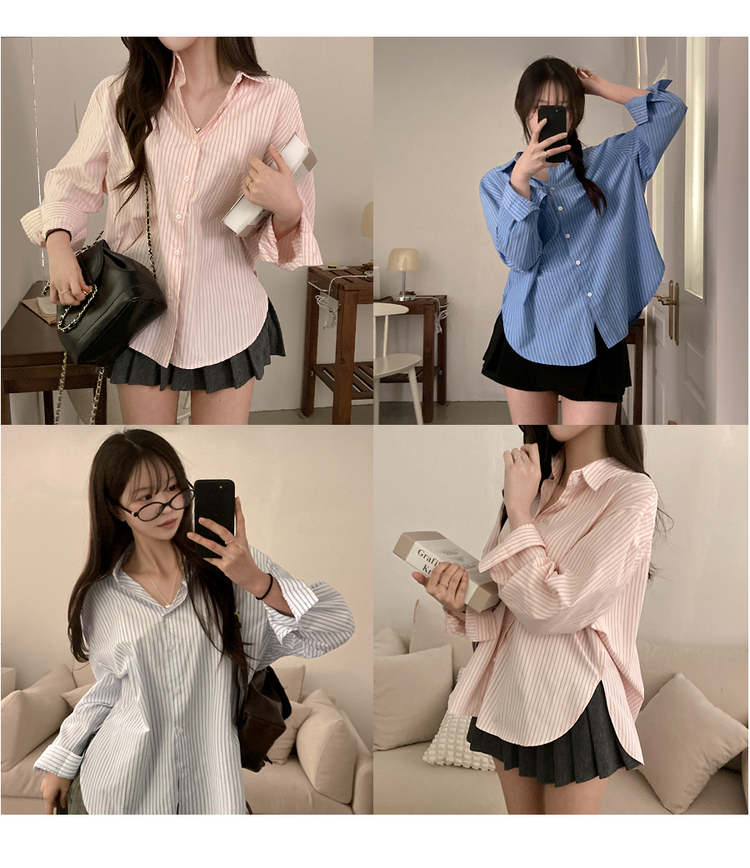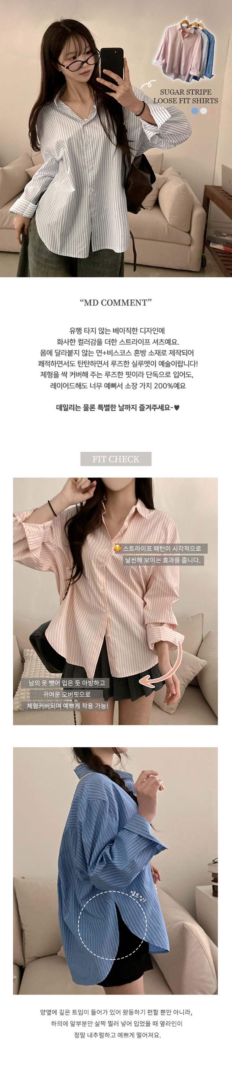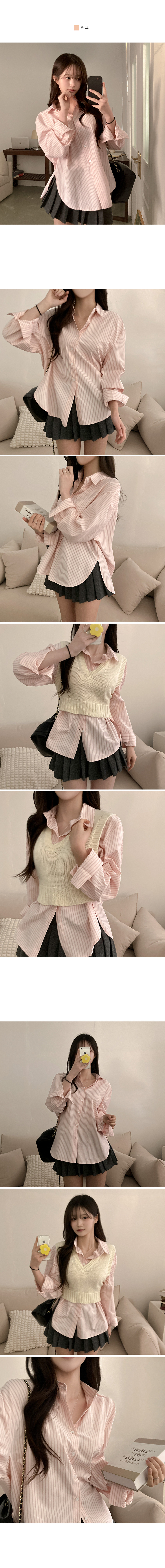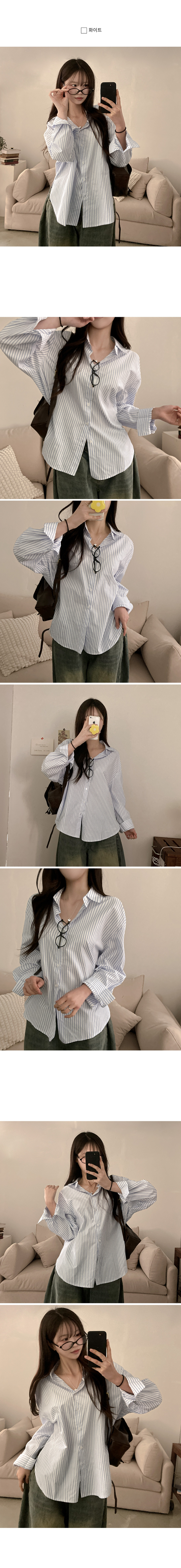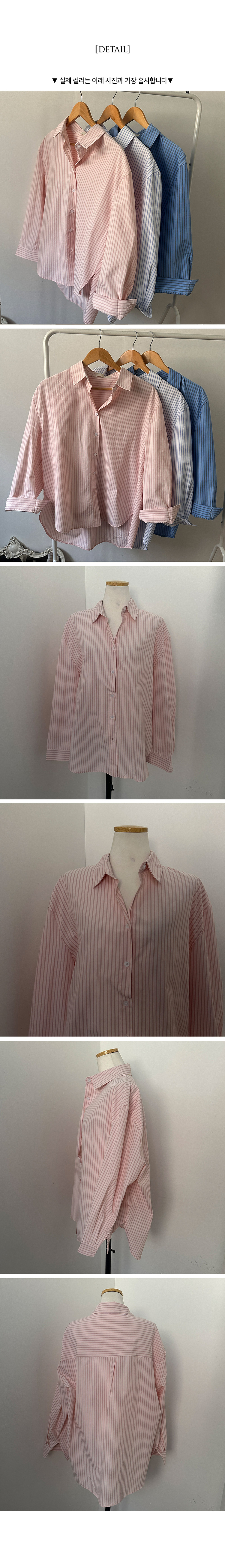 SBS30776 슈가 스트라이프 줄지 루즈핏 옆 트임 셔츠
