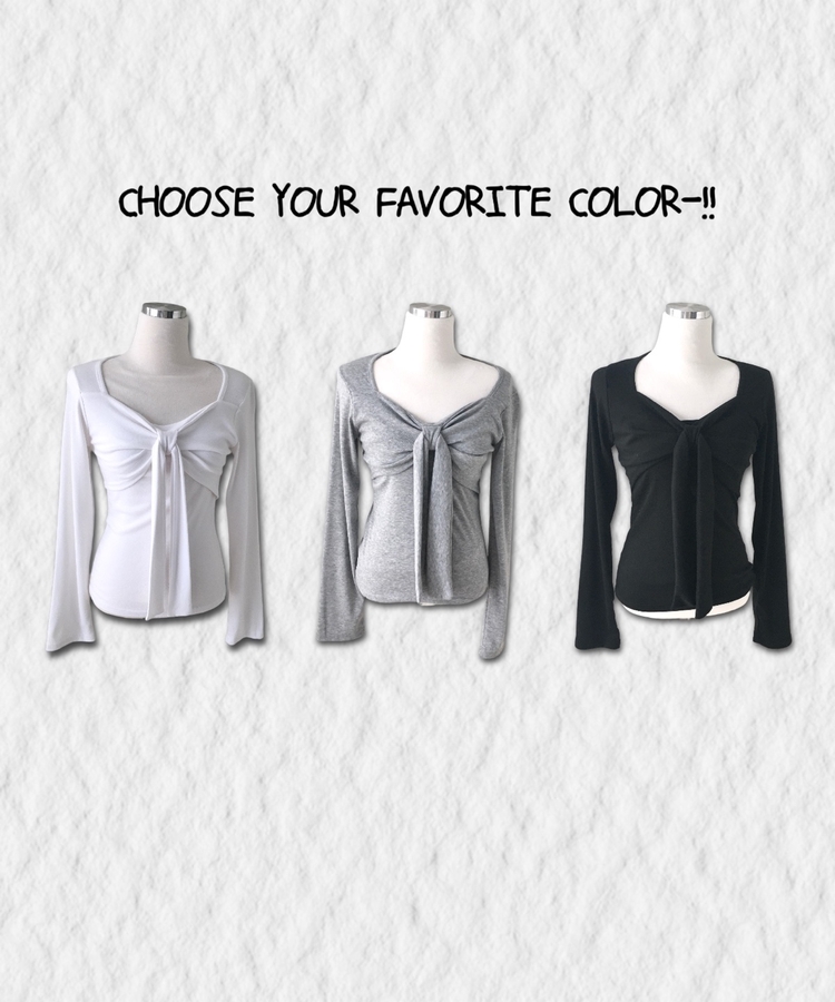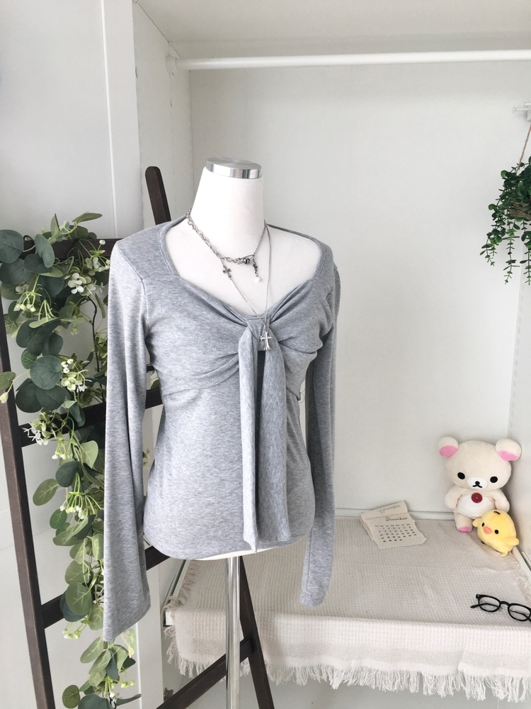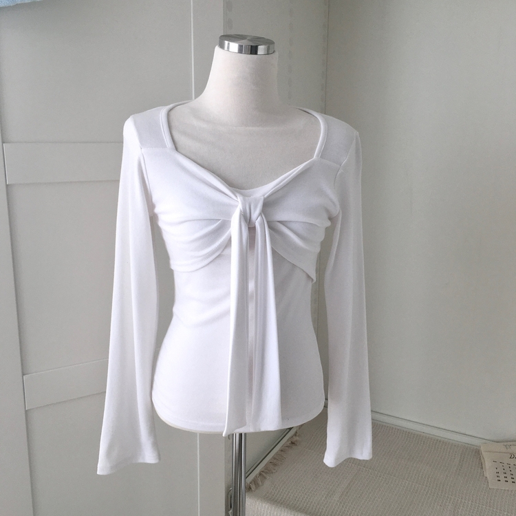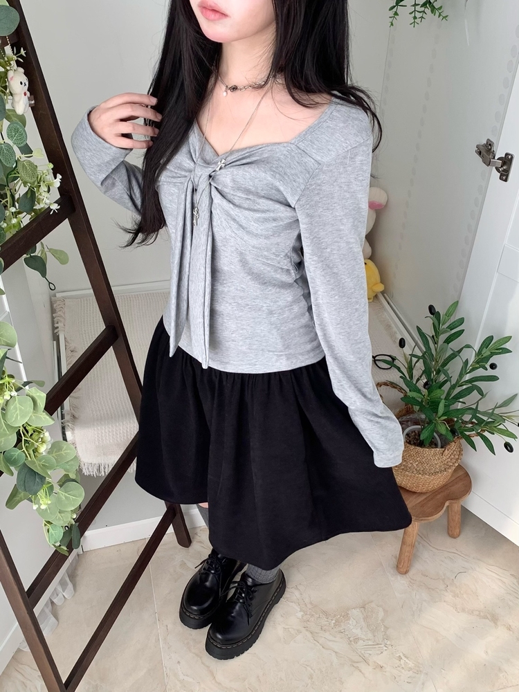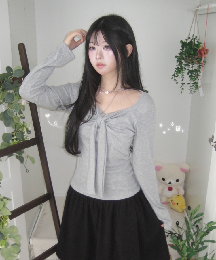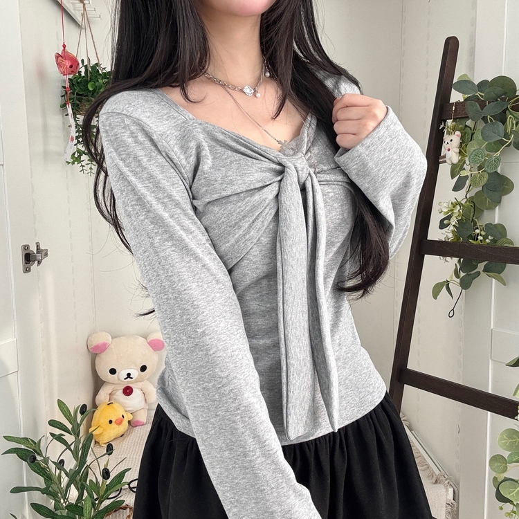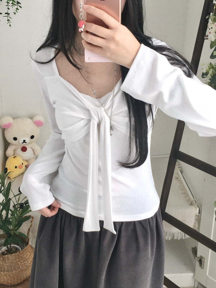 STS242552 슬림핏 리본 긴팔 티셔츠 롱슬리브 스퀘어넥