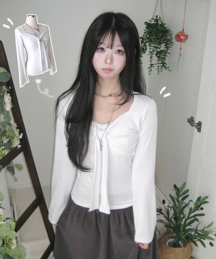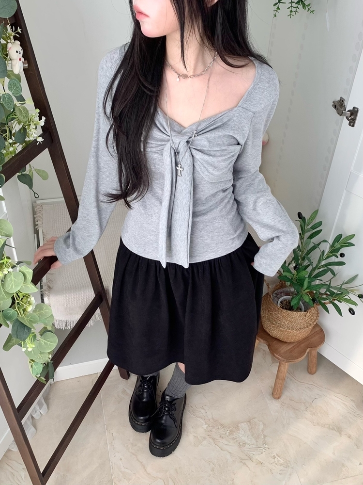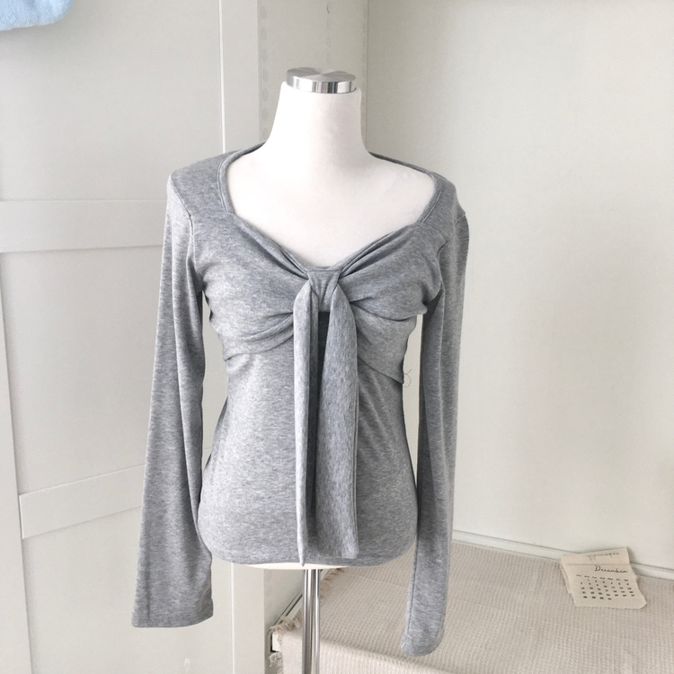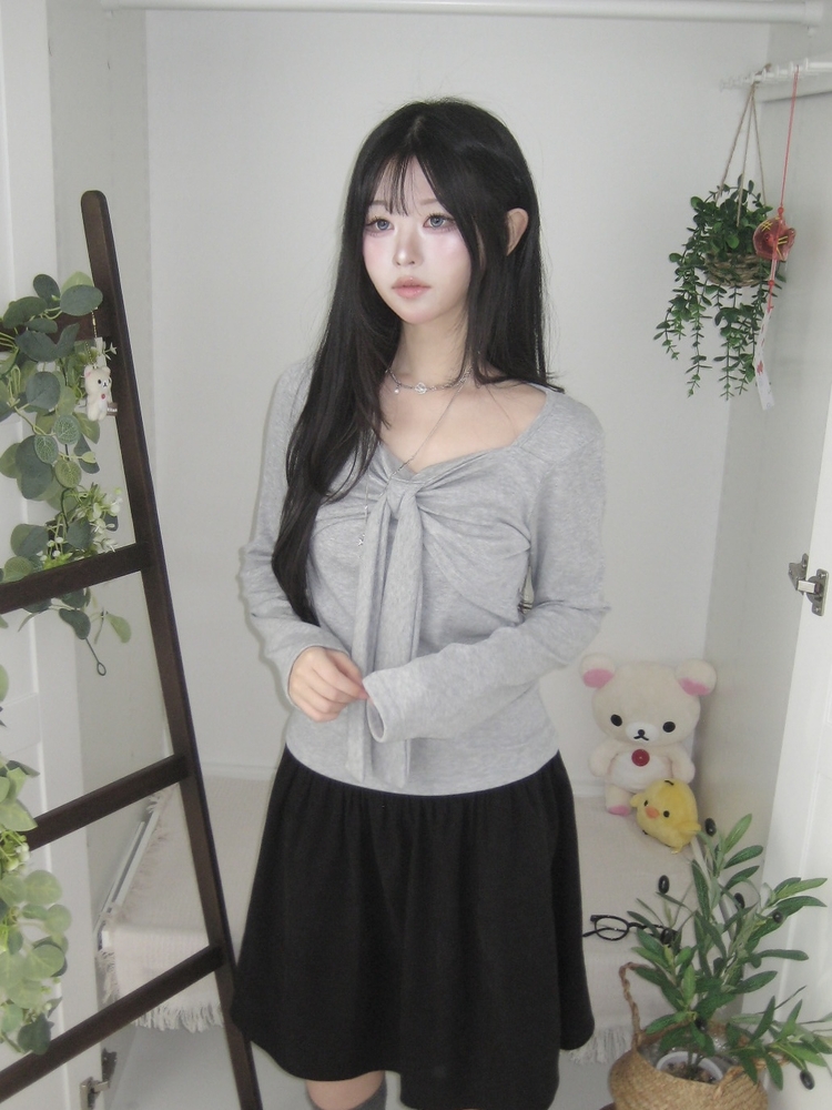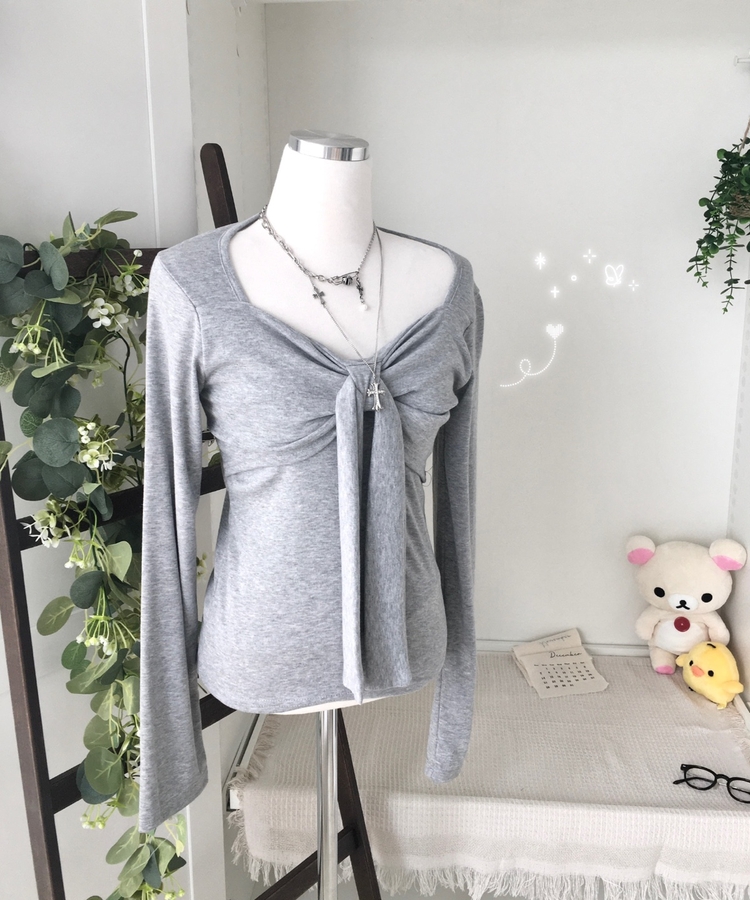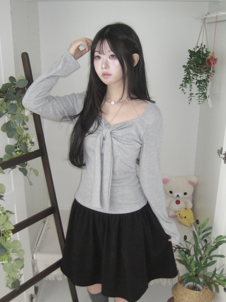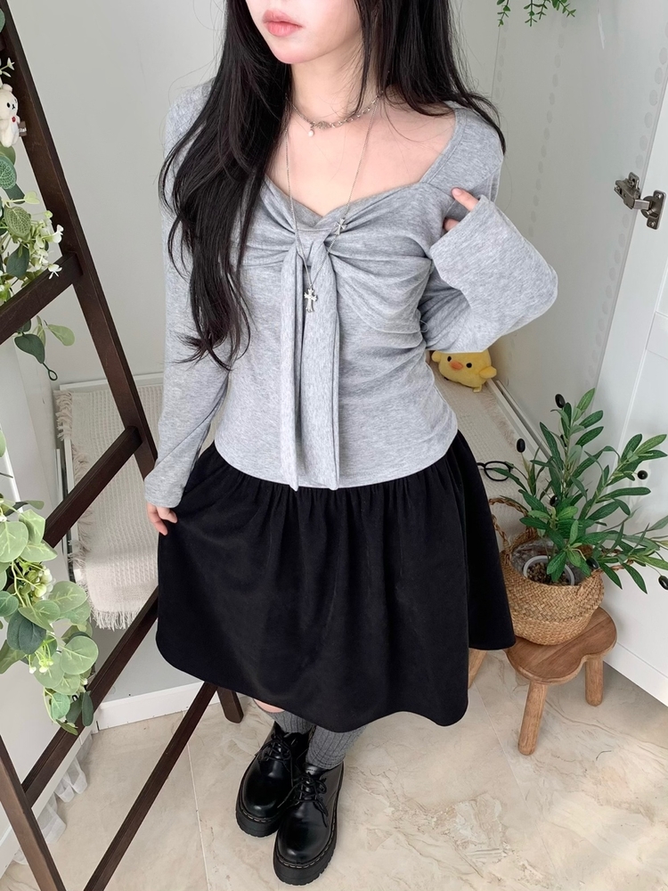 STS242552 슬림핏 리본 긴팔 티셔츠 롱슬리브 스퀘어넥