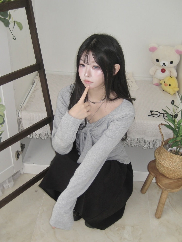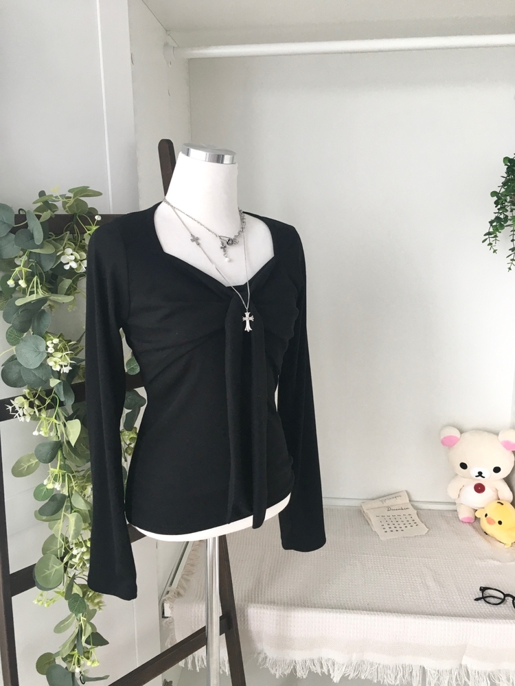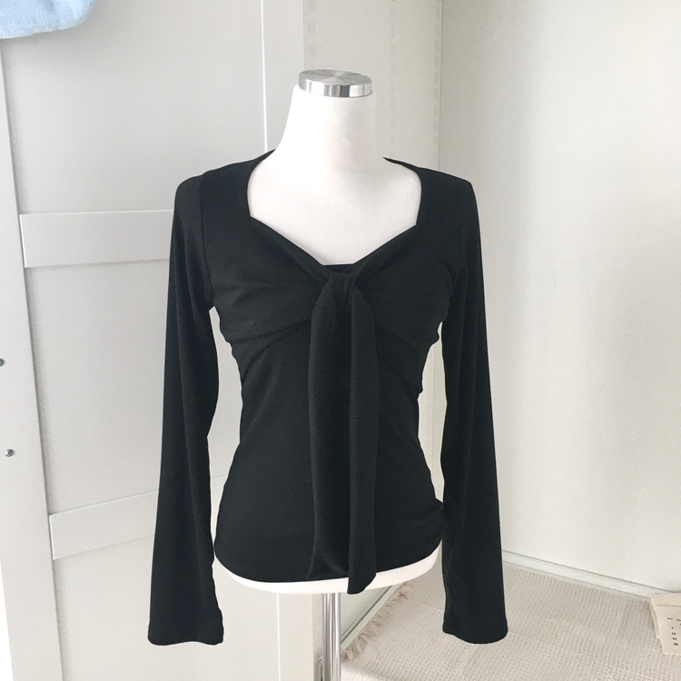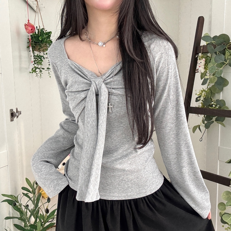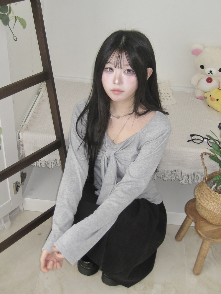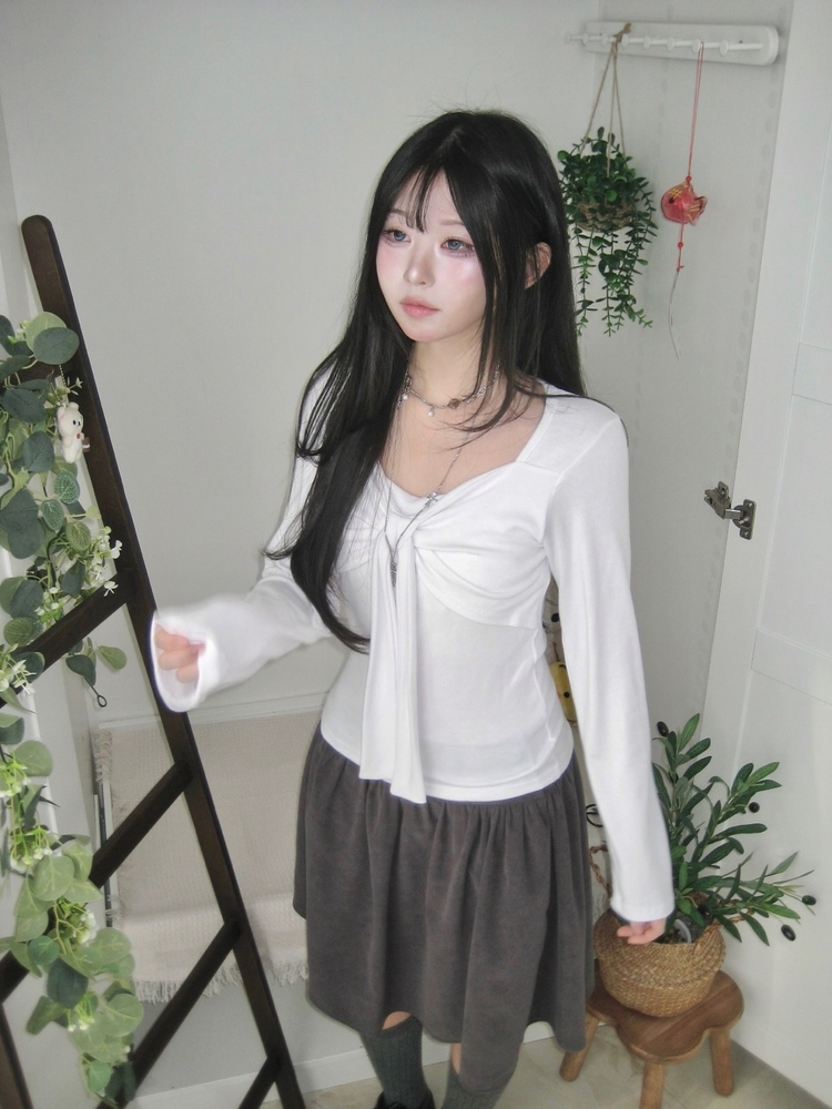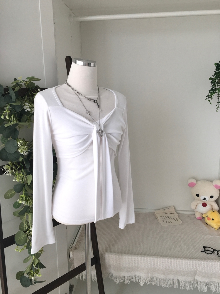 STS242552 슬림핏 리본 긴팔 티셔츠 롱슬리브 스퀘어넥