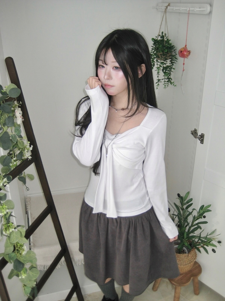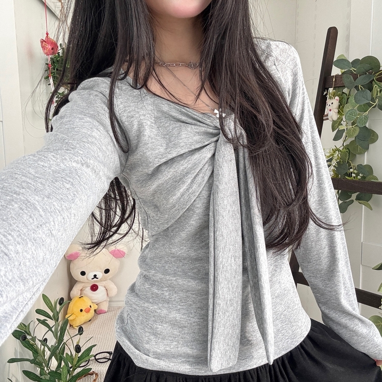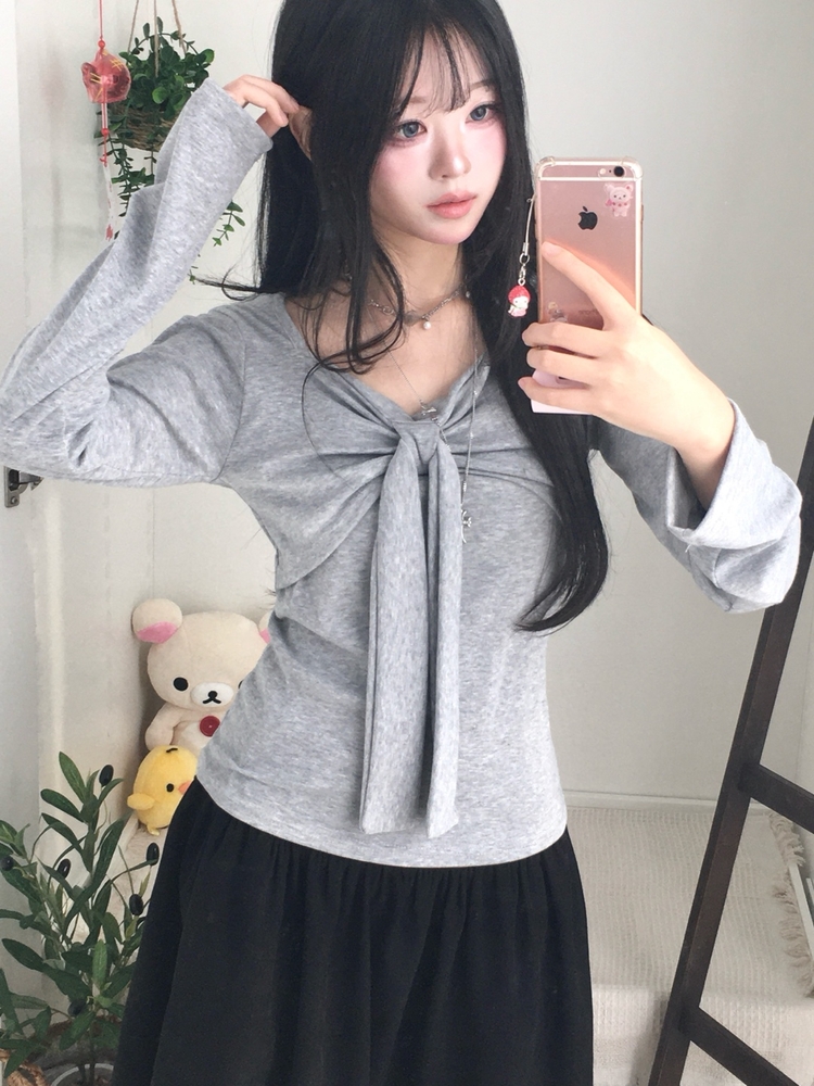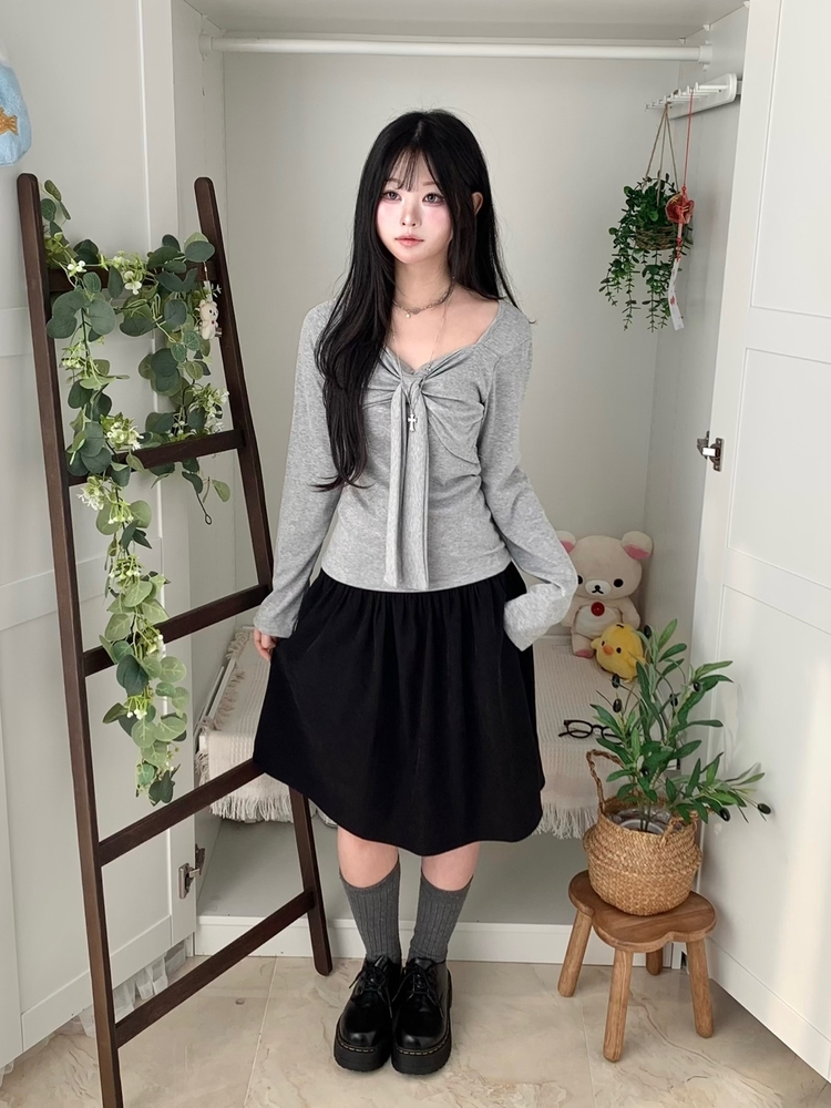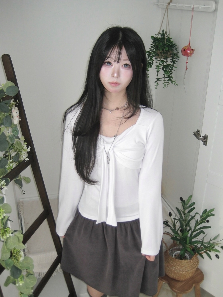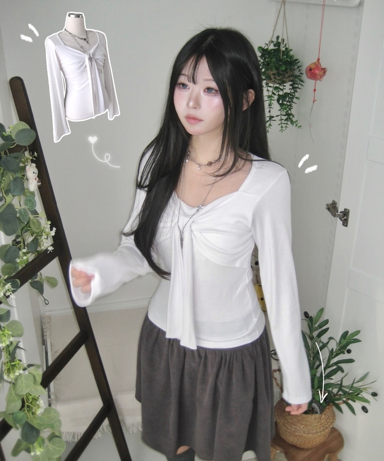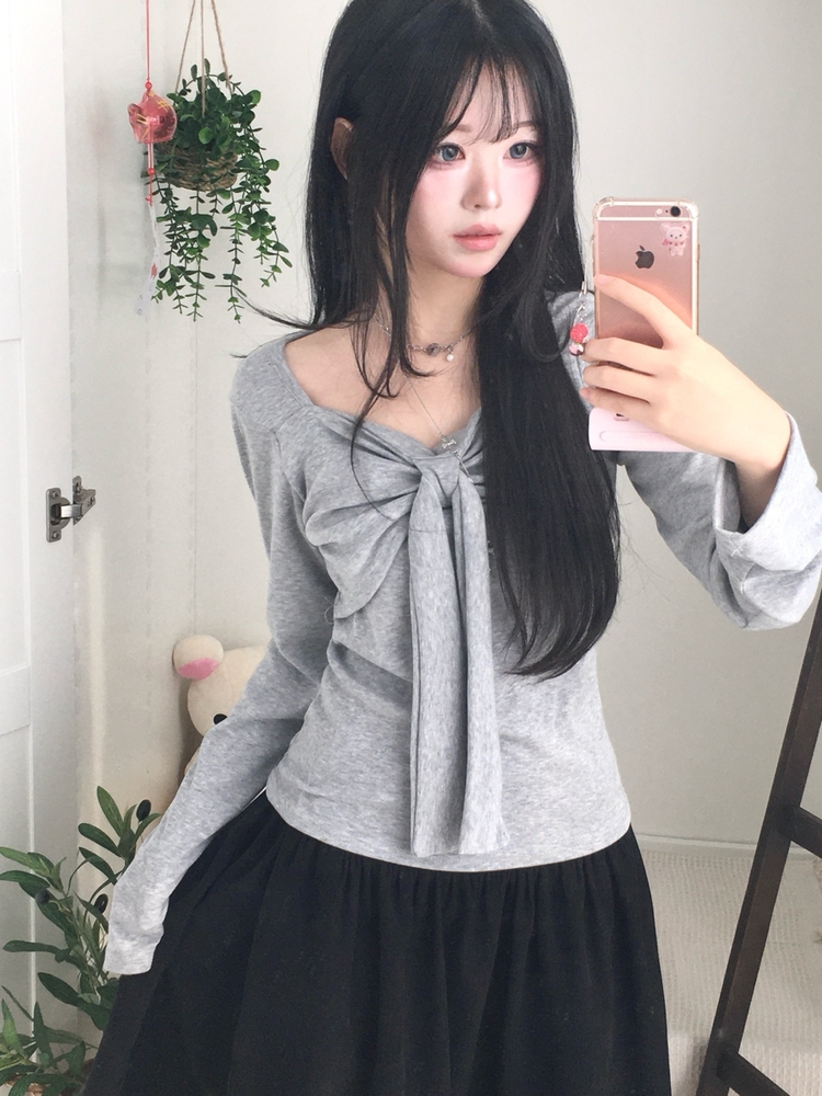 STS242552 슬림핏 리본 긴팔 티셔츠 롱슬리브 스퀘어넥