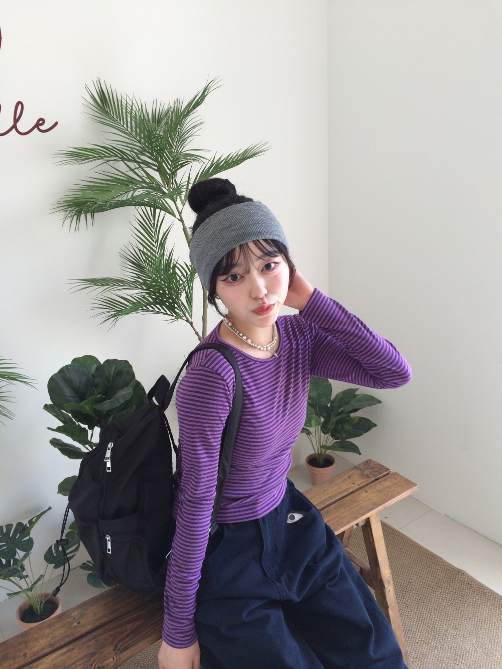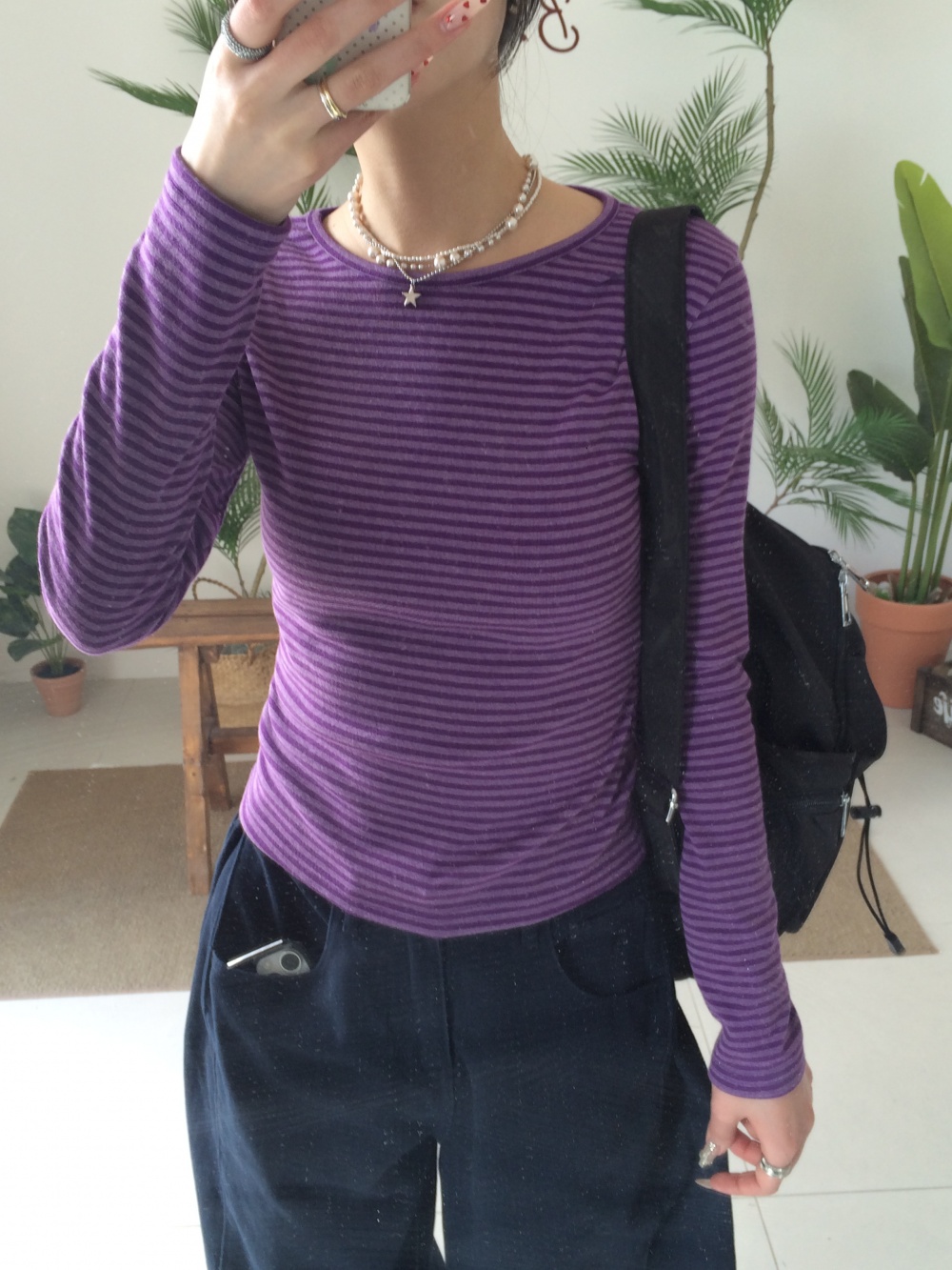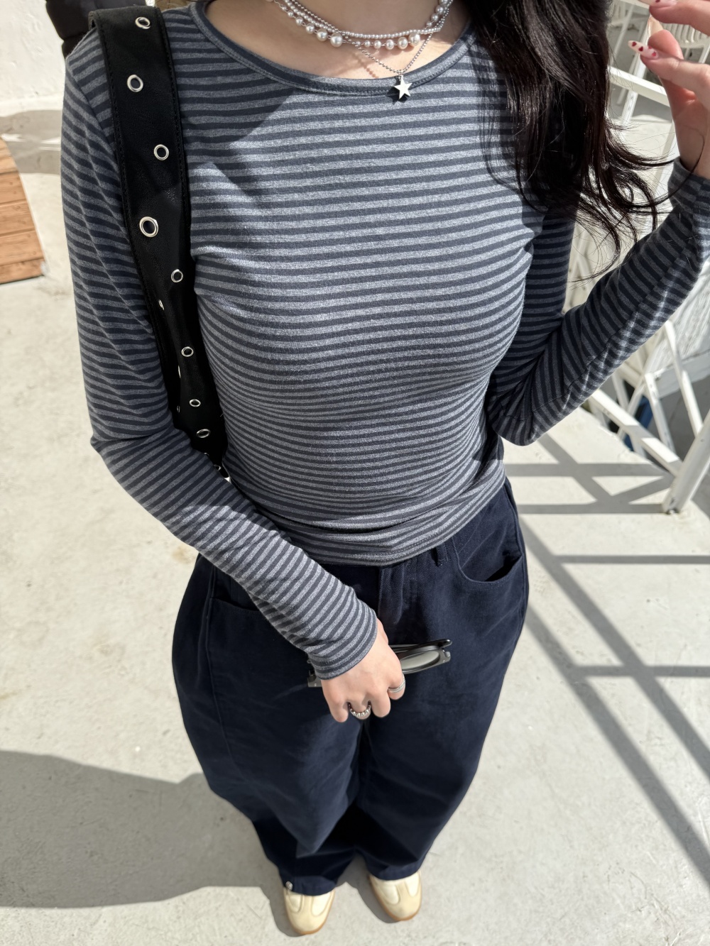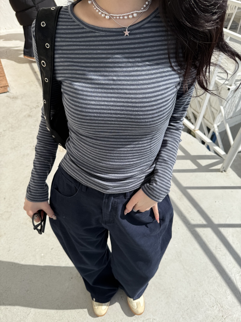 STS242573 【❤️MADE】단가라 무지 긴팔티셔츠