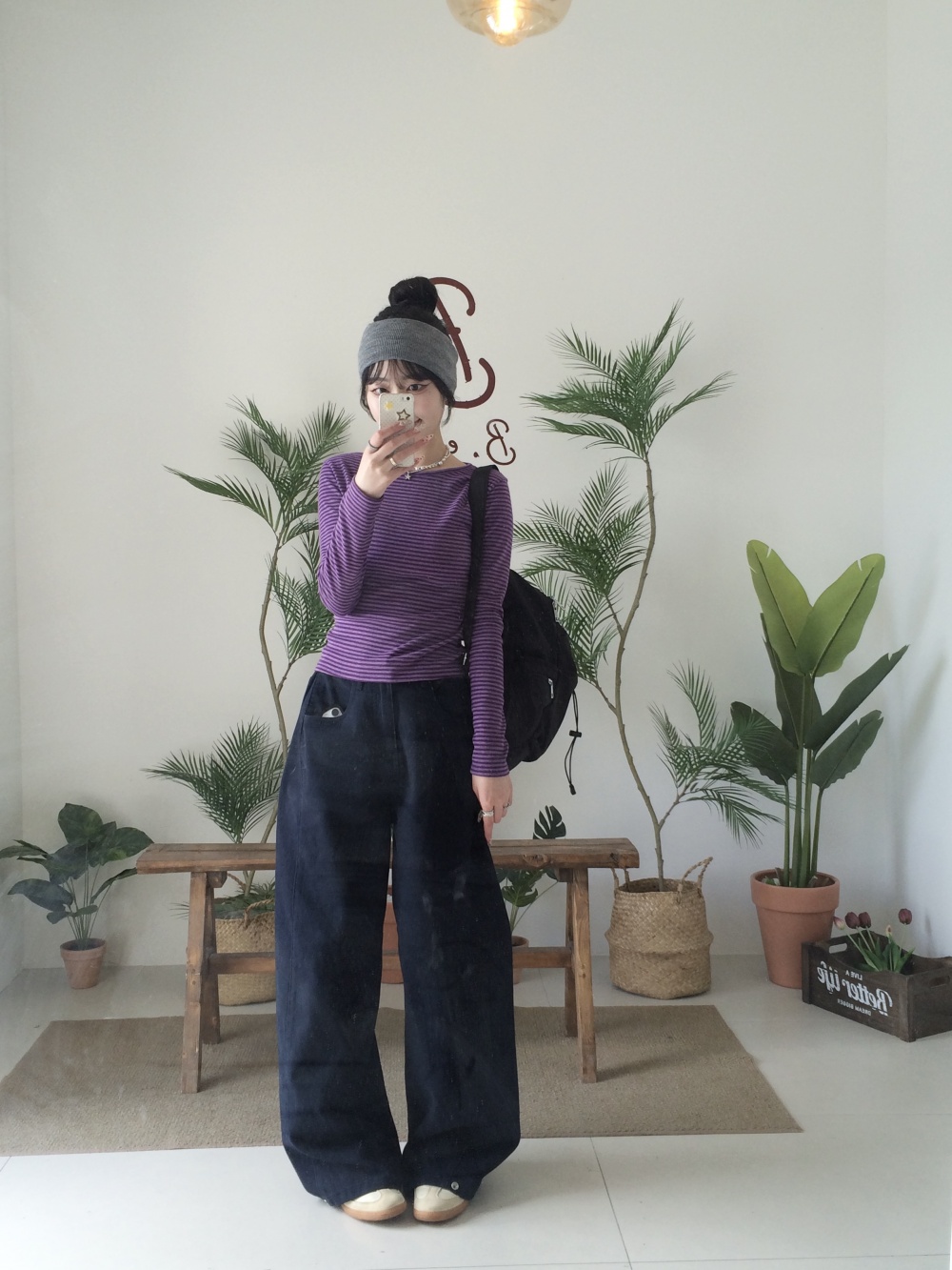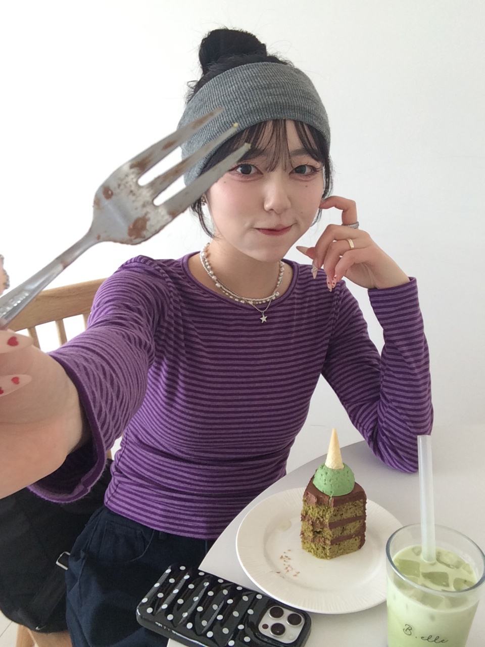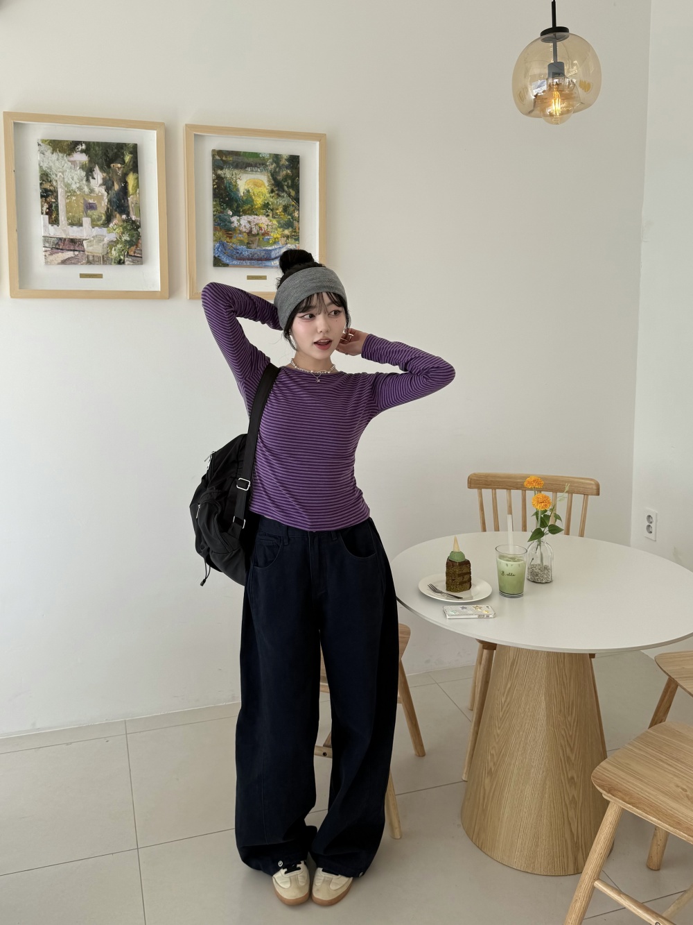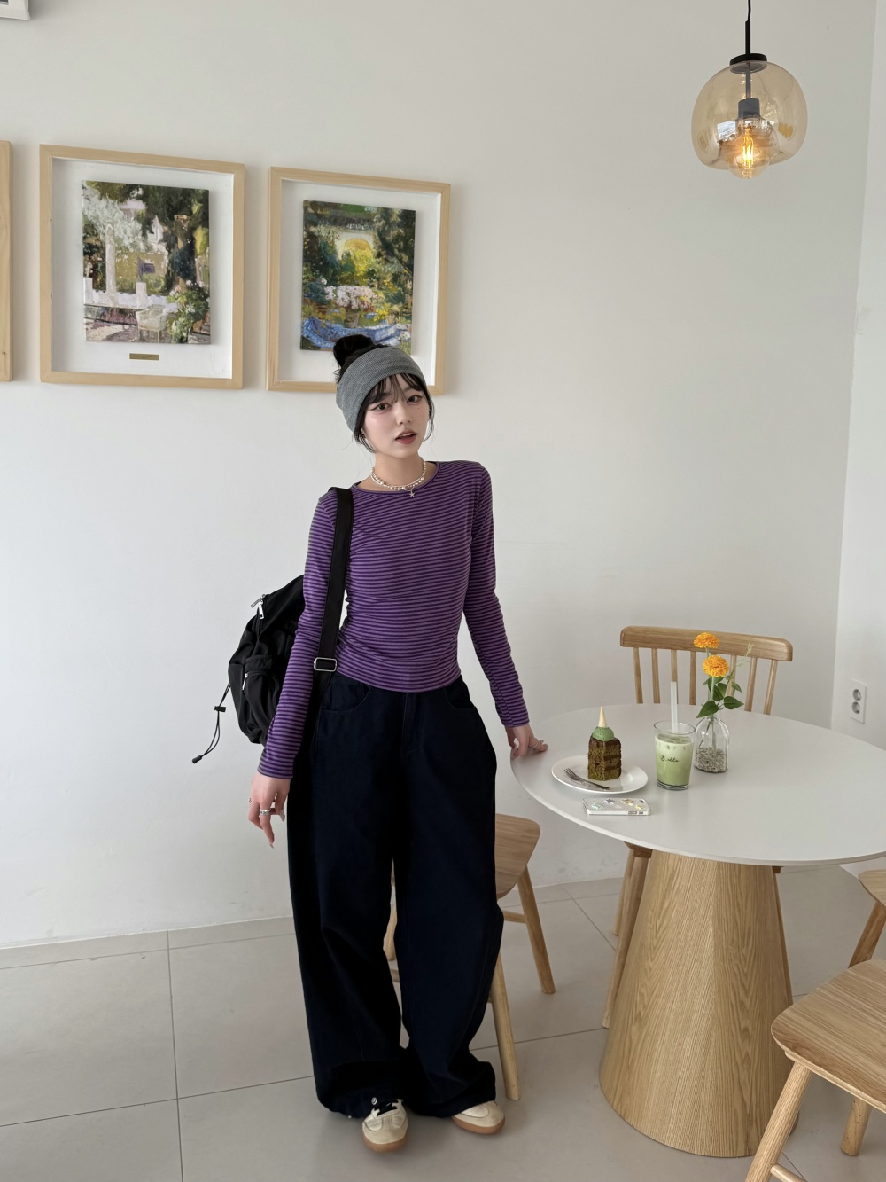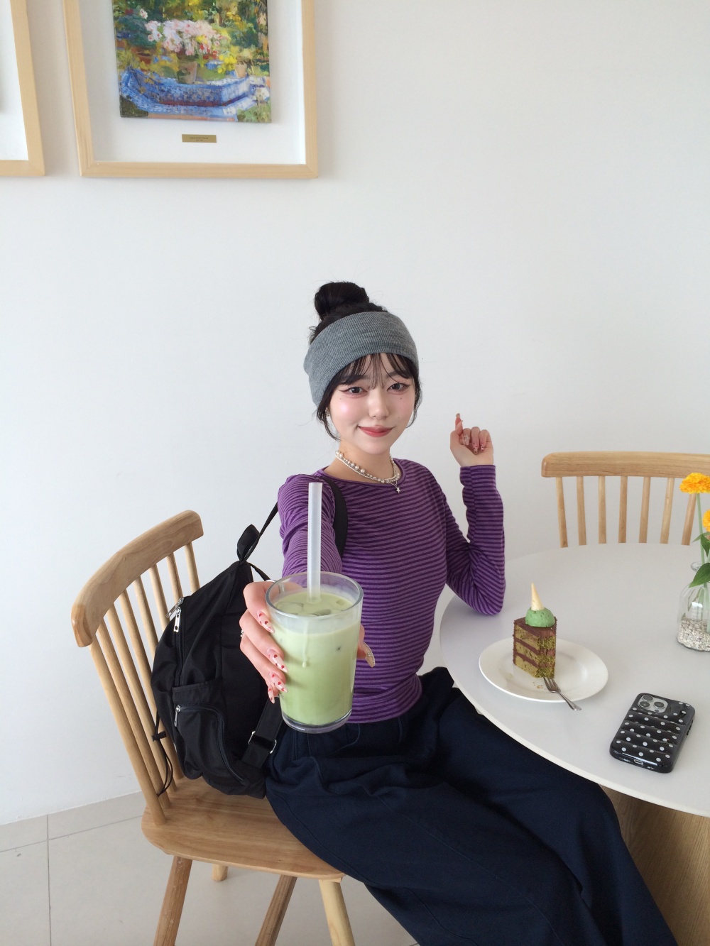 STS242573 【❤️MADE】단가라 무지 긴팔티셔츠