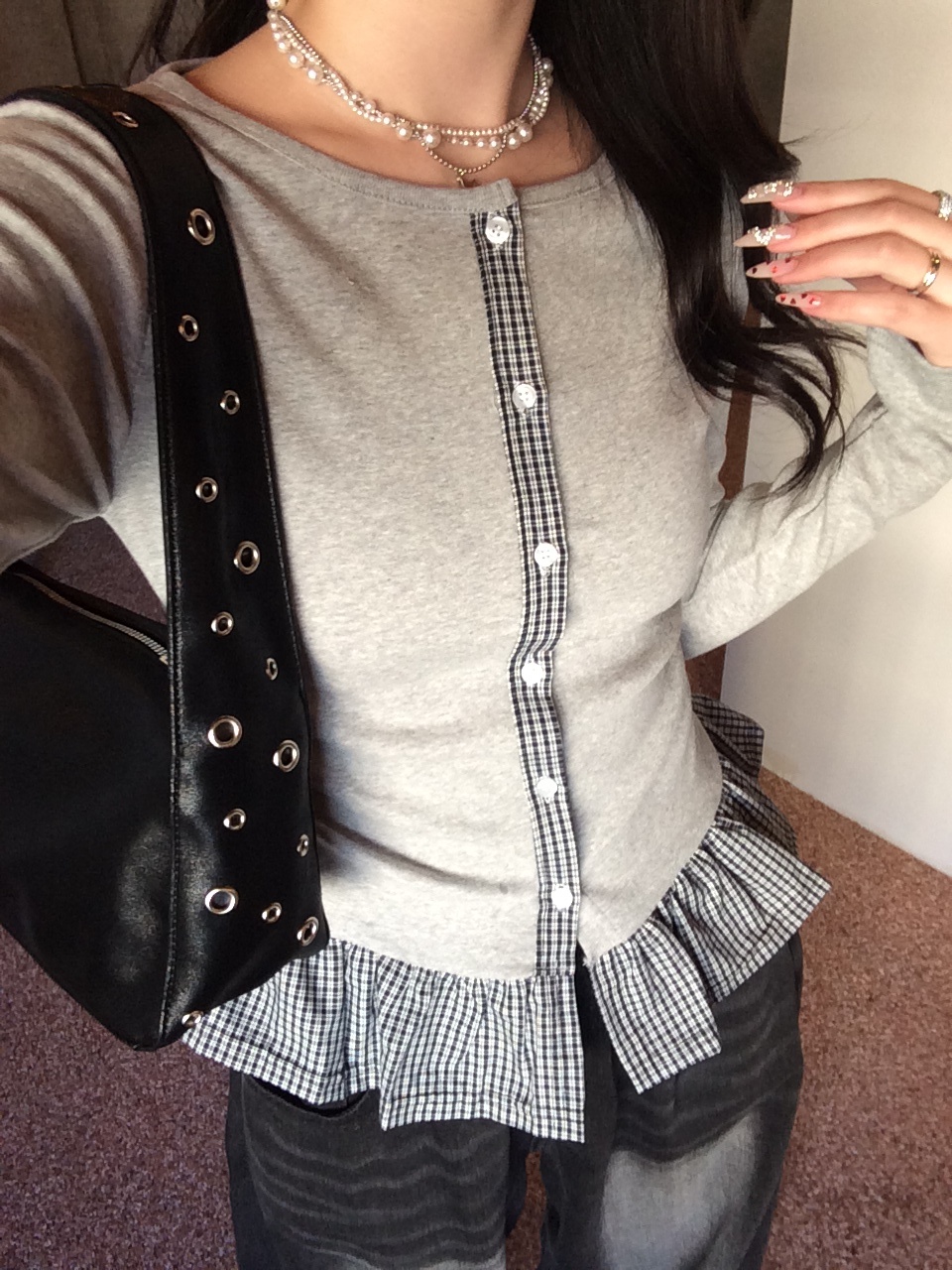 SGD31247 【❤️MADE】체크 프릴 가디건