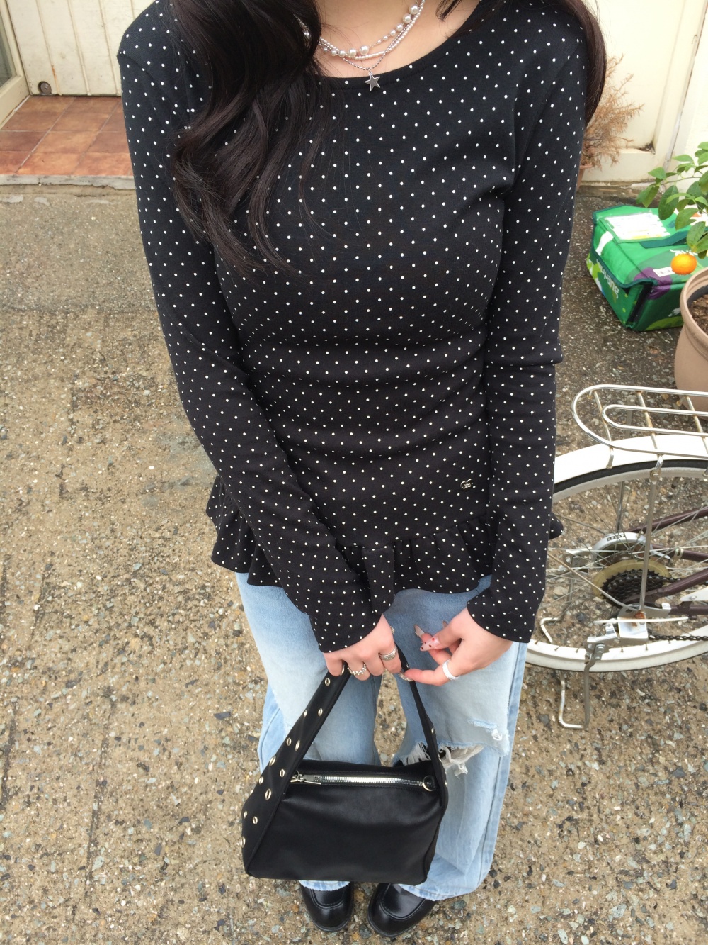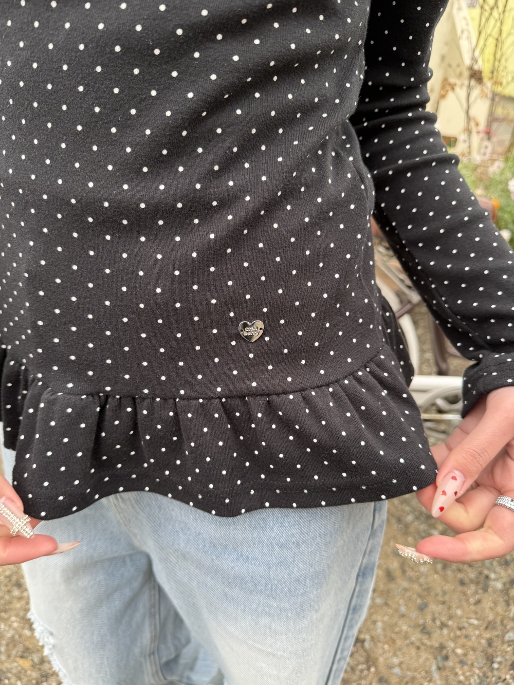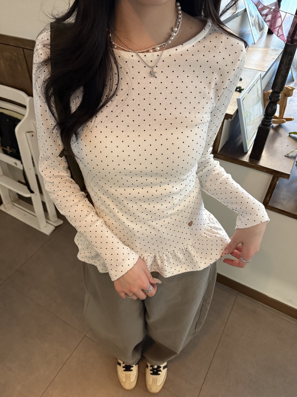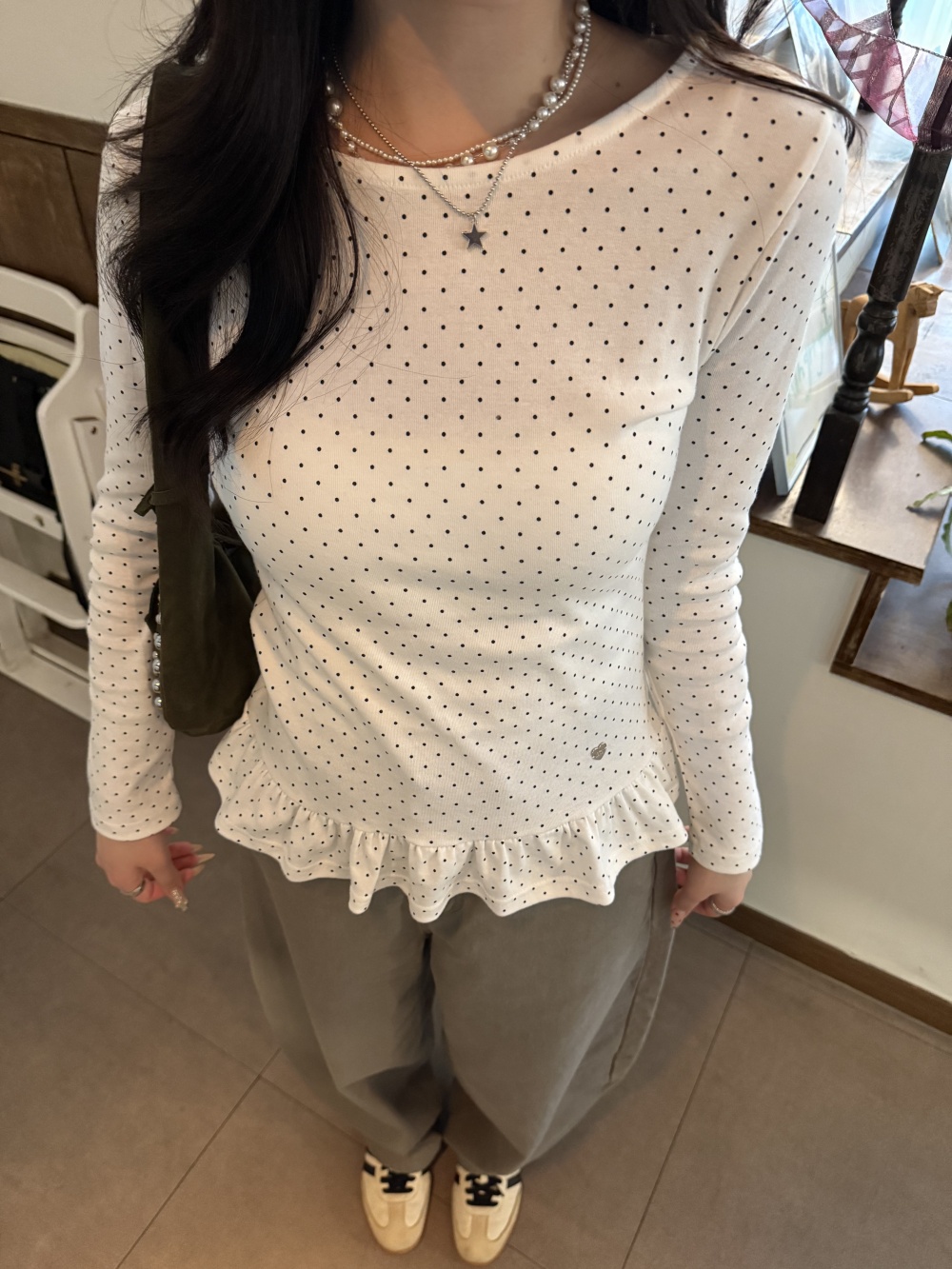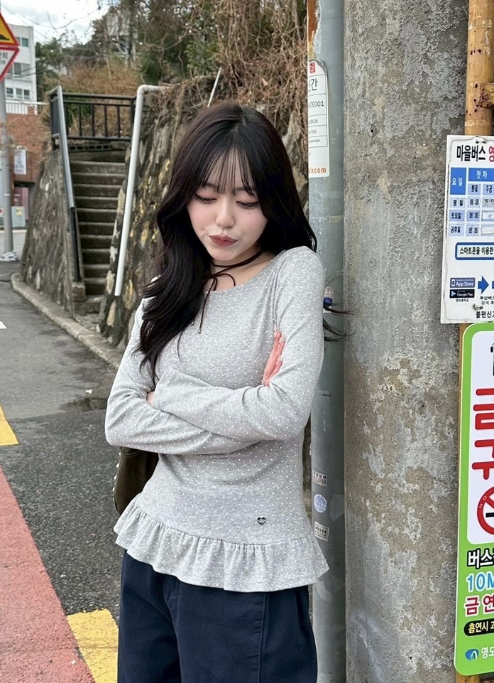 STS242575 【❤️MADE】도트 프릴 긴팔 티셔츠