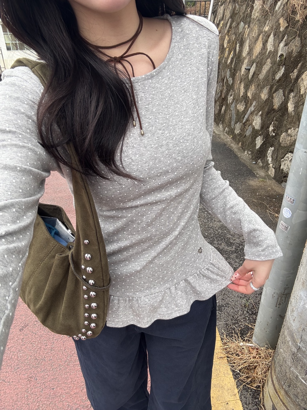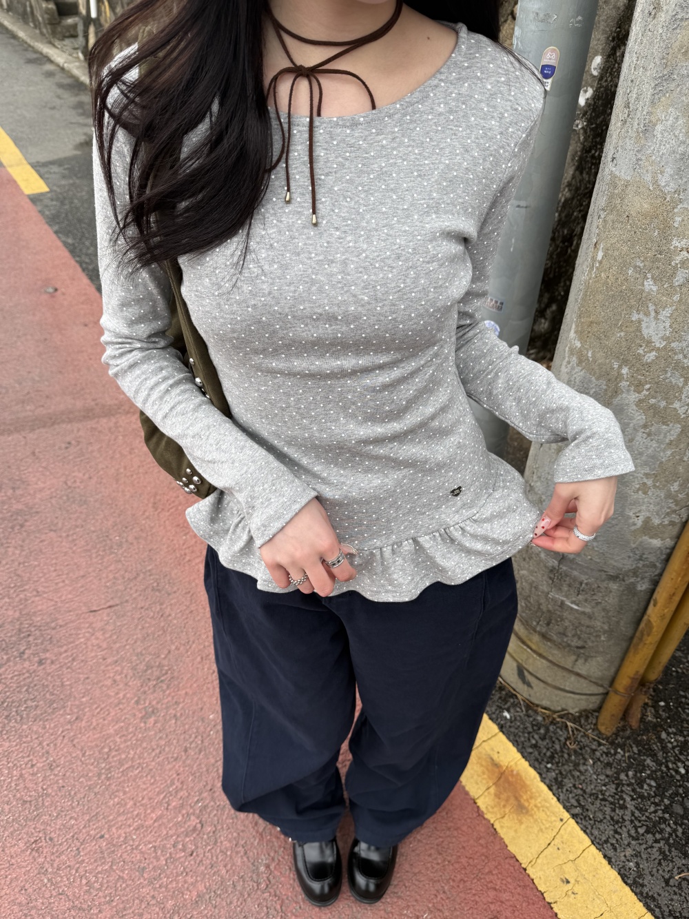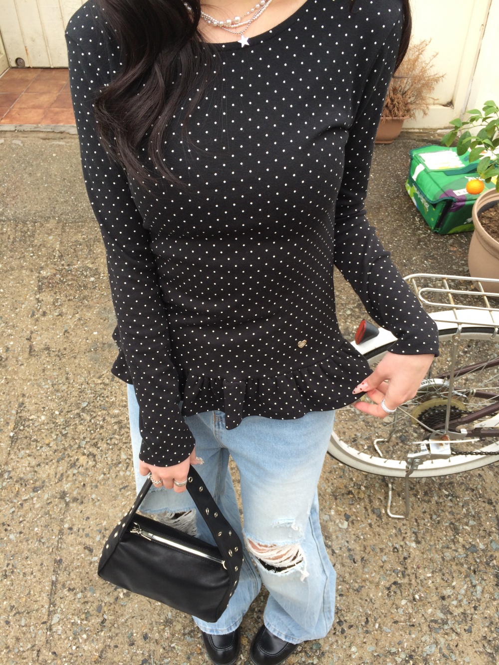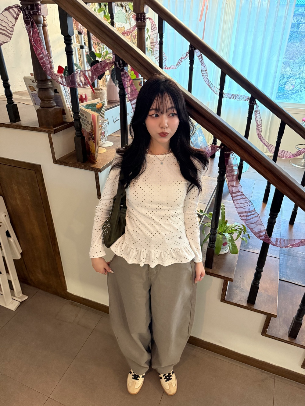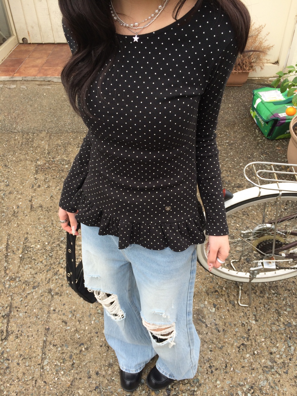 STS242575 【❤️MADE】도트 프릴 긴팔 티셔츠