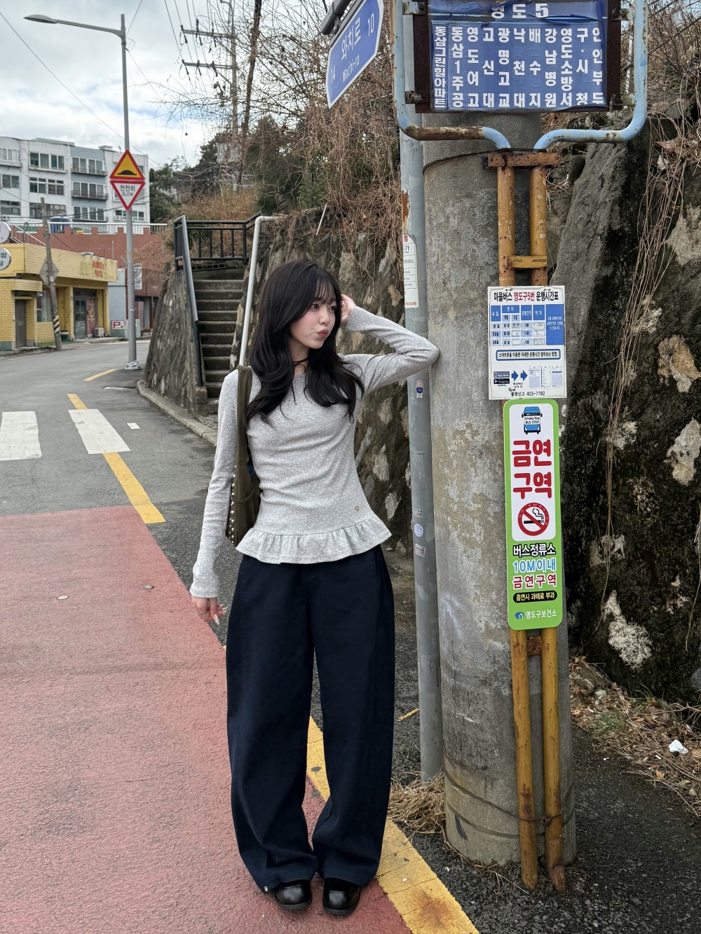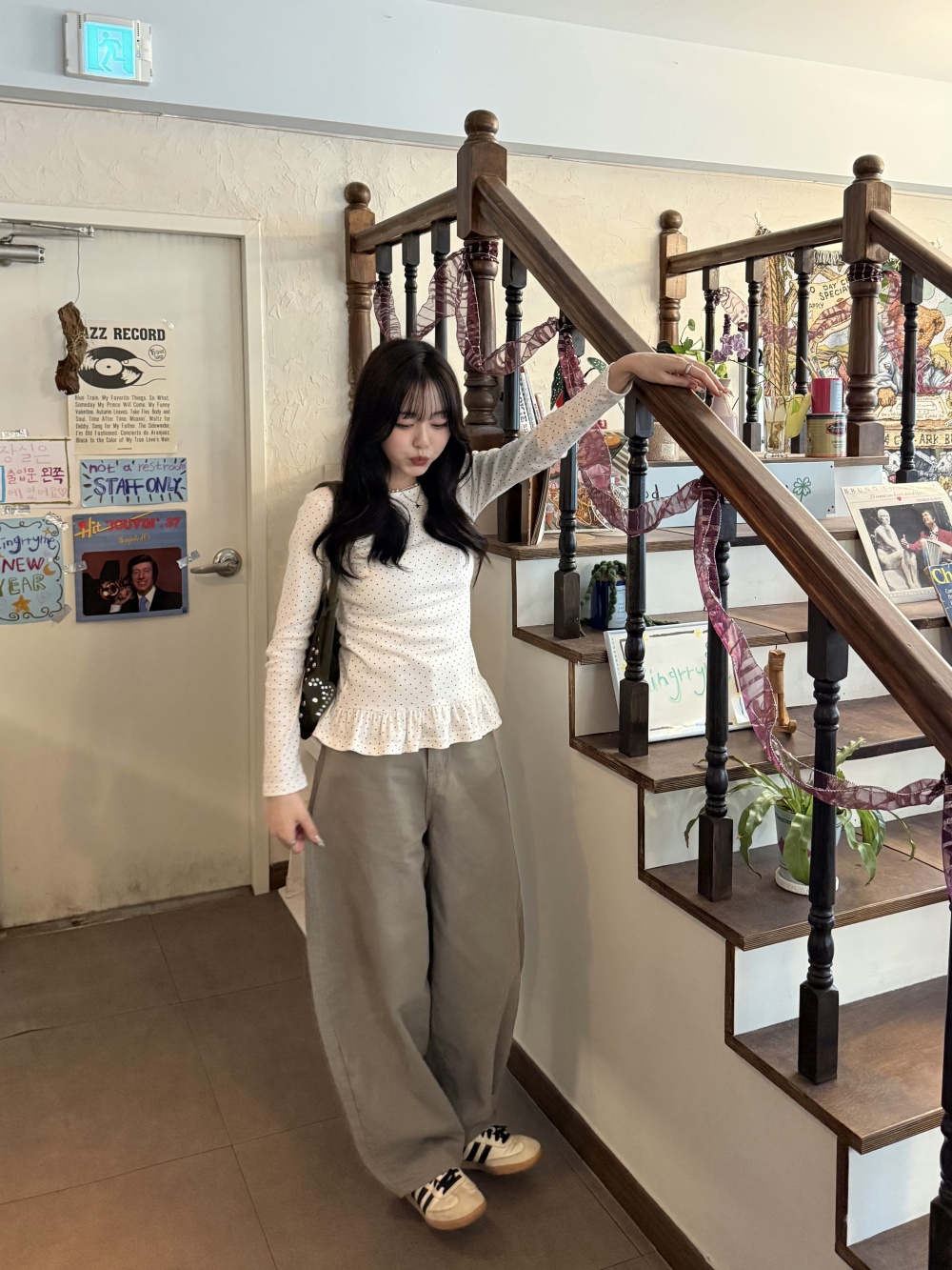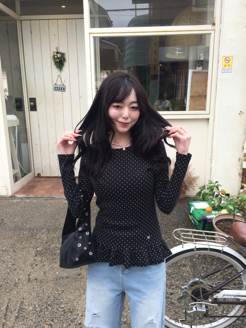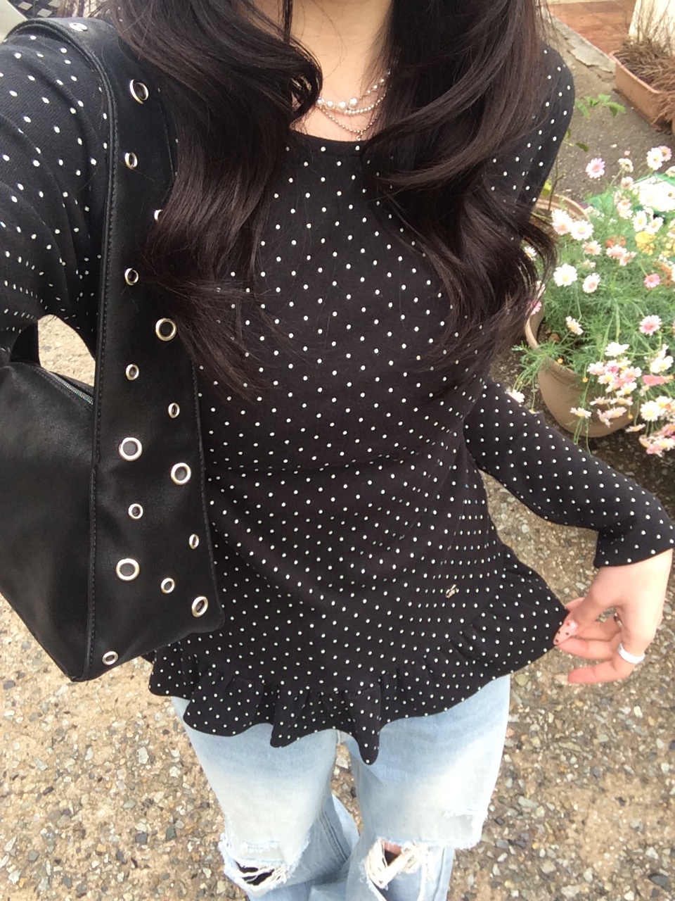 STS242575 【❤️MADE】도트 프릴 긴팔 티셔츠