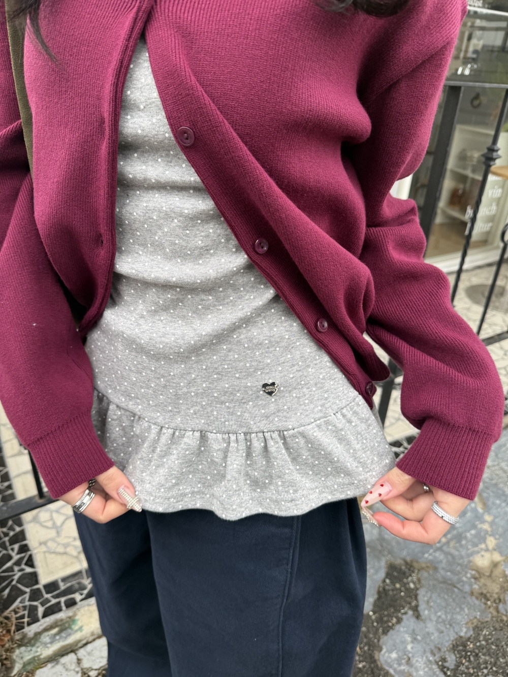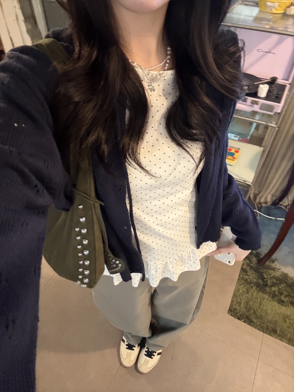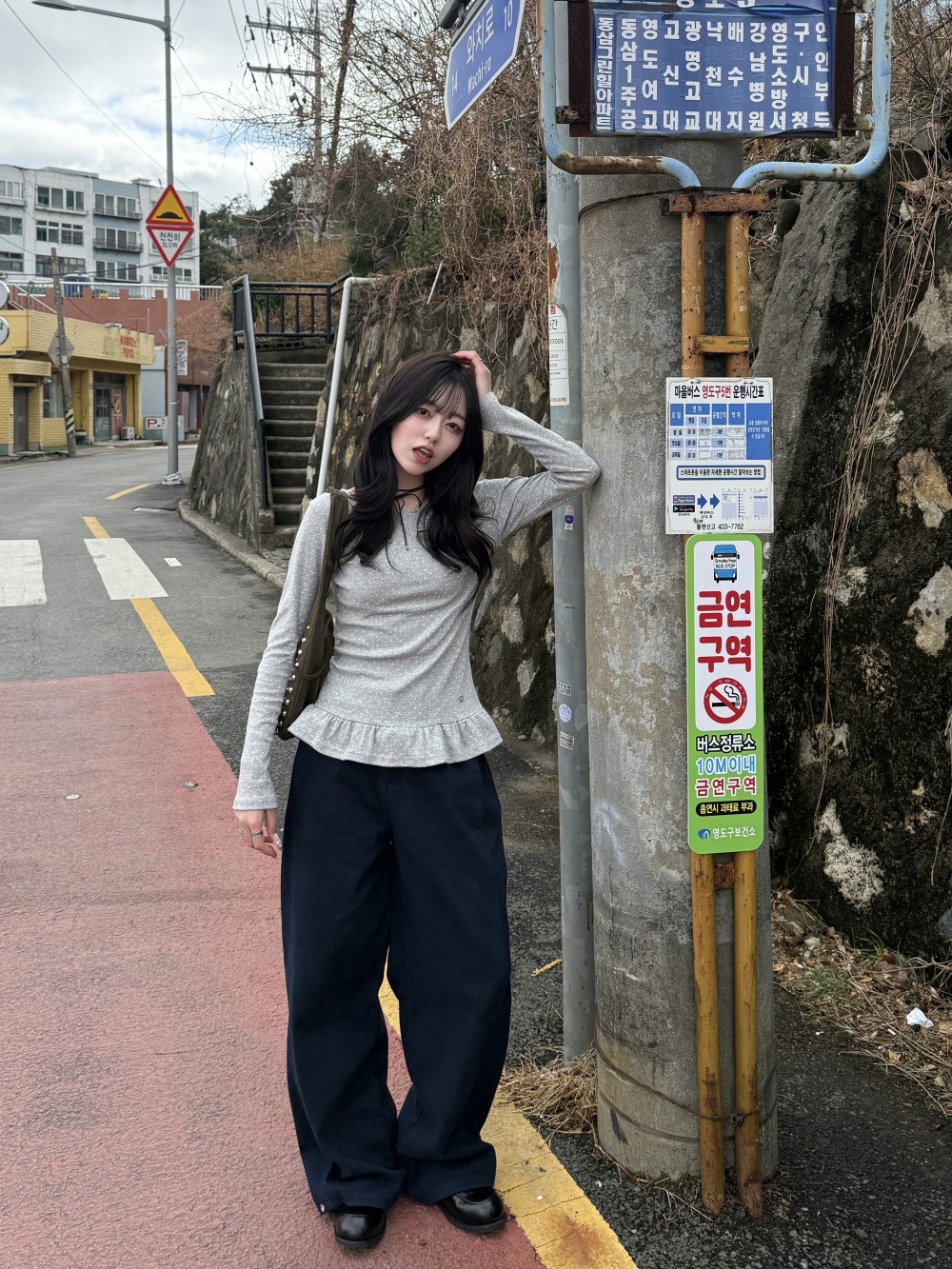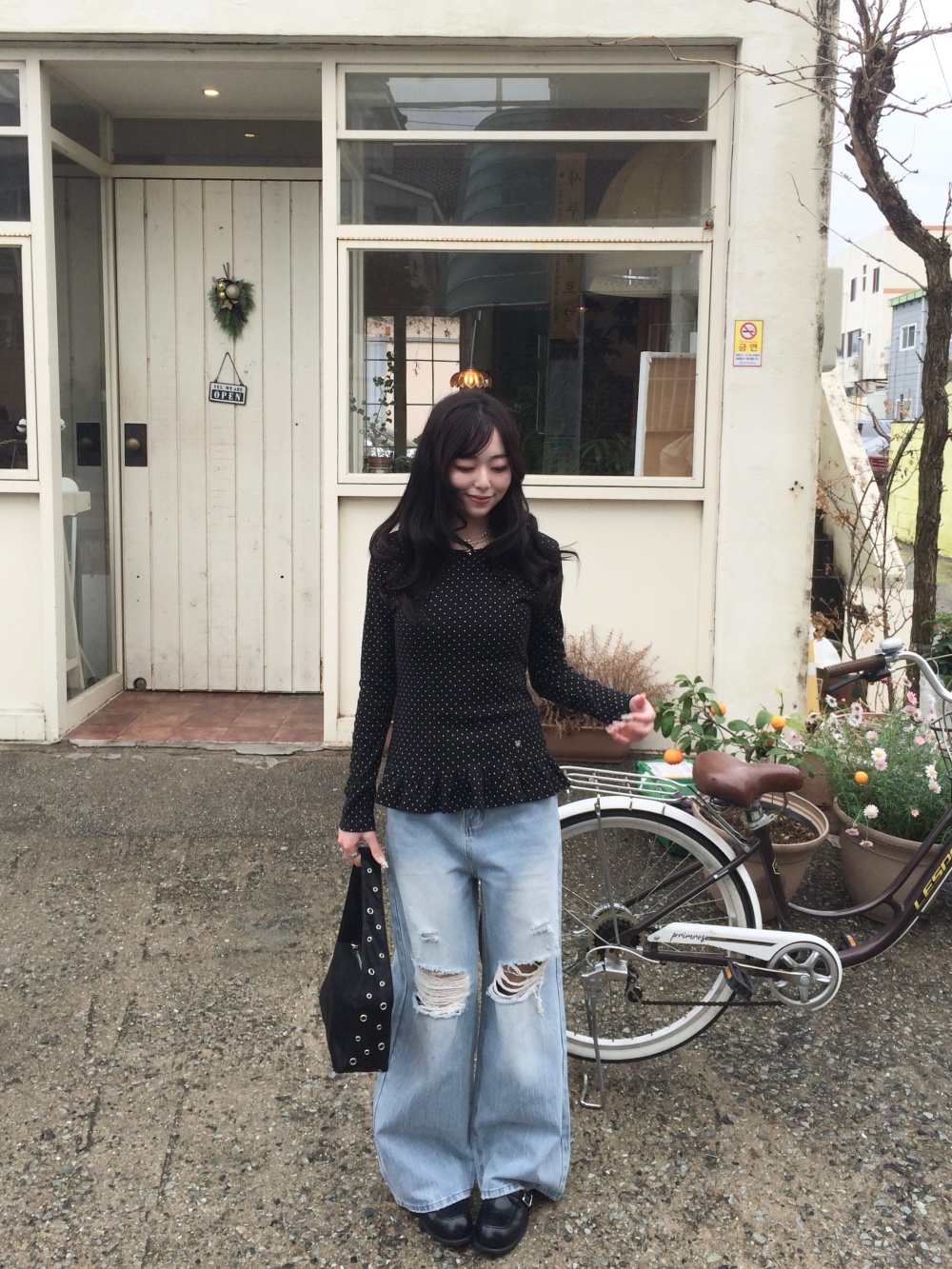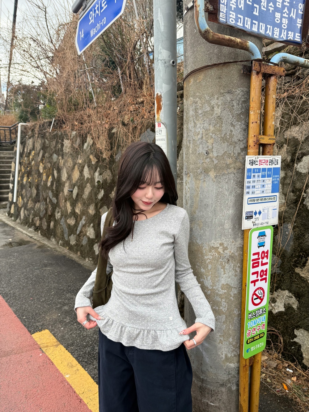 STS242575 【❤️MADE】도트 프릴 긴팔 티셔츠
