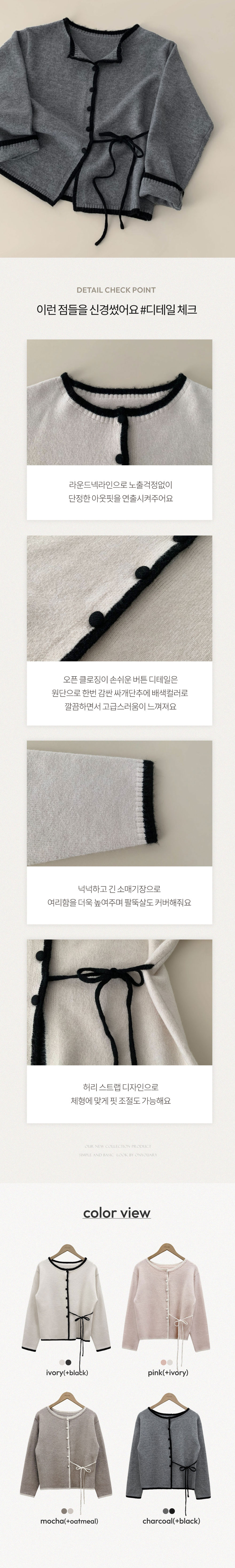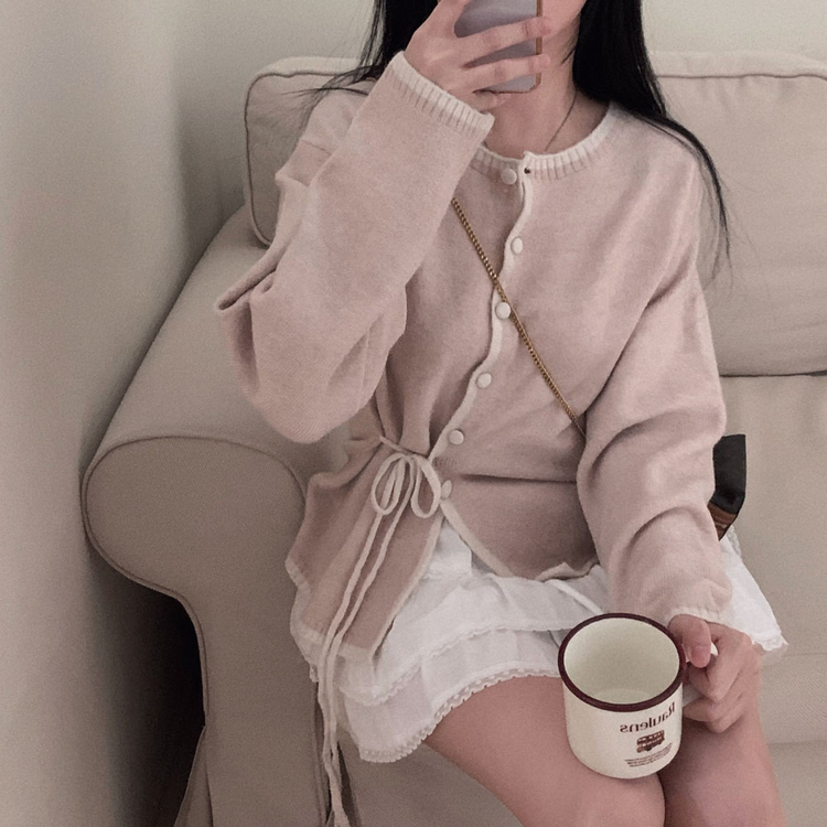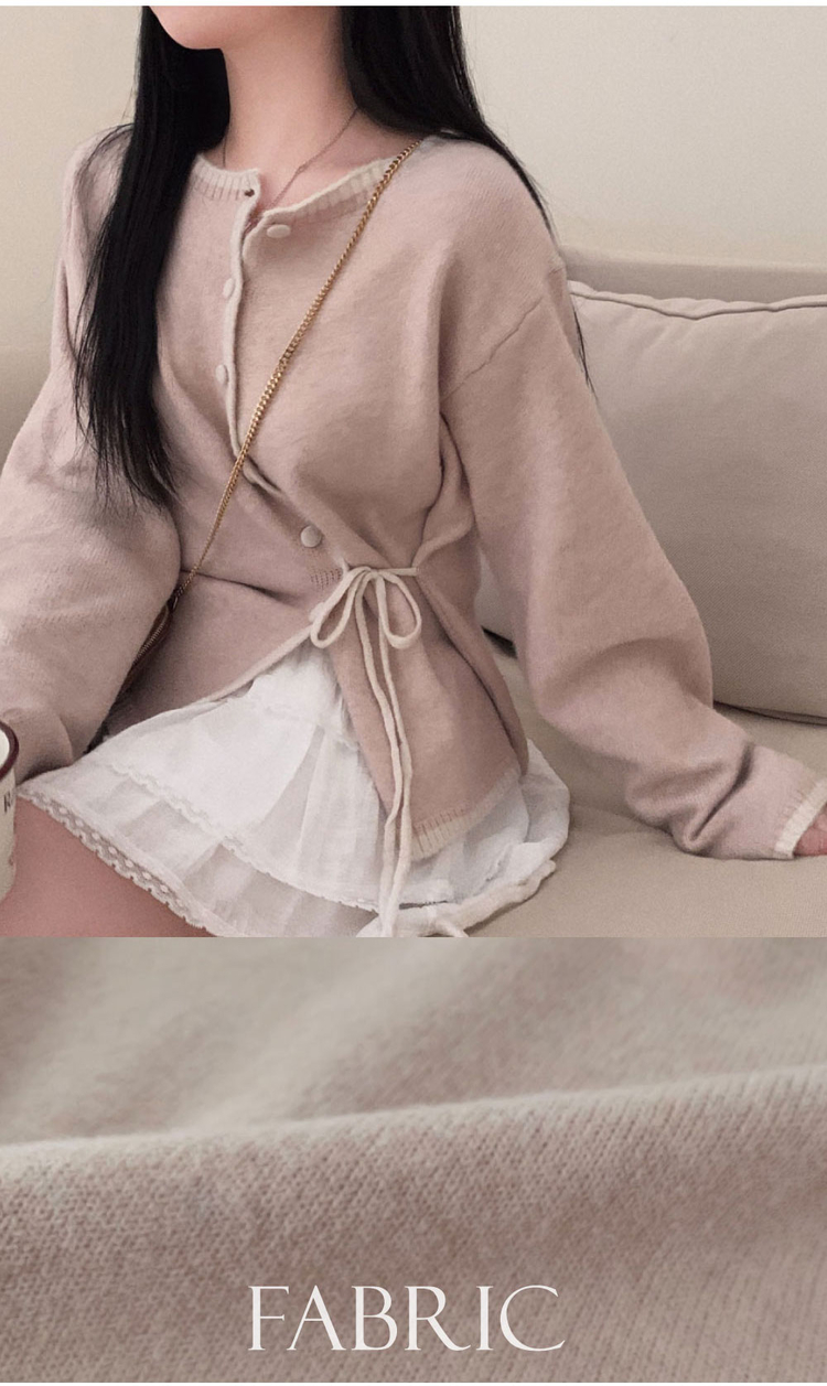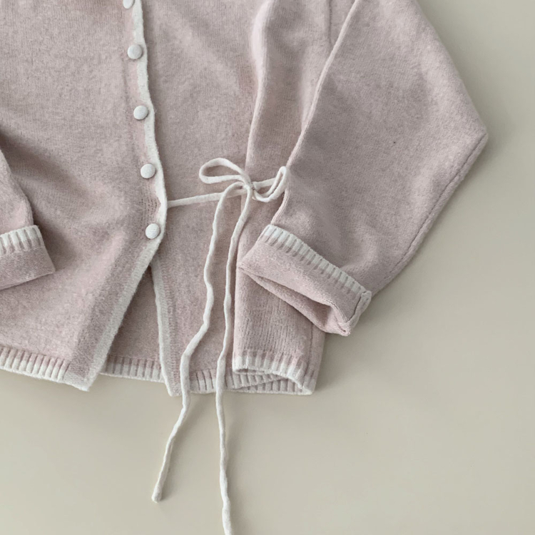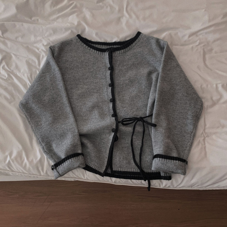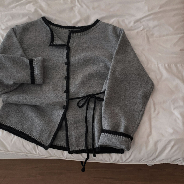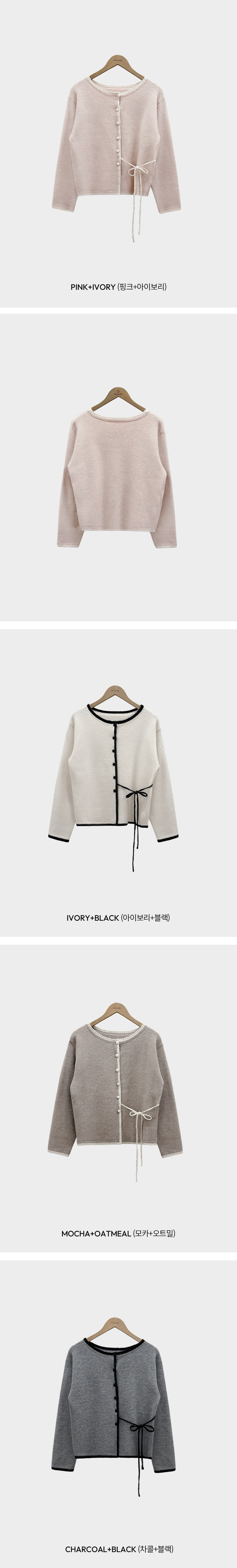 SGD31270 사랑스러운 포인트바닐라 리본 스트랩 루즈핏 배색 니트 가디건