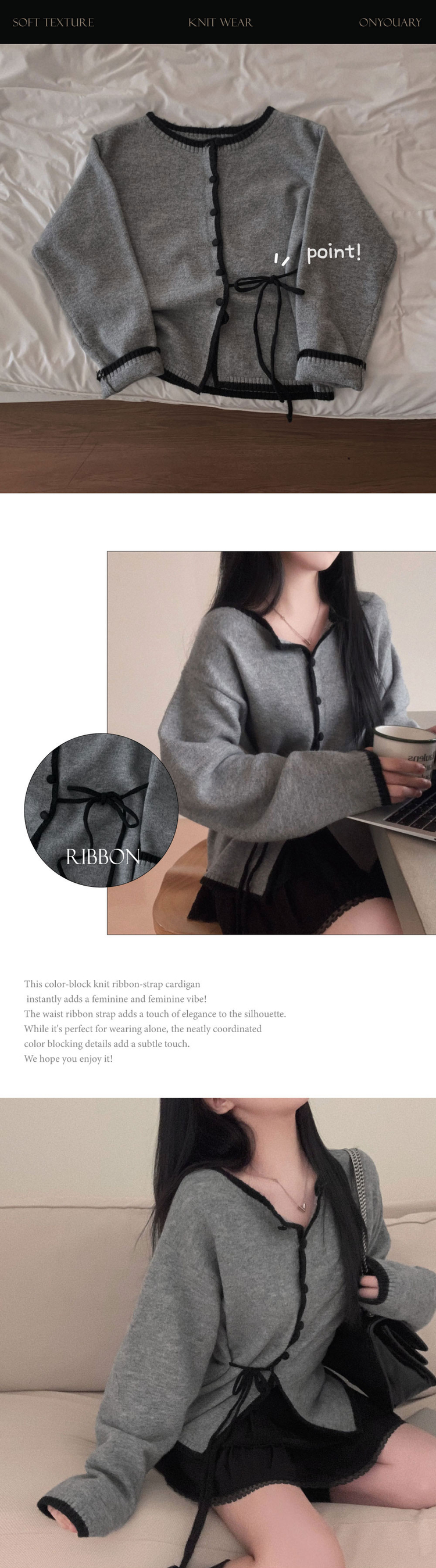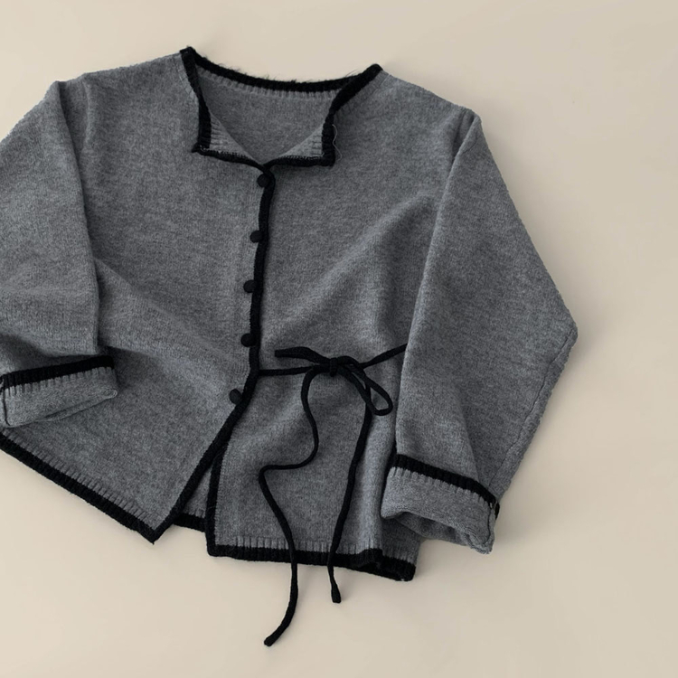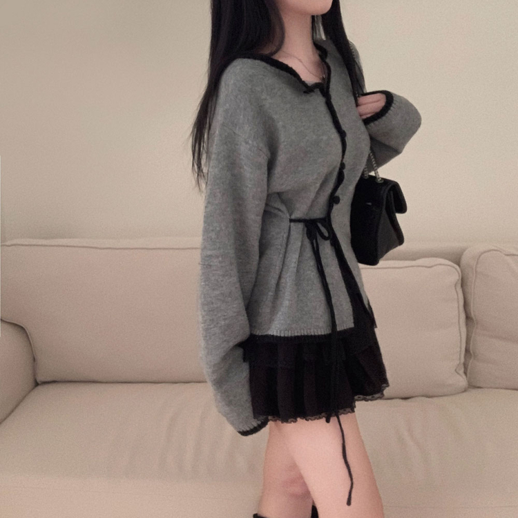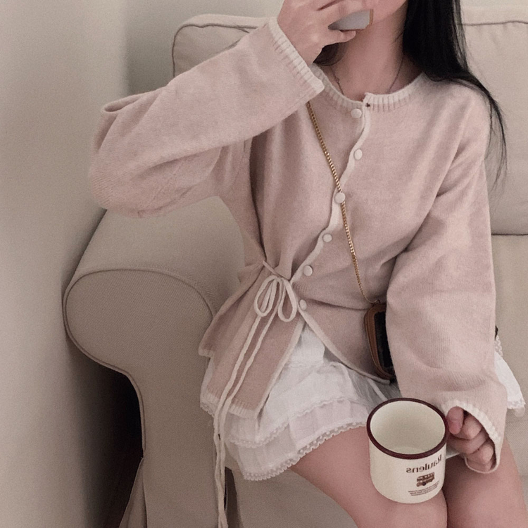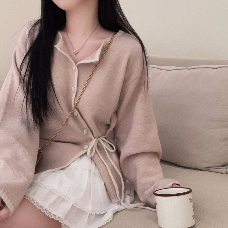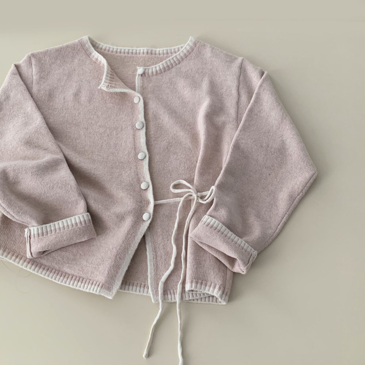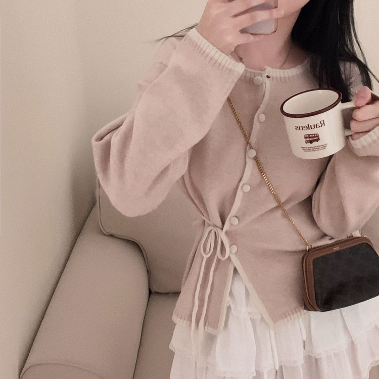 SGD31270 사랑스러운 포인트바닐라 리본 스트랩 루즈핏 배색 니트 가디건