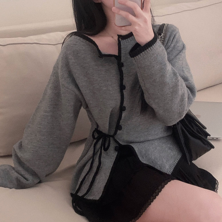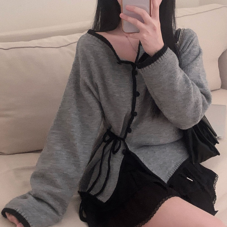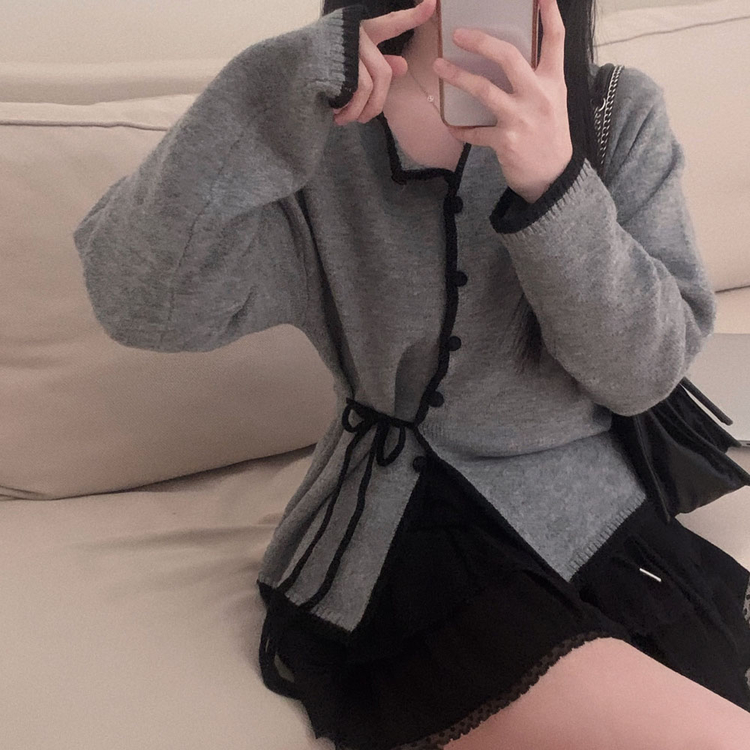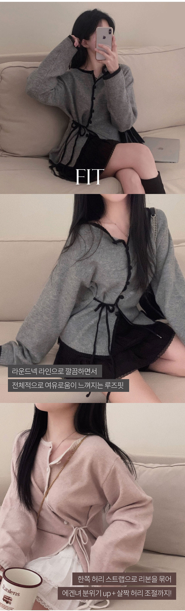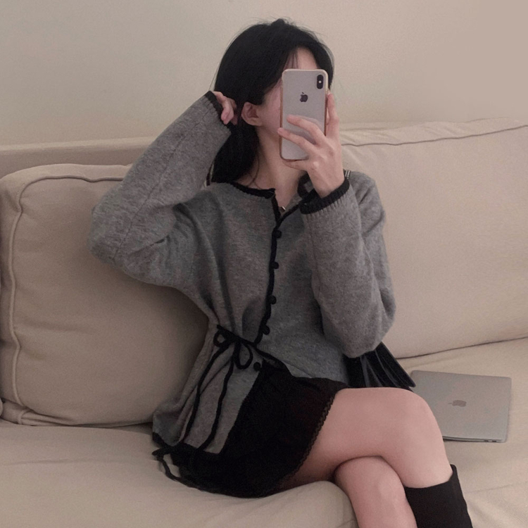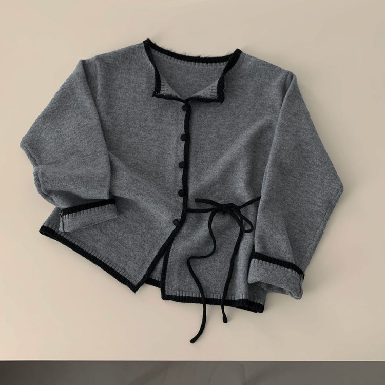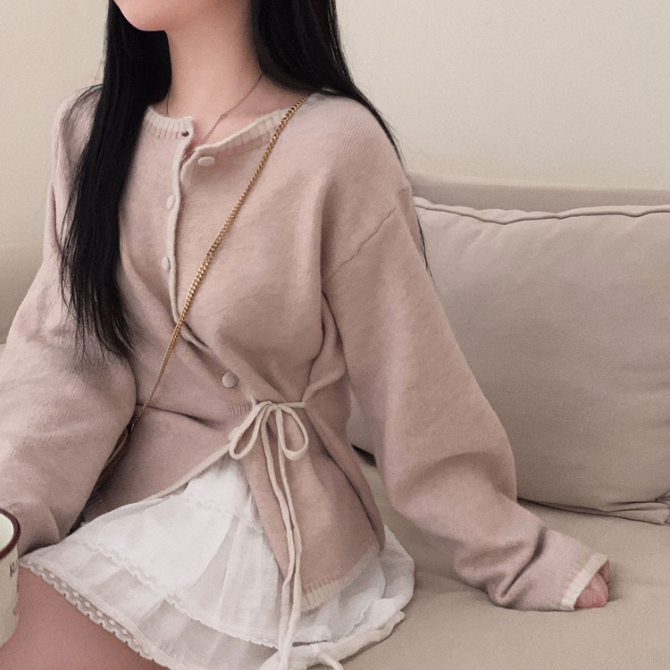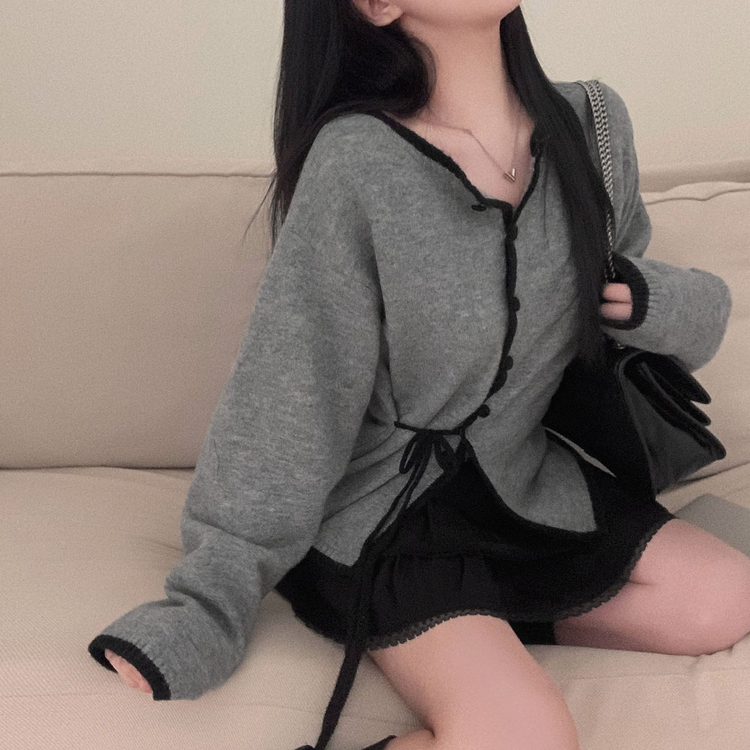 SGD31270 사랑스러운 포인트바닐라 리본 스트랩 루즈핏 배색 니트 가디건