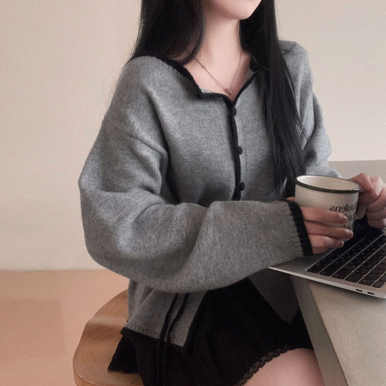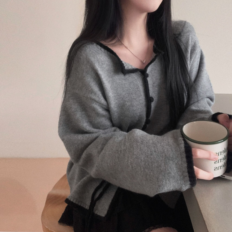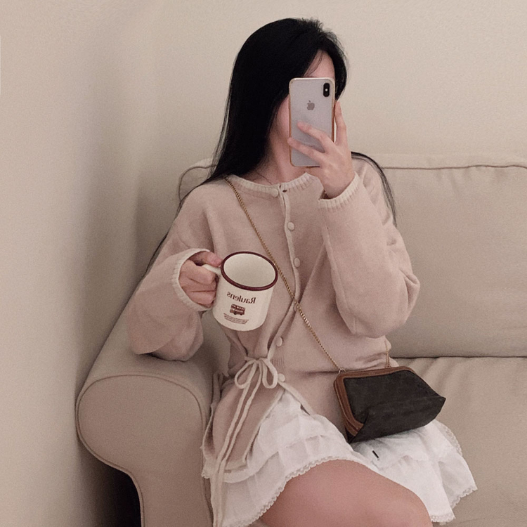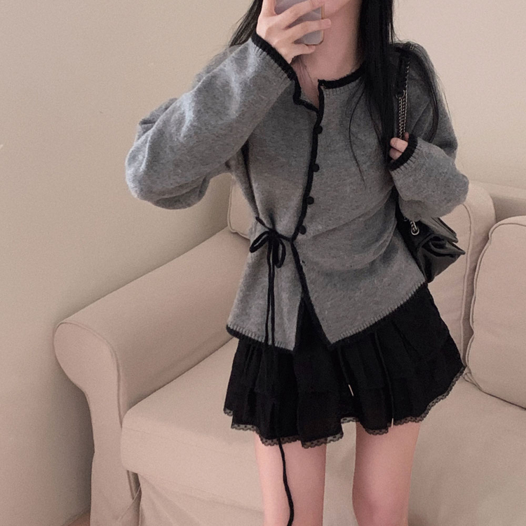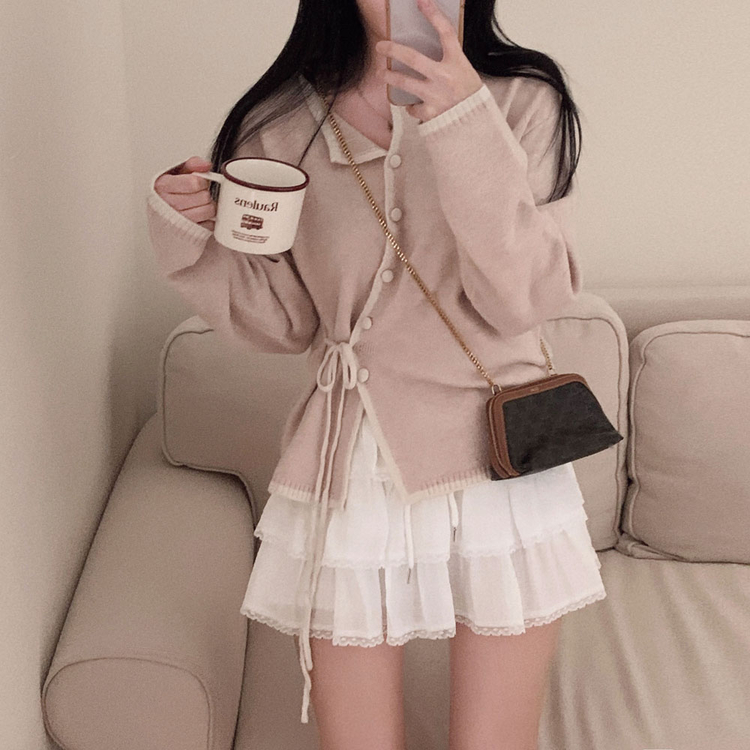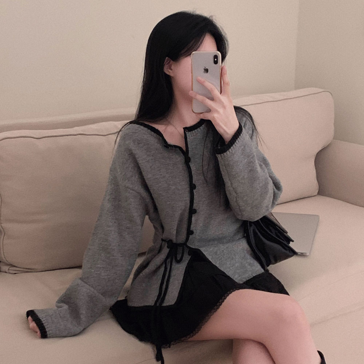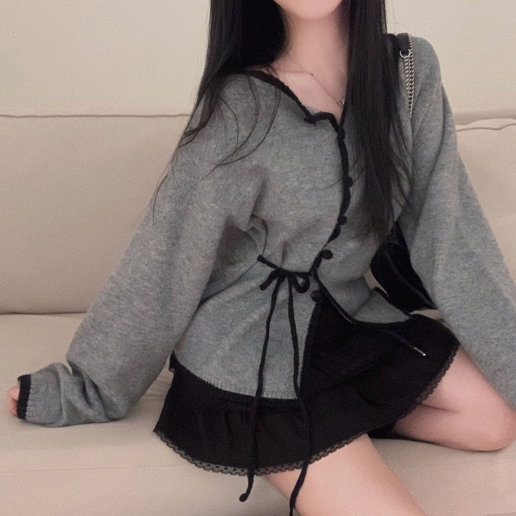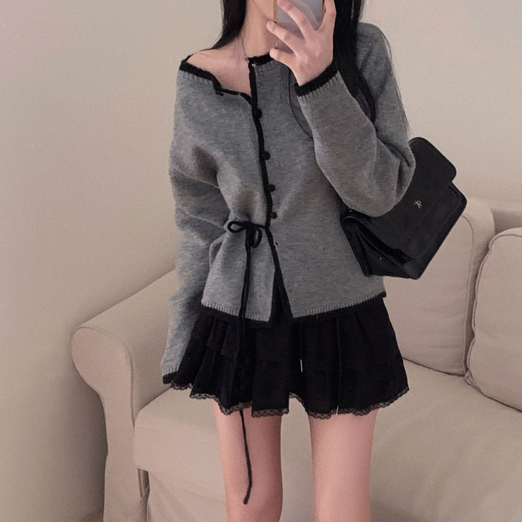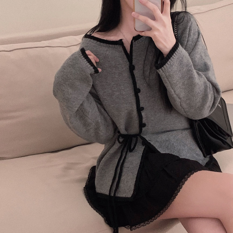SGD31270 사랑스러운 포인트바닐라 리본 스트랩 루즈핏 배색 니트 가디건