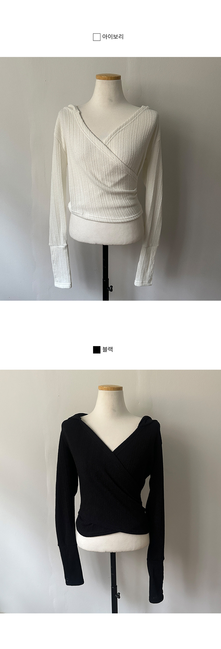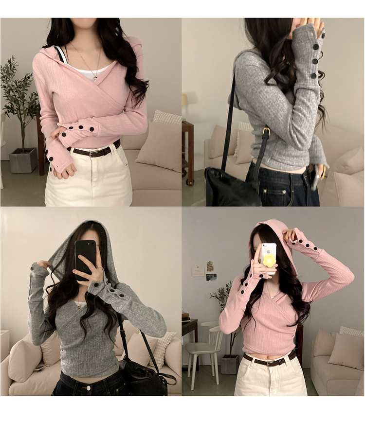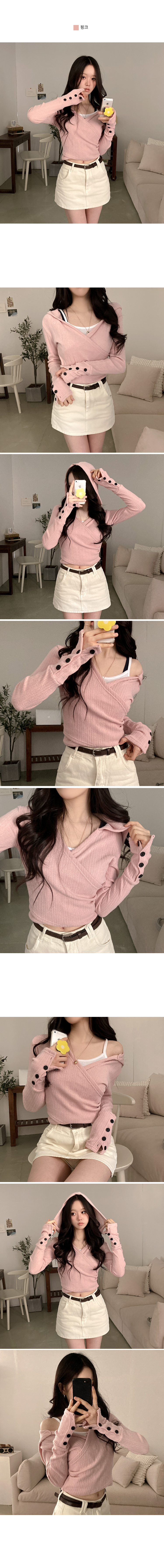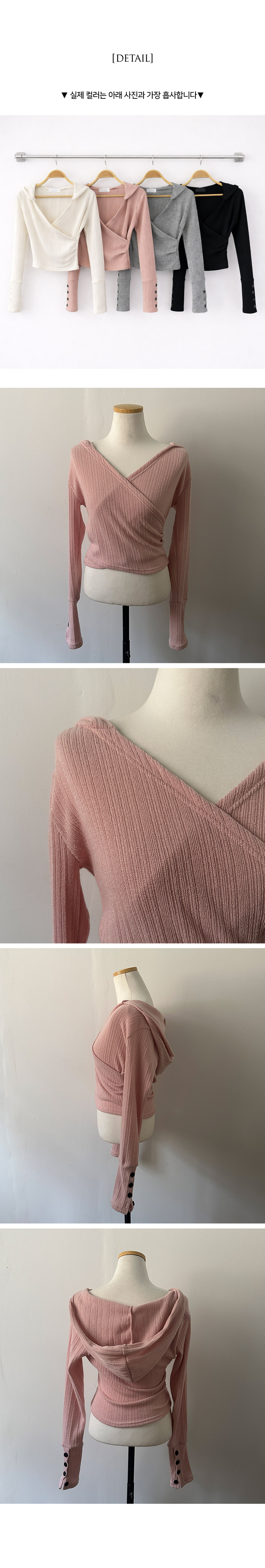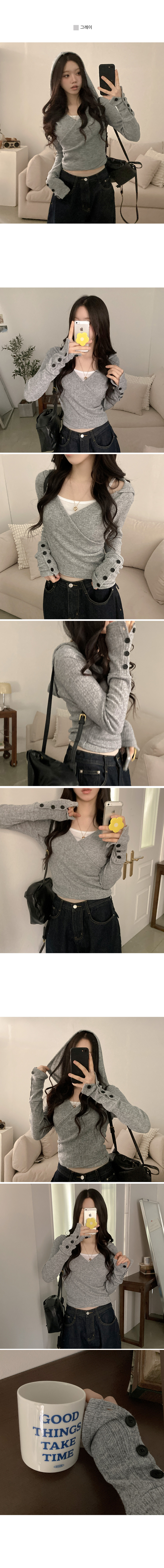 STS242706 올리브 랩 후드 소매 버튼 니트 티셔츠