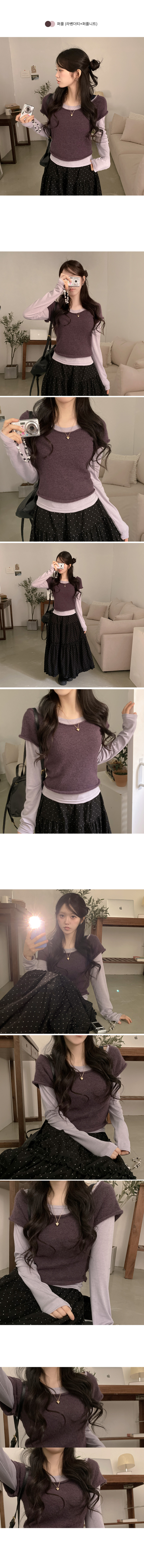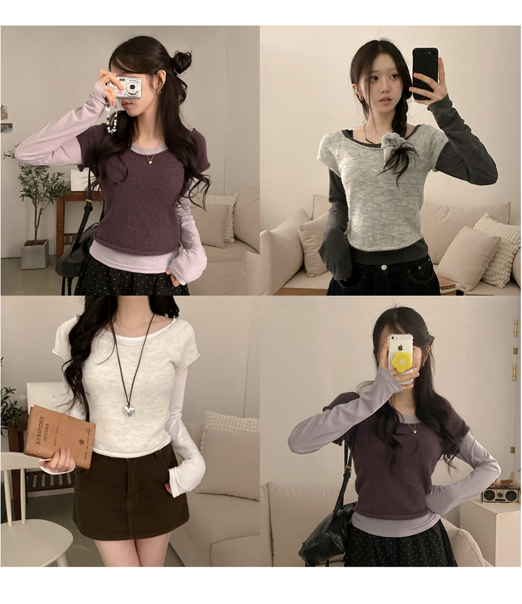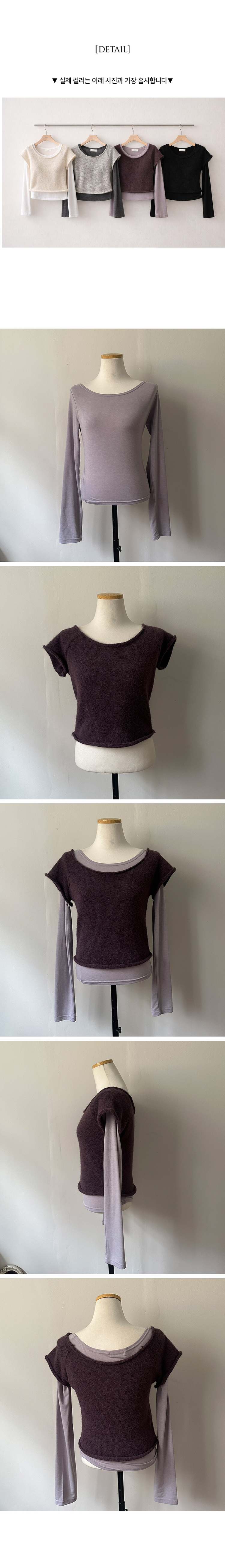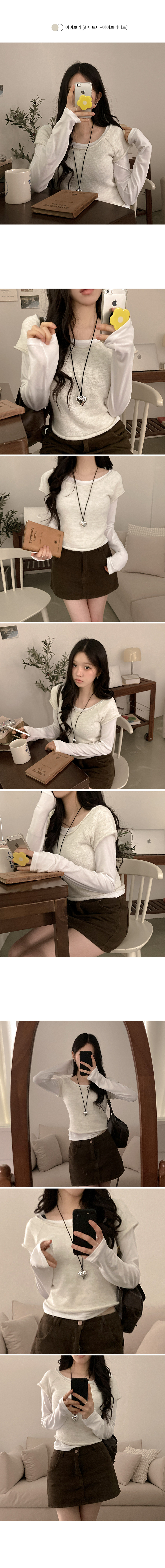 STS242723 미닝 보트넥 반팔 니트 입술 긴팔티 투피스 세트