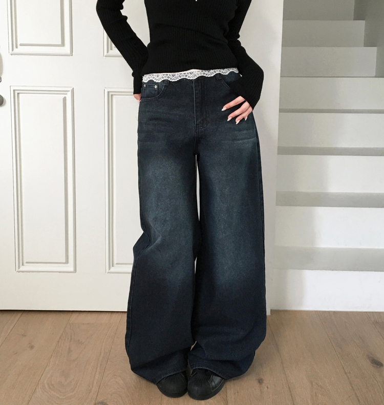 SJE13862 디노브 빈티지 워싱 기장선택 와이드핏 데님 팬츠 백포켓 청바지