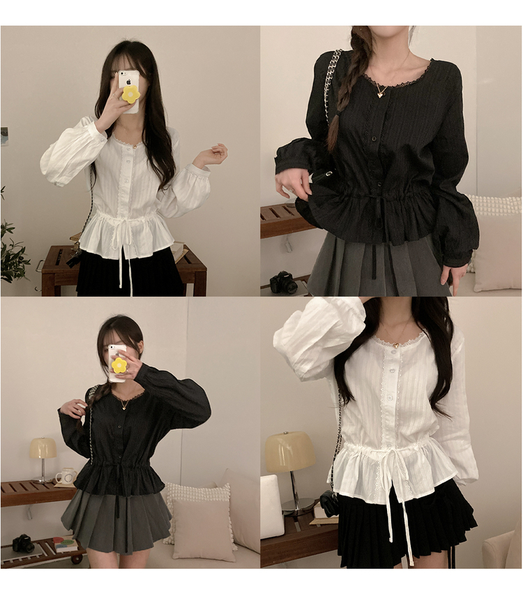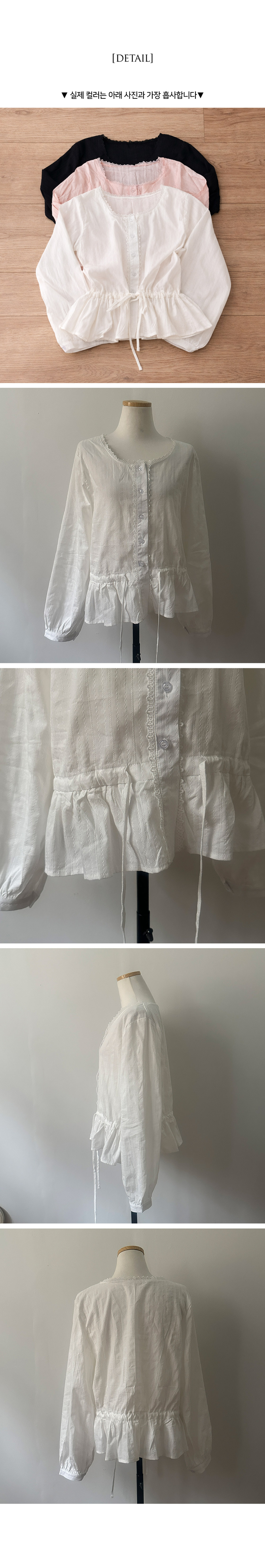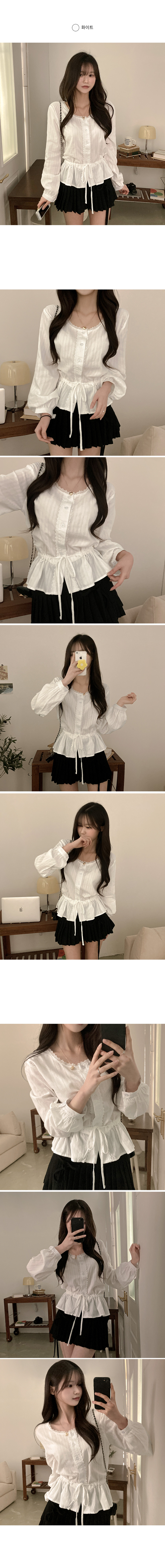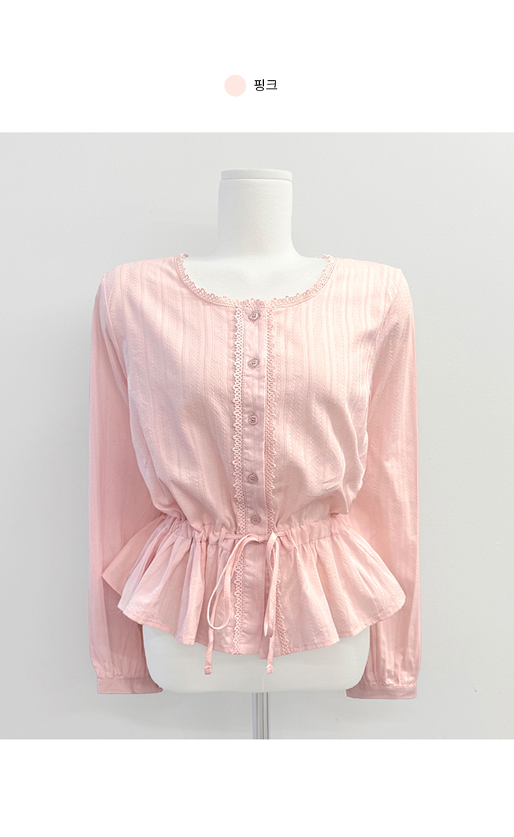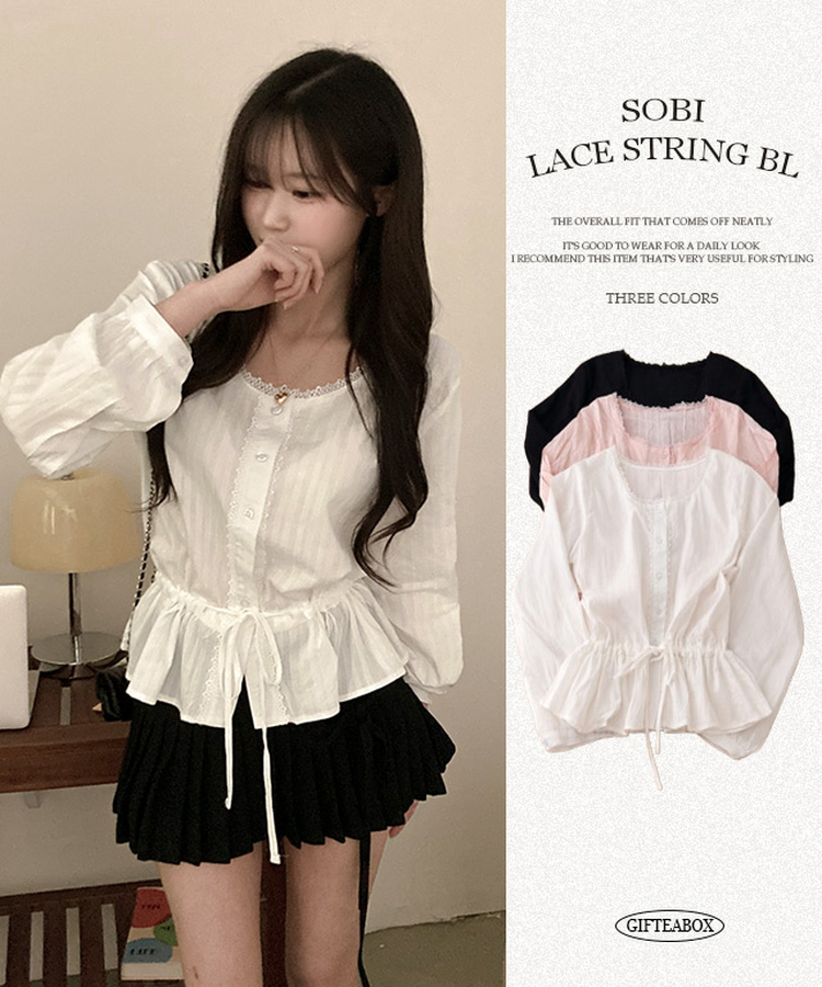 SBS30854 소비 레이스 허리 리본 스트링 펀칭 플레어 블라우스