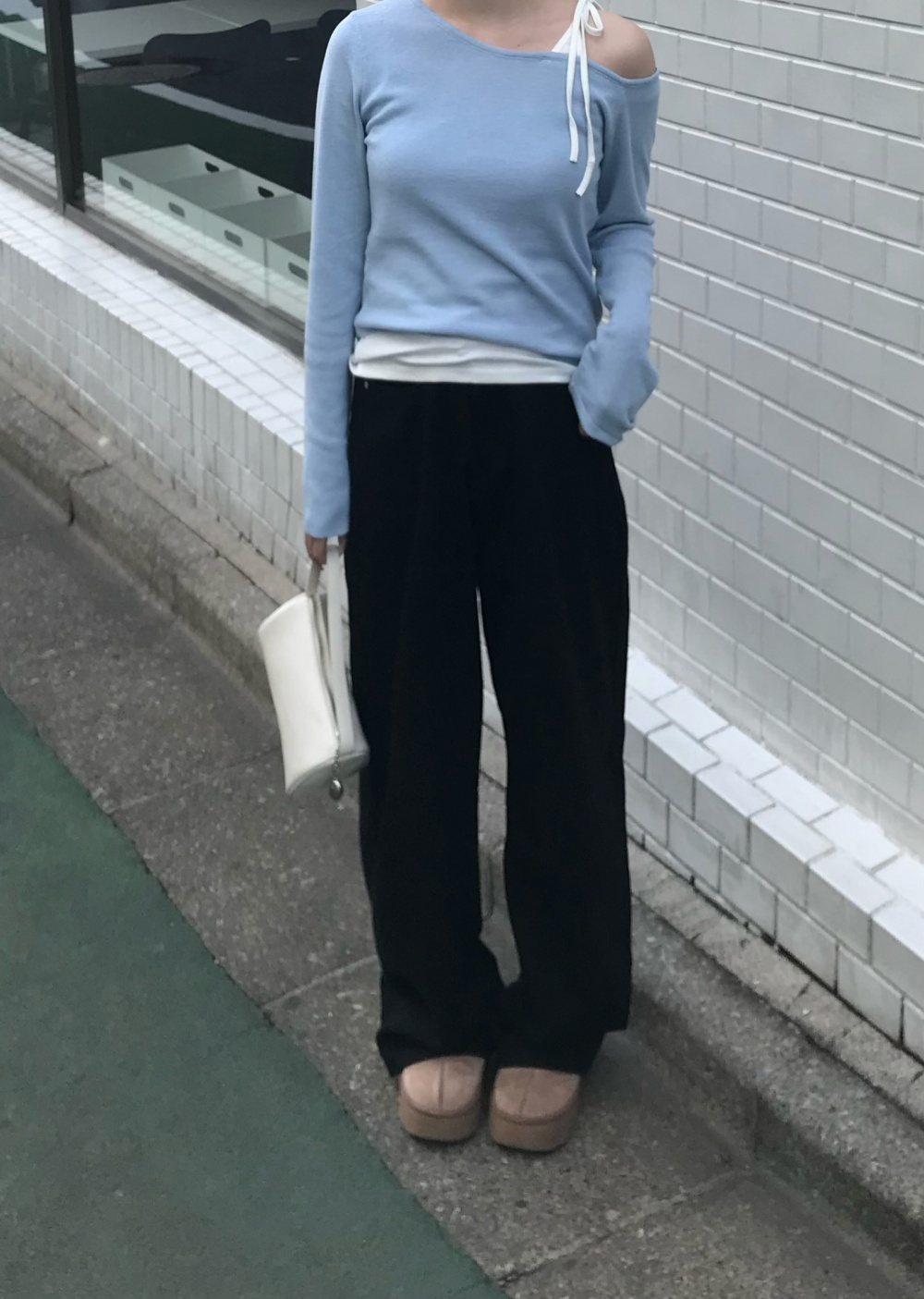 SJE13868 와이드 일자 뒷밴딩 데님팬츠