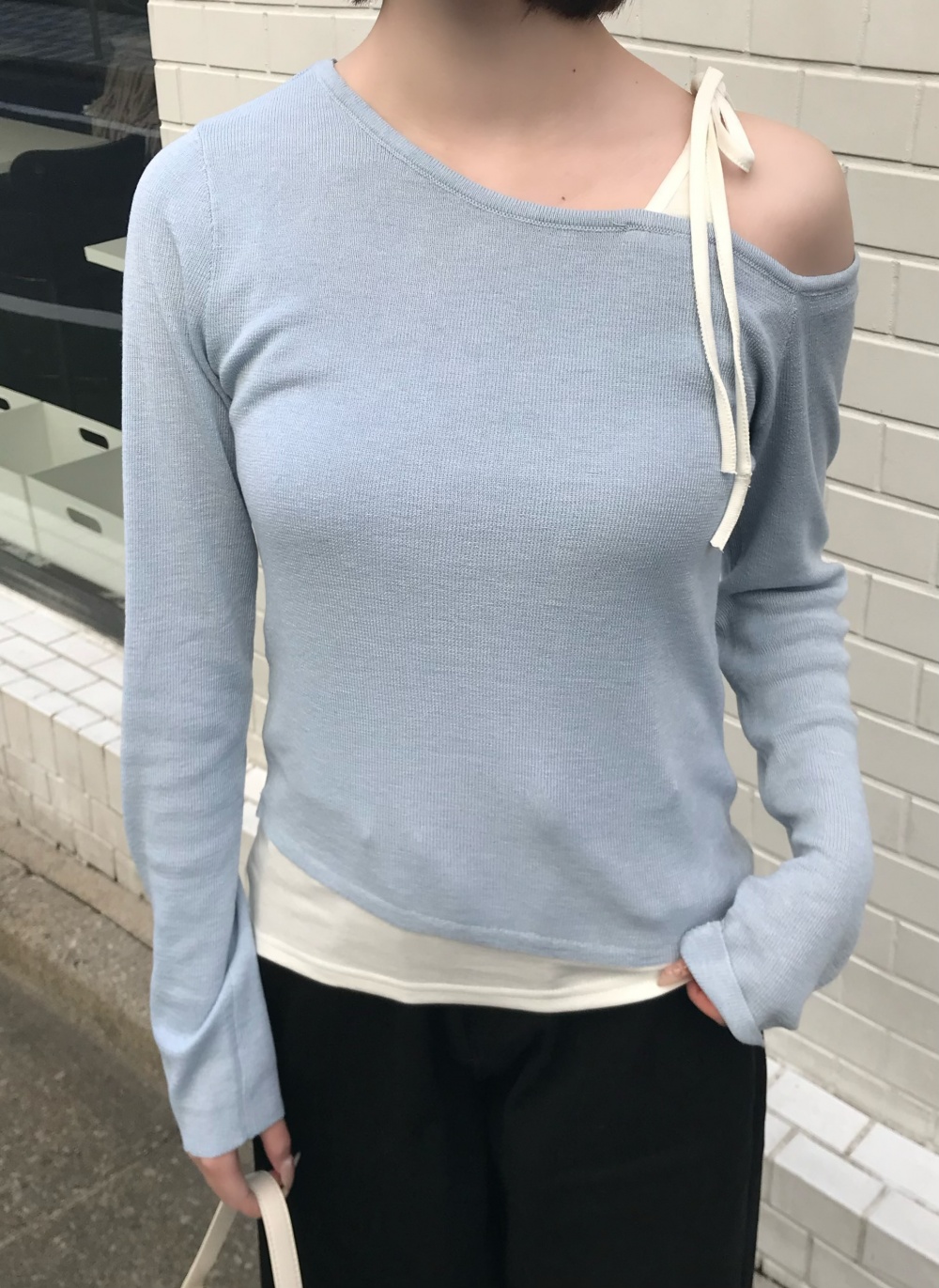 SNT35750 리본 오프숄더 니트
