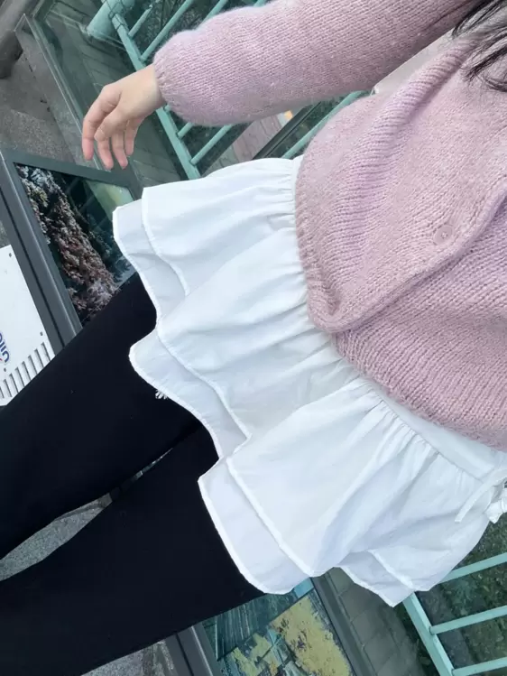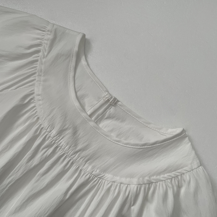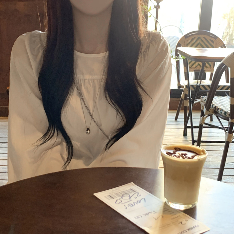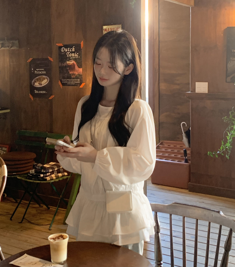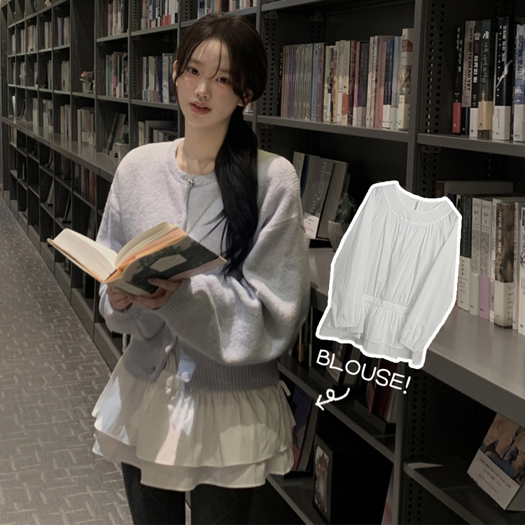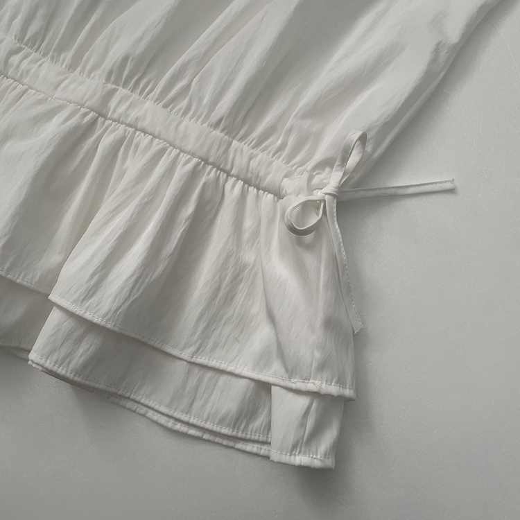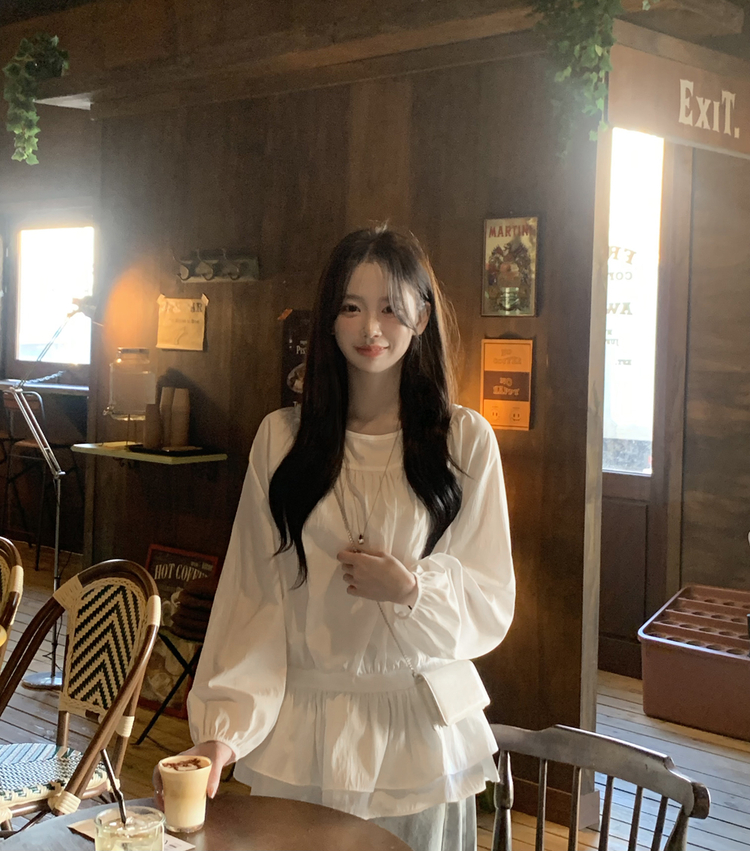 SBS30865 레이어드 퓨어 라운드 캉캉 셔링 프릴 허리리본 스트링 긴팔 벌룬 블라우스 봄신상