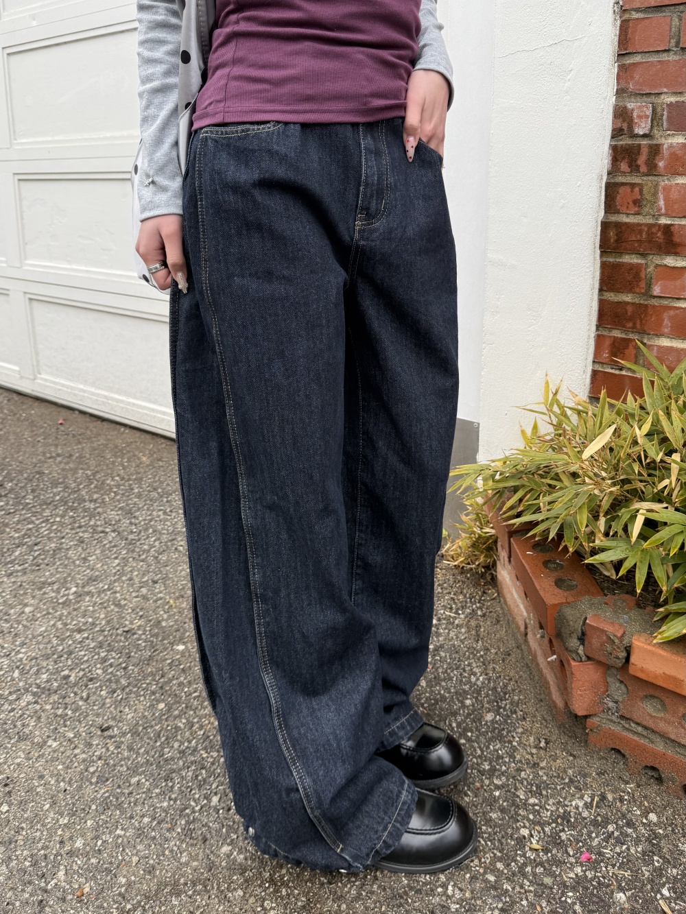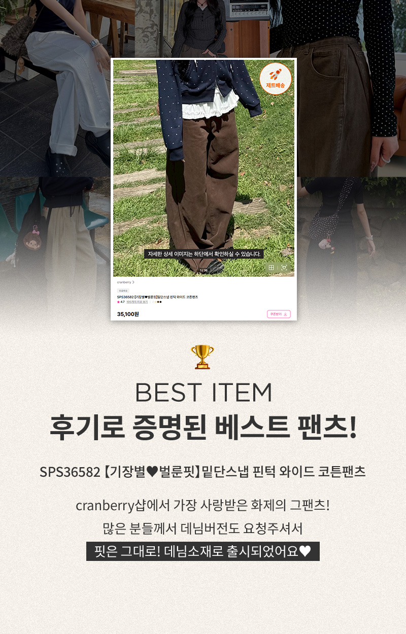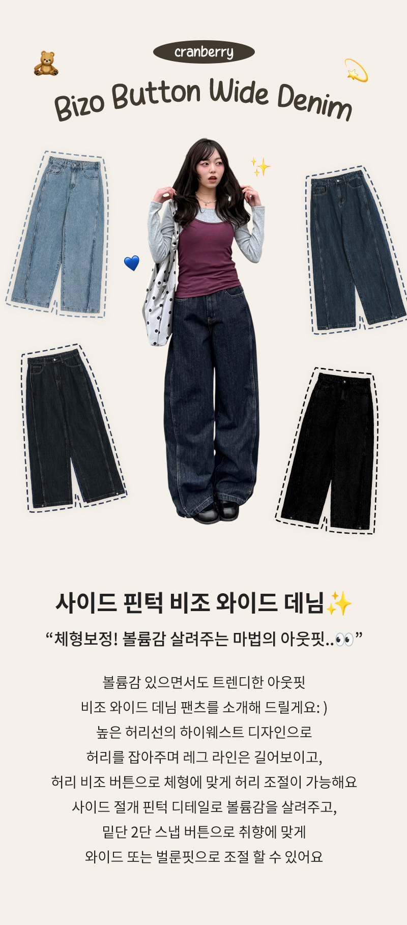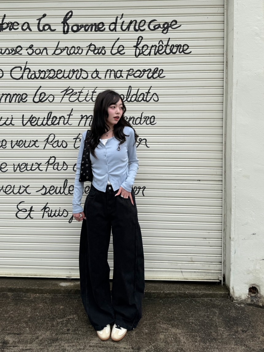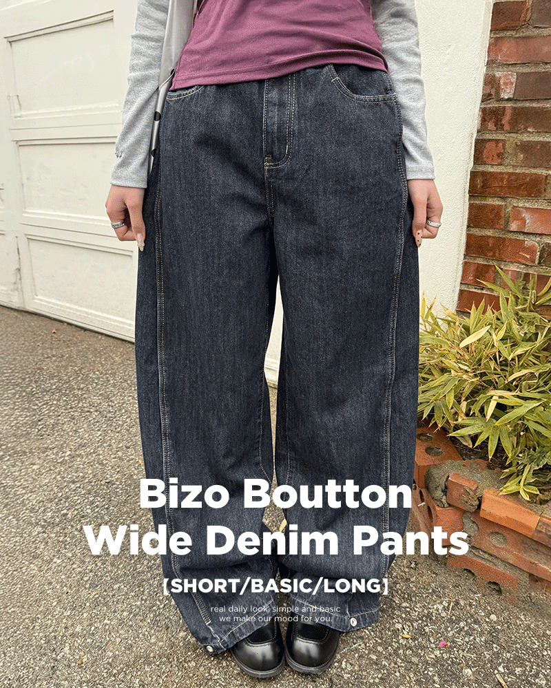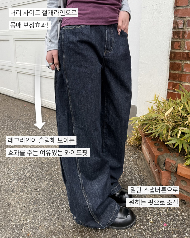 SJE13885 【BEST/벌룬핏2탄!】사이드 절개 비조 와이드 데님 팬츠