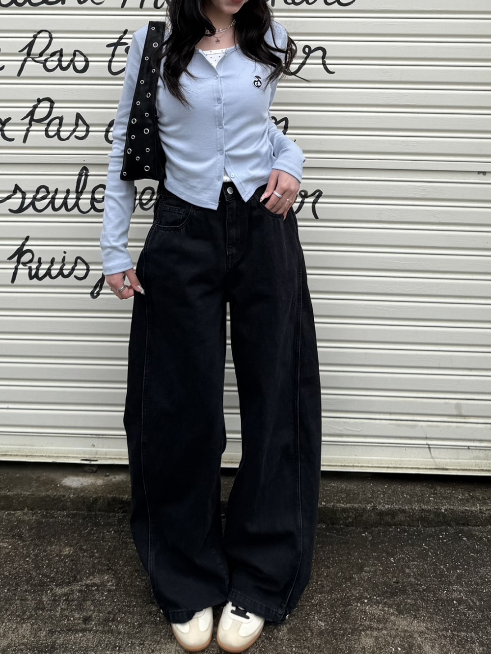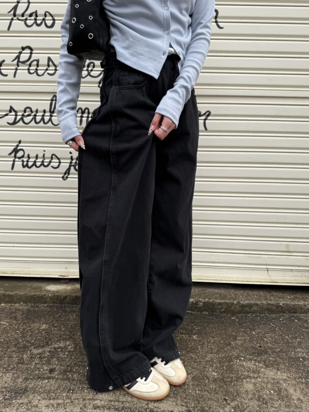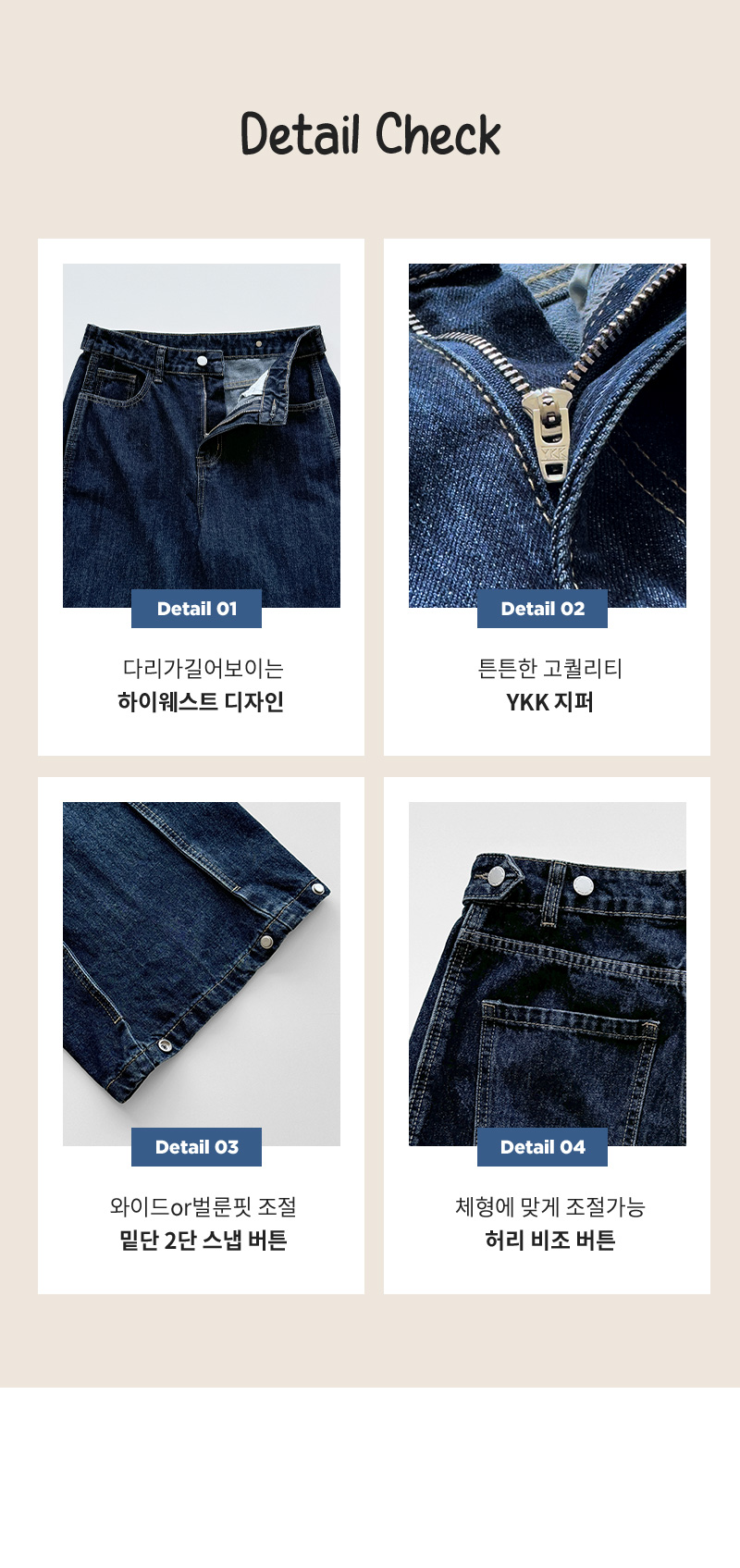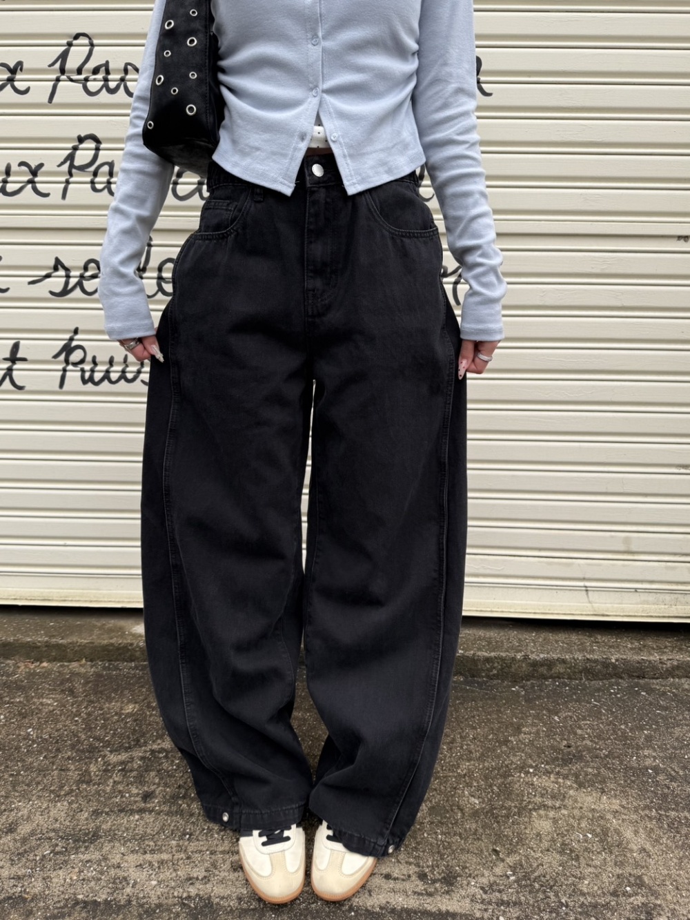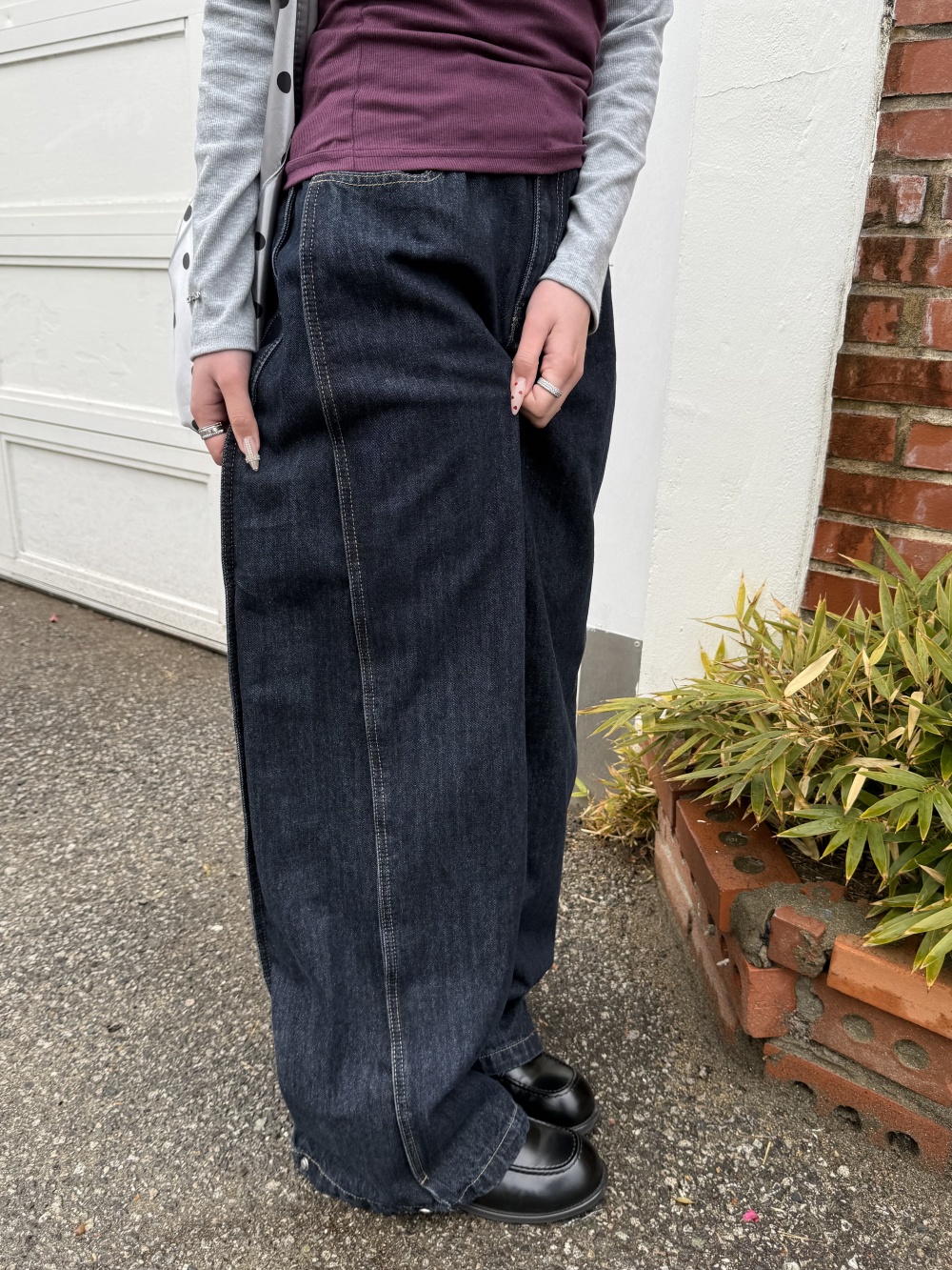 SJE13885 【BEST/벌룬핏2탄!】사이드 절개 비조 와이드 데님 팬츠