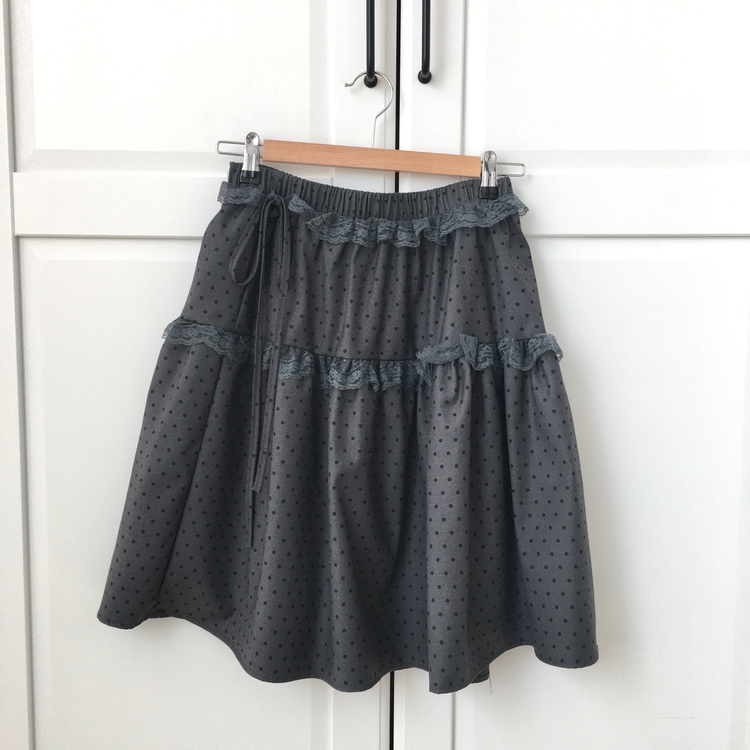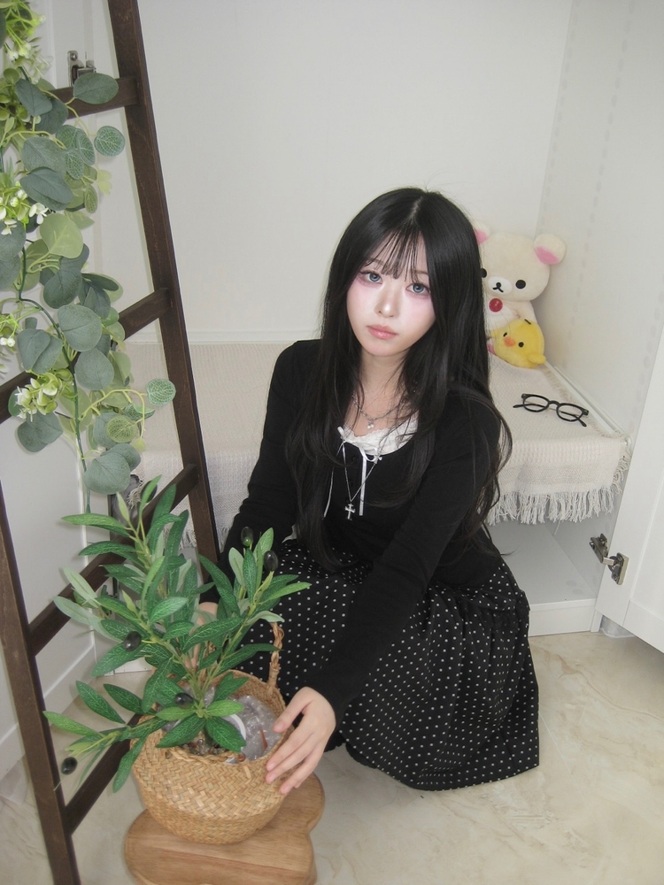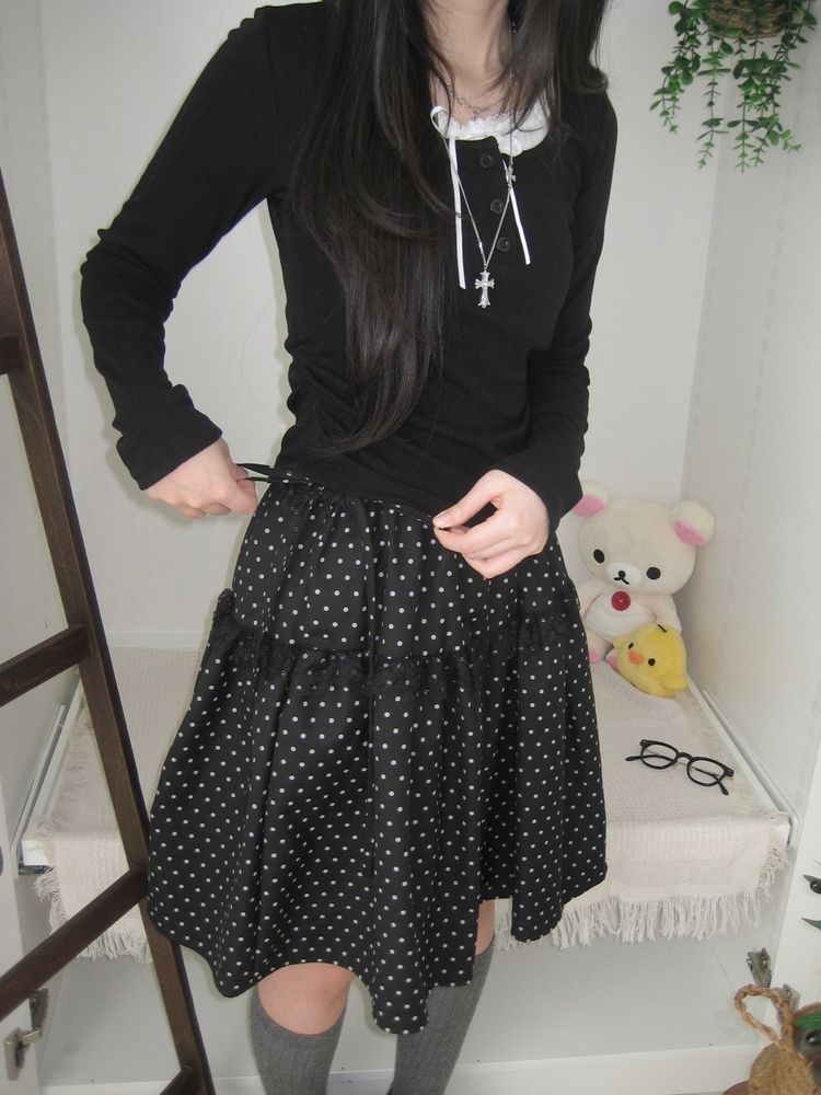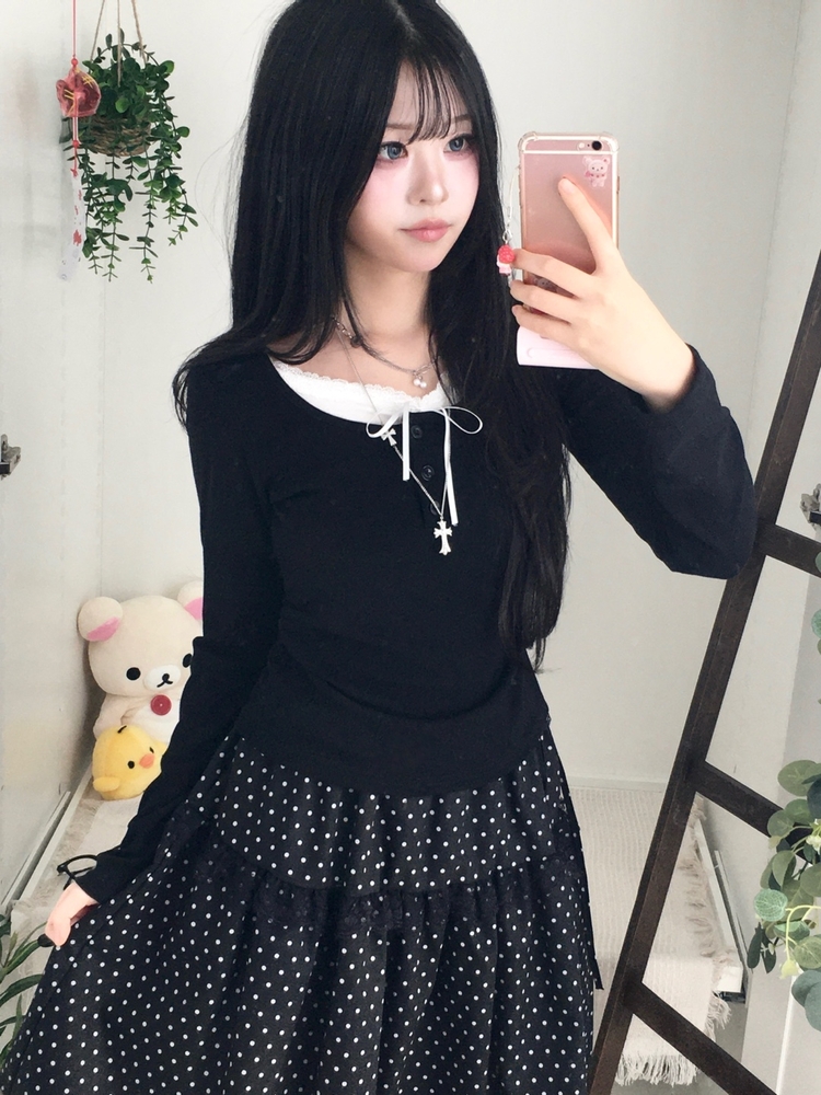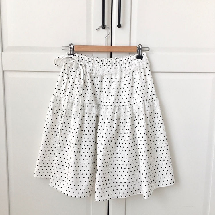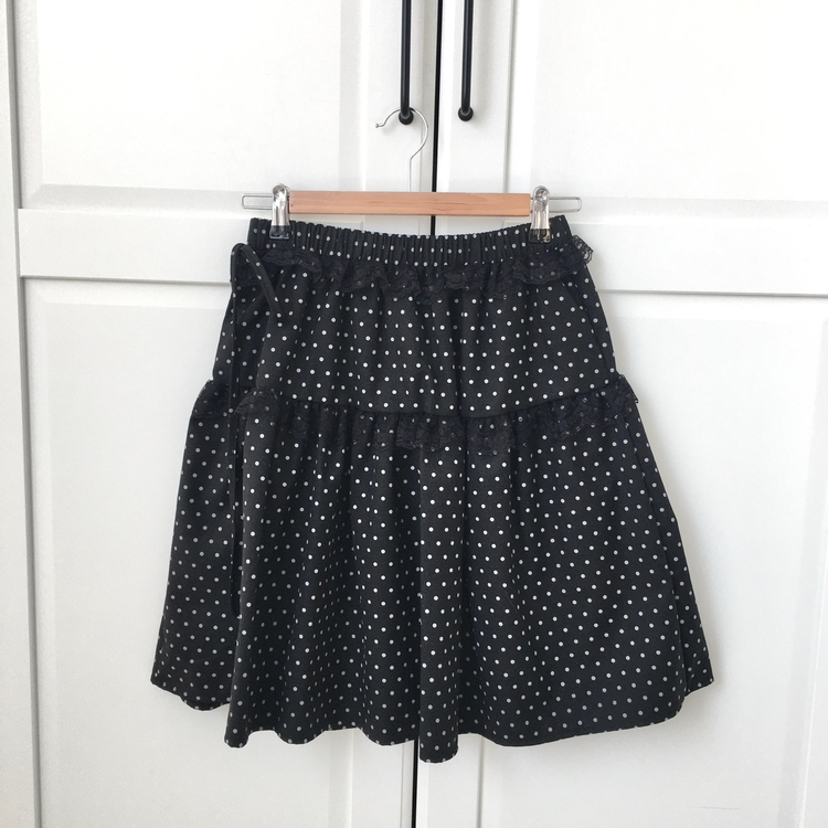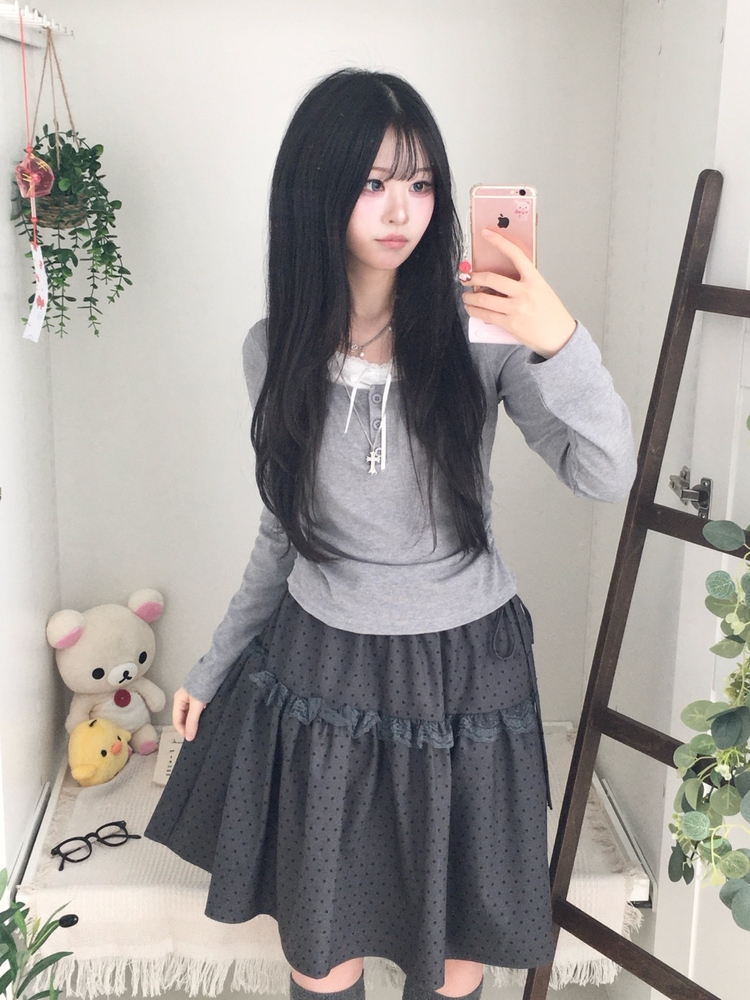 SSK26259 무채색 도트 사이드리본 밴딩 레이스 캉캉 미디 스커트 봄 여름 가을 겨울 하객 개강 일