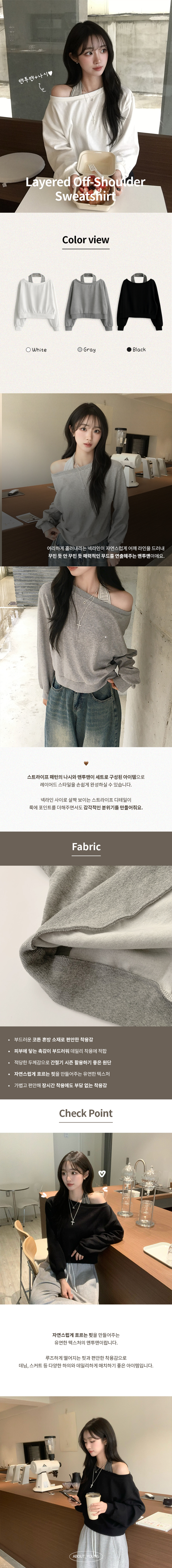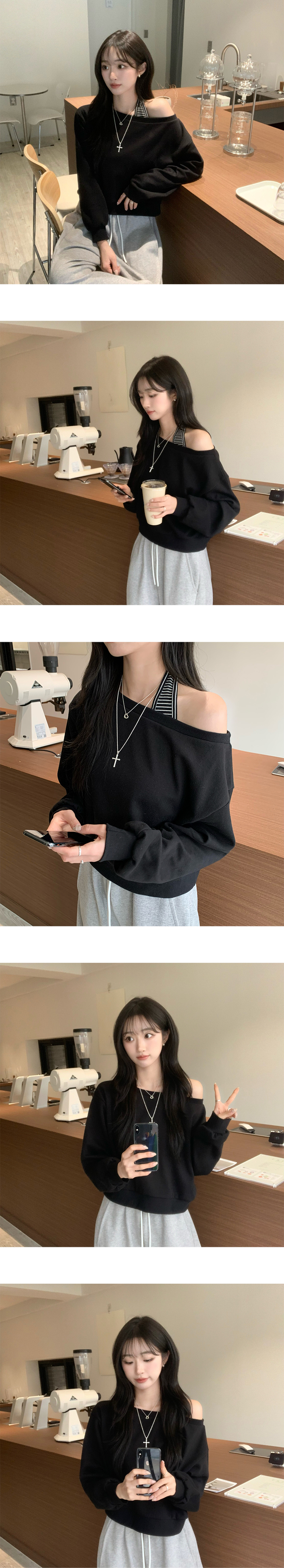 STS243182 제이미 오프숄더 홀터 나시 맨투맨 세트 스트라이프 홀터넥 나시 긴팔티 오버핏 봄 레이어드 보트넥 상의 3color