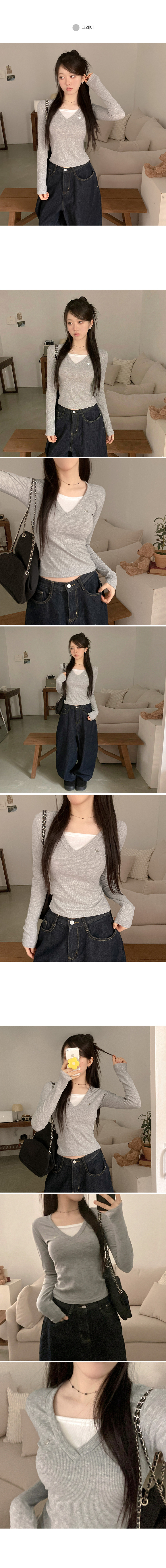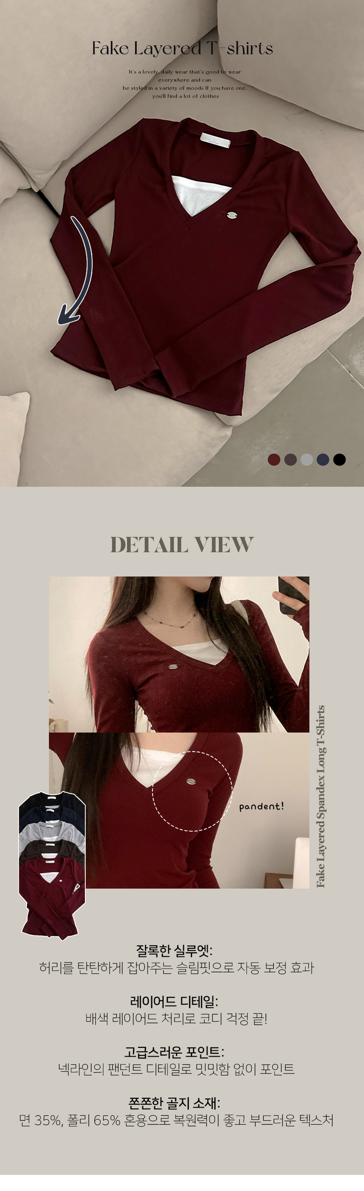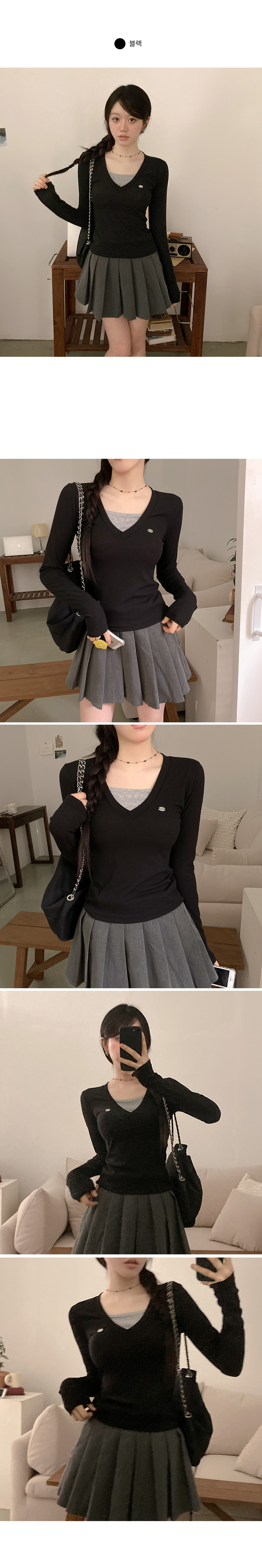 STS243216 라바 팬던트 브이넥 레이어드 골지 쫀쫀 슬림핏 티셔츠
