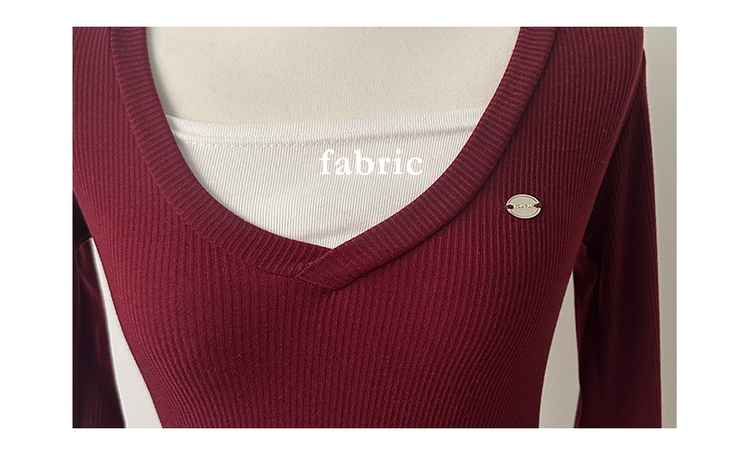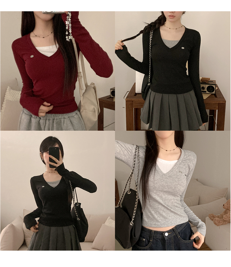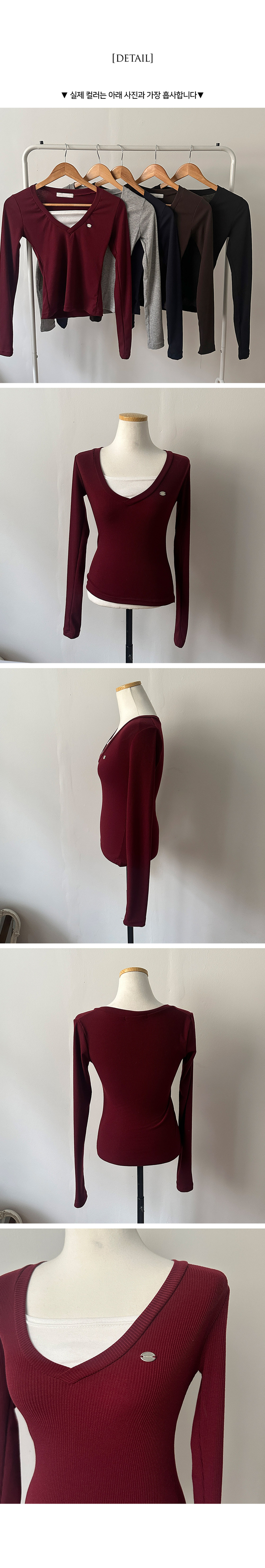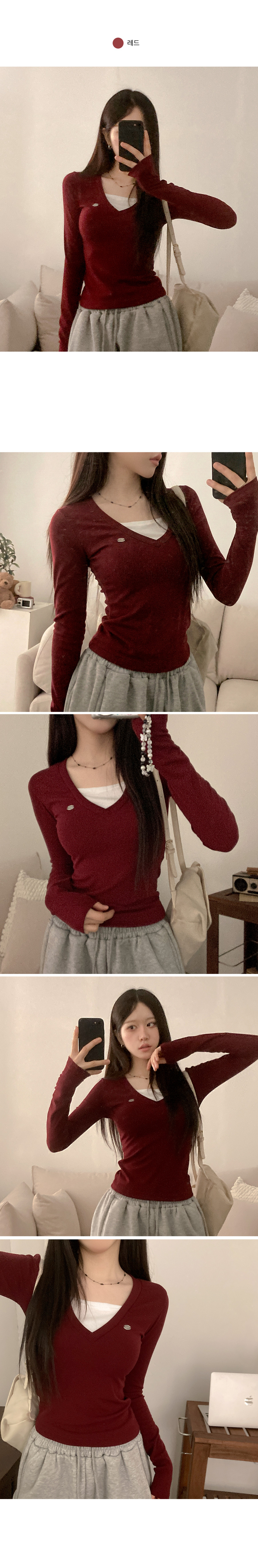 STS243216 라바 팬던트 브이넥 레이어드 골지 쫀쫀 슬림핏 티셔츠
